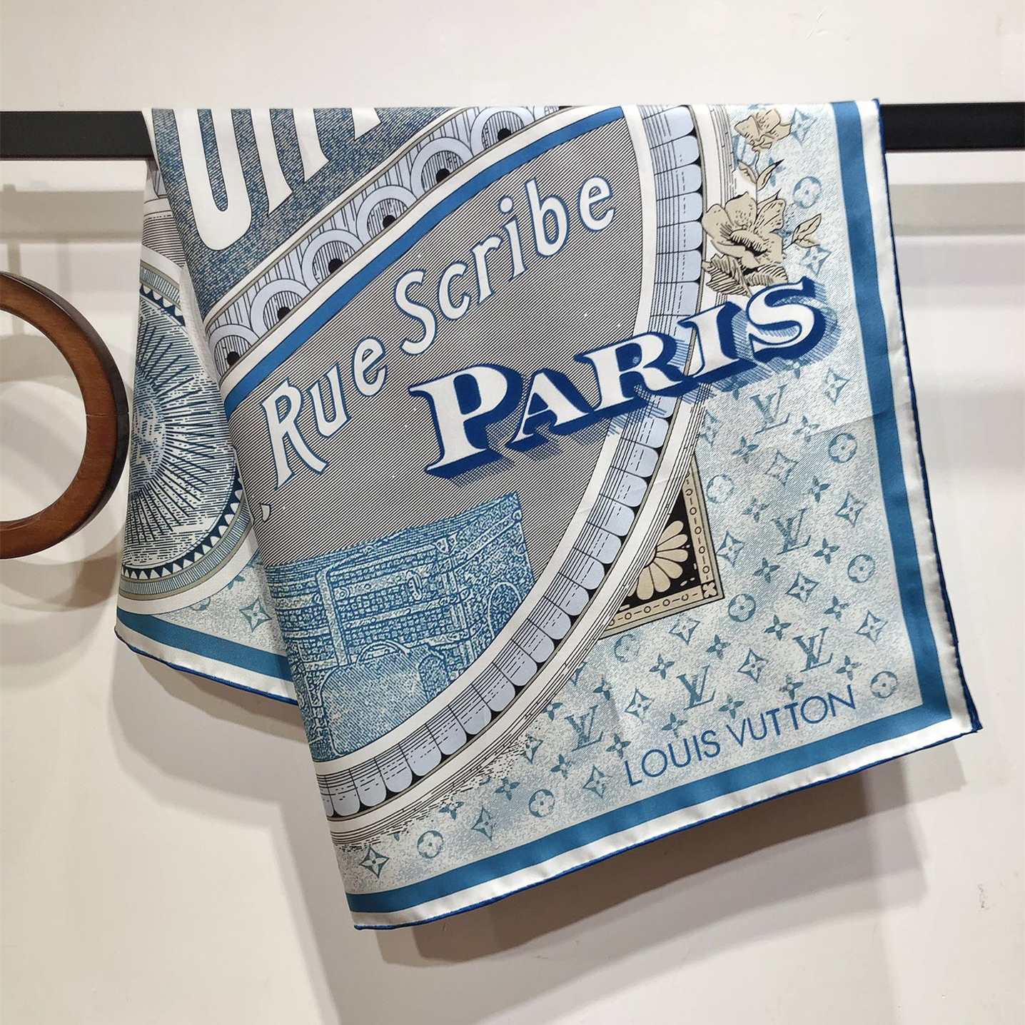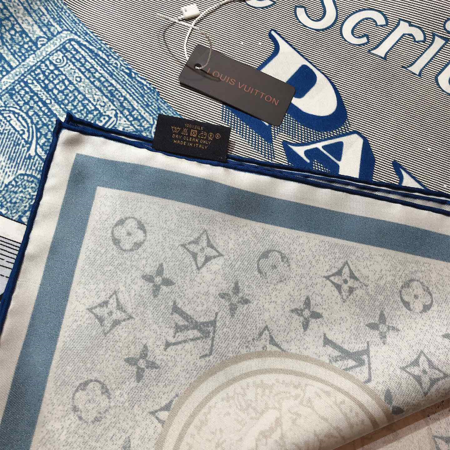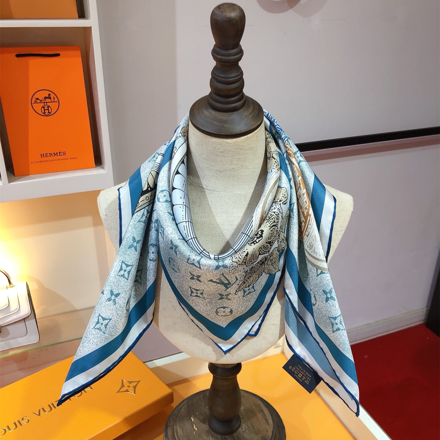 【Elegance and Craftsmanship】 This new LV scarf is a tribute to the brand's history, inspired by late 19th-century advertisement posters. It features a Monogram background with hard-case and travel sticker patterns.