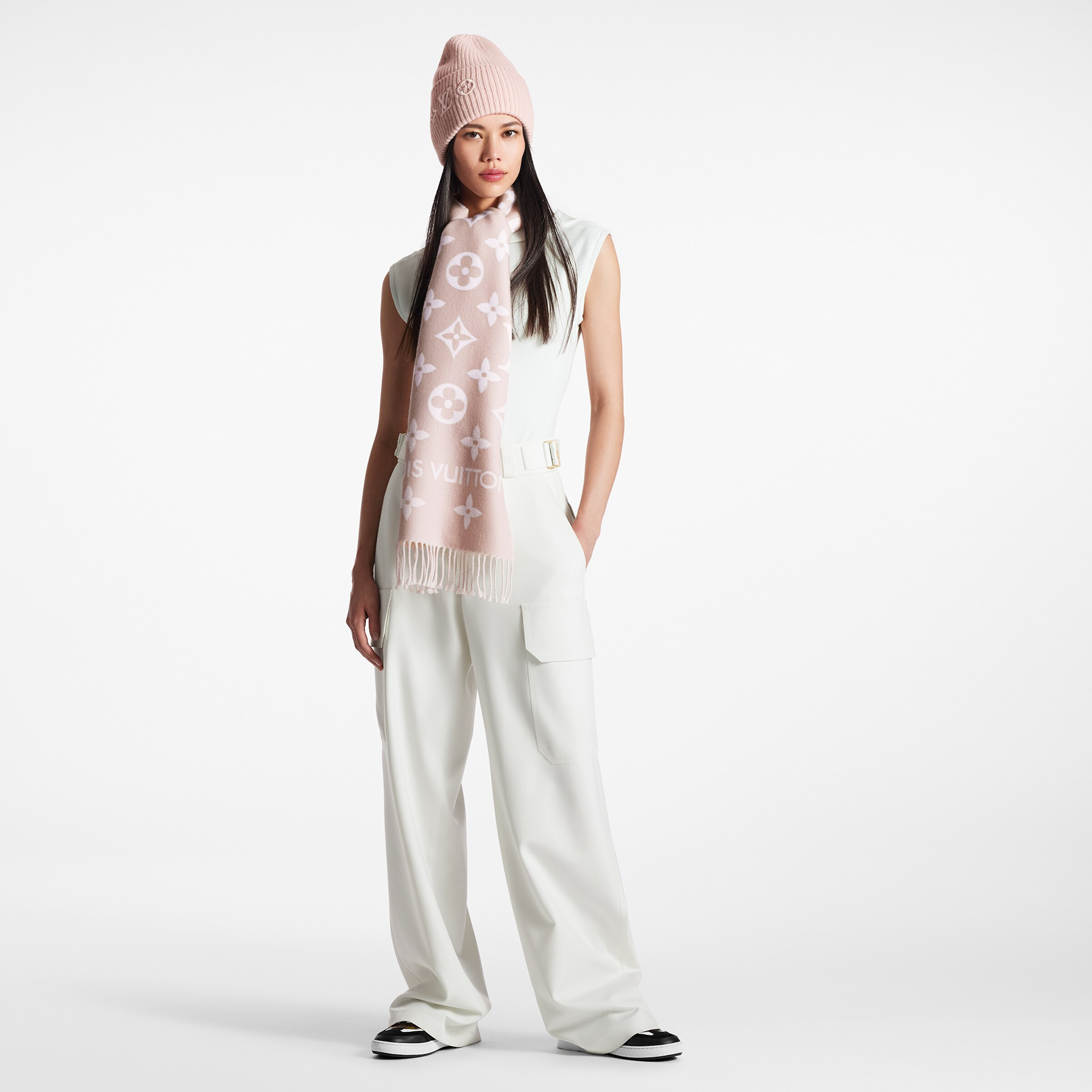 The LV ESSENTIAL scarf lengthens the distance between the elements of the classic Monogram pattern, presenting a refreshing look. The sheep wool brings a soft and warm texture, and the Louis Vuitton logo and fringe trims complete the whole, adding a casual choice to the Reykjavik scarf and Logomania scarf.