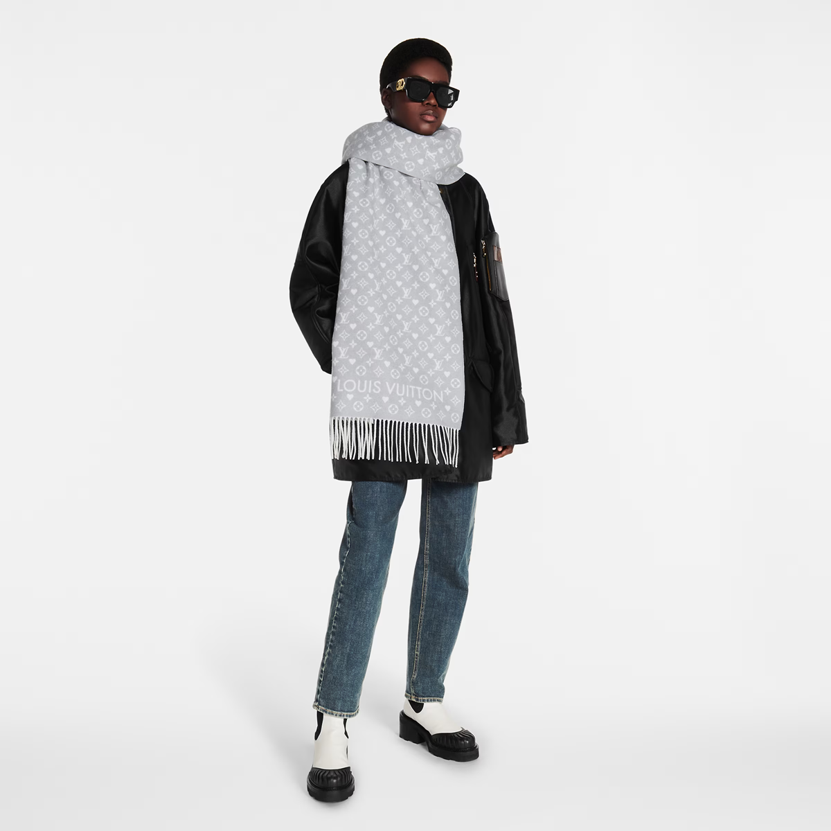This Game On scarf features a jacquard take on the classic Monogram pattern, with a Louis Vuitton logo weave and slim fringe. Cut in wide lengths from luxurious cashmere, it adds a touch of warmth and heritage to winter wear.