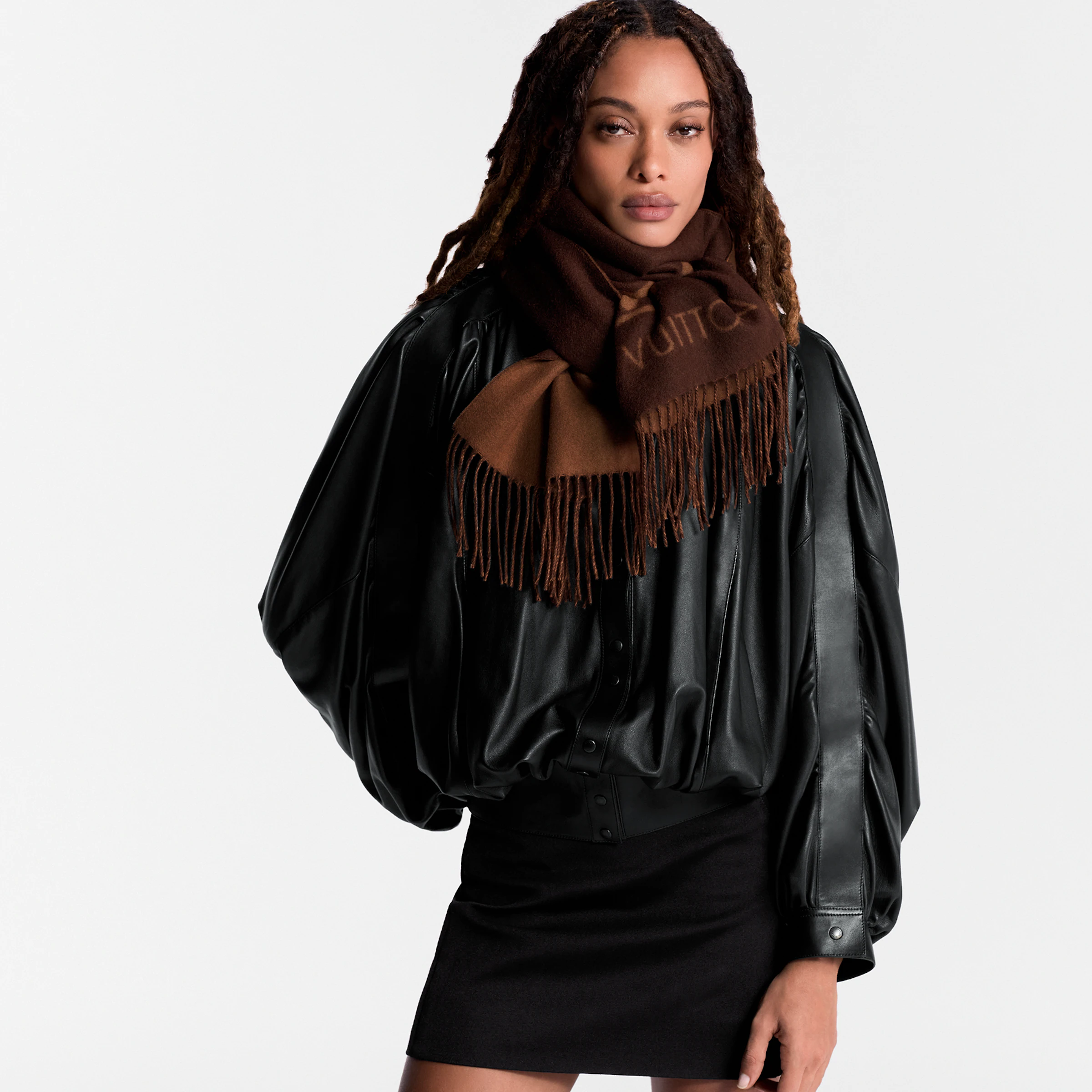 This Reykjavik scarf features a large Monogram pattern on one side and inverted colors on the other, a refined interpretation of the brand's aesthetic. Cut in wide lengths from soft cashmere, it's a warm choice for cold winter days.