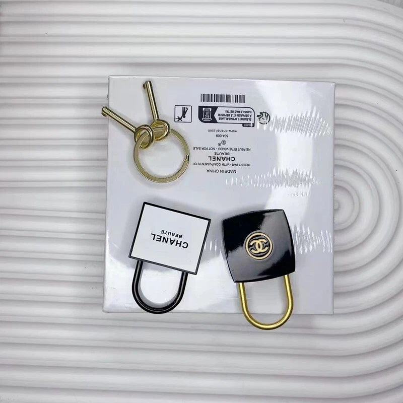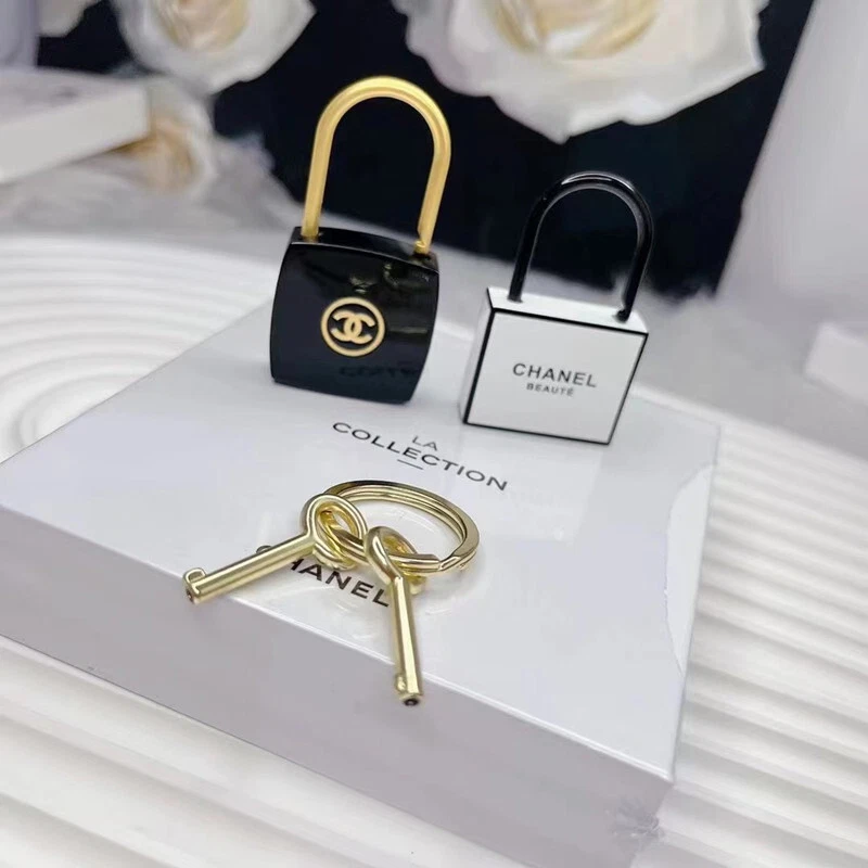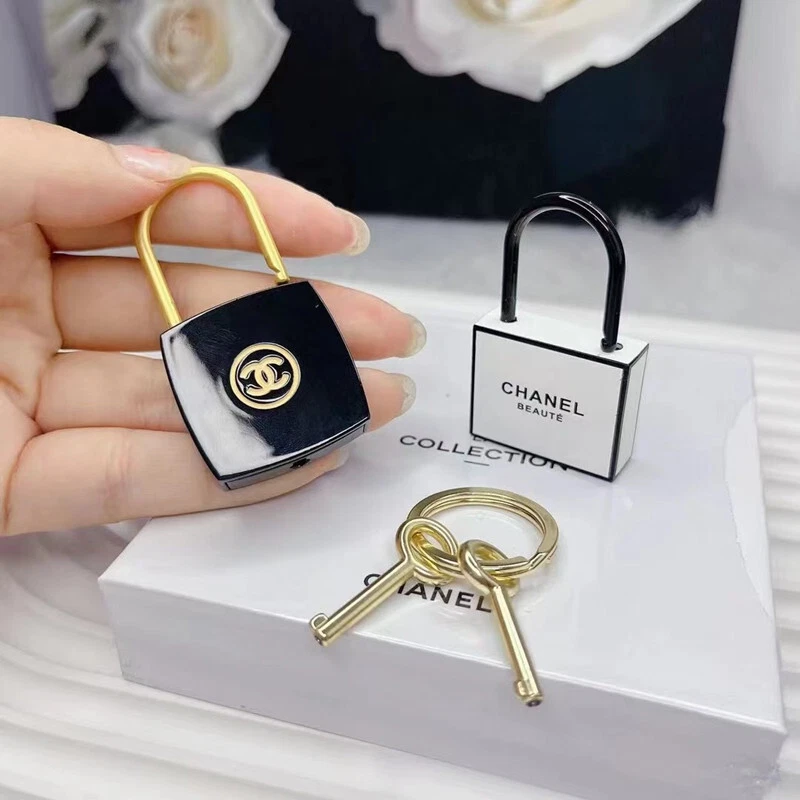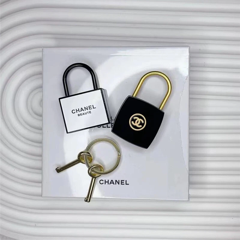 【Stylish Luxury Keyring Set】This elegant keyring set includes two padlocks—one black and one white—designed with a sleek Chanel-inspired aesthetic that adds a luxurious touch to your bag, keys, or accessories.