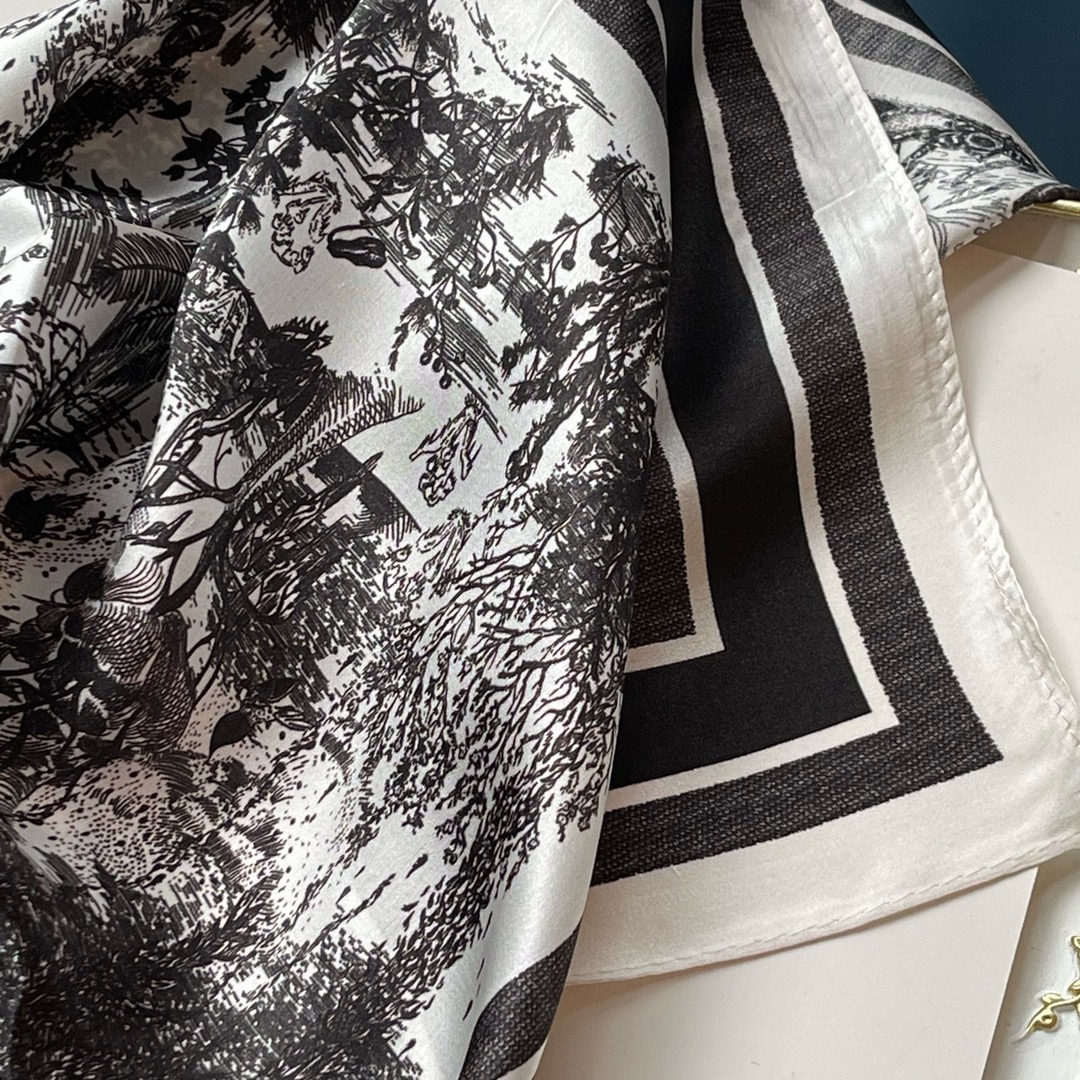 【Classic Design】 This Dior silk scarf features a classic ink painting design that adds a touch of artistic elegance to any outfit, with a timeless and sophisticated appeal.