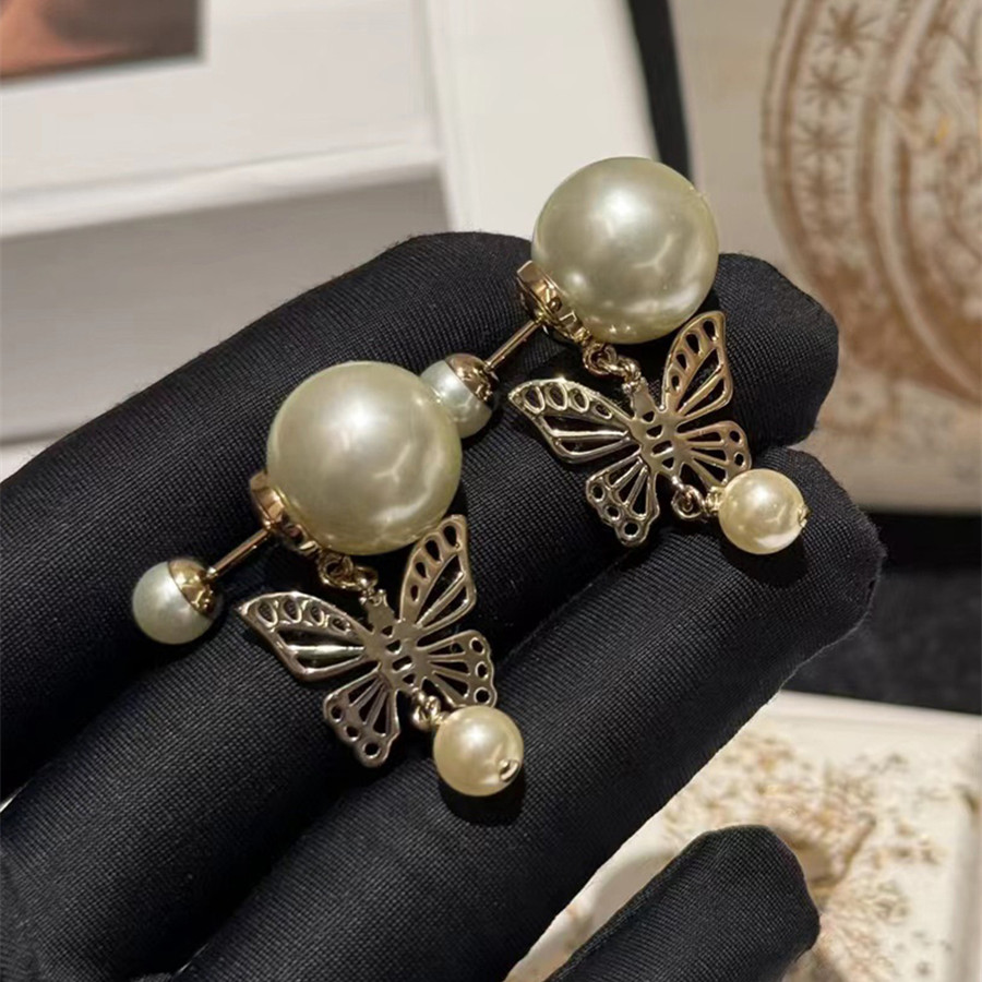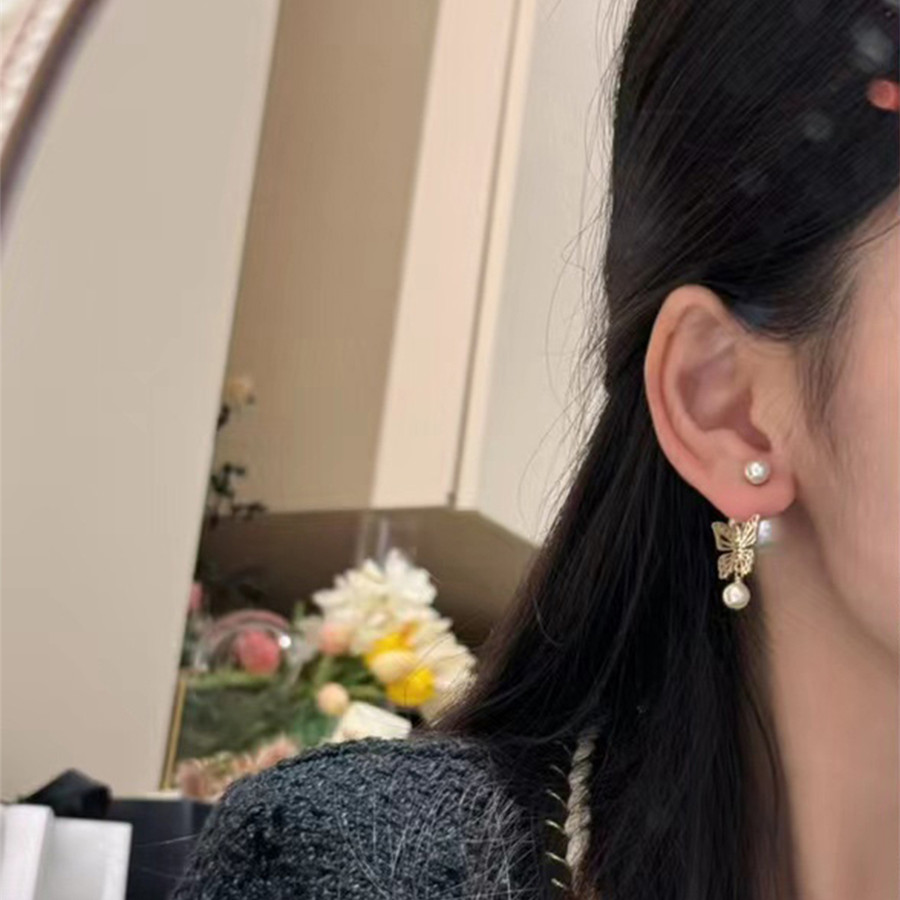 Color classification: Hollow Butterfly Tassel Pearl Earrings