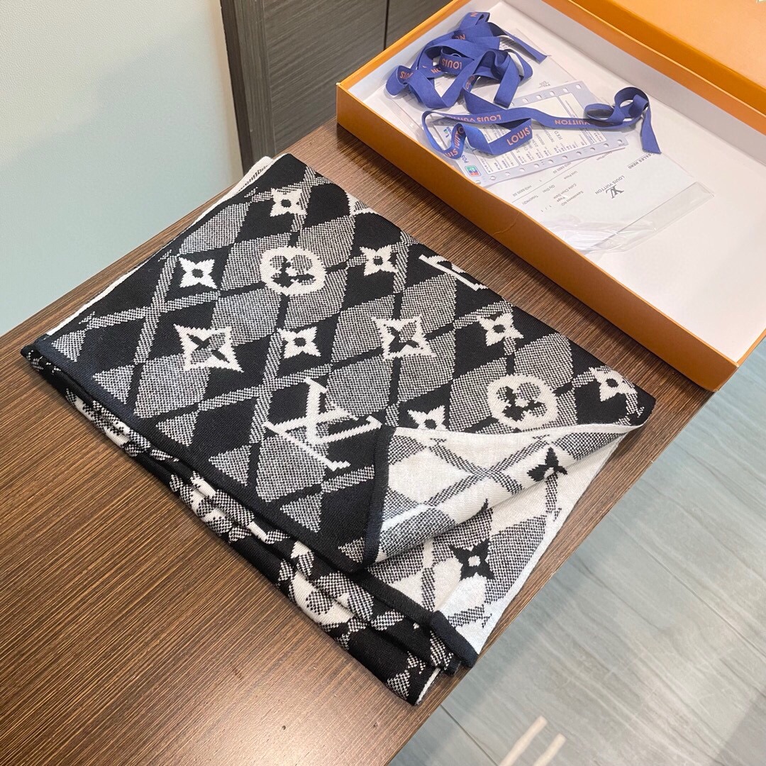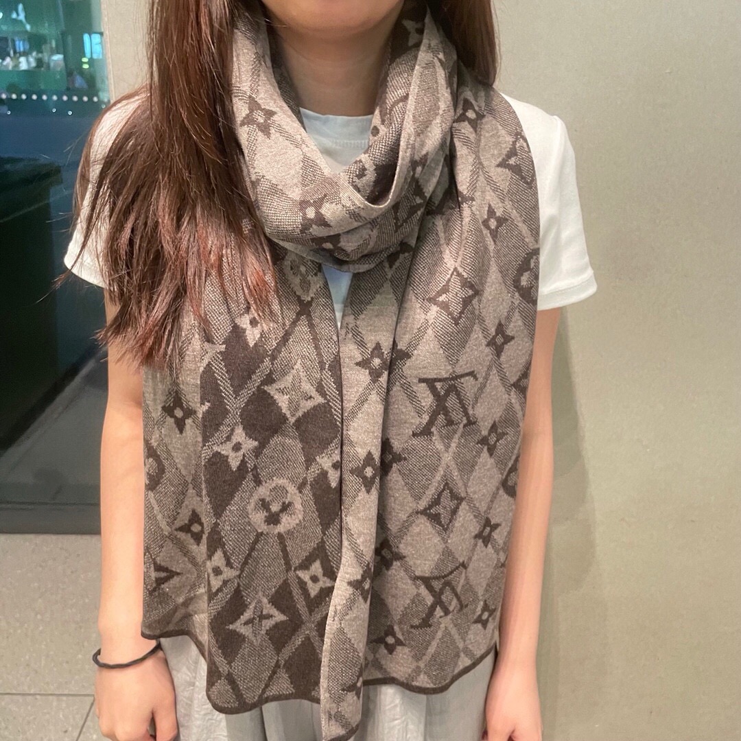 【Elegant Reversible Design】 This LV wool blend scarf features a versatile reversible design with the iconic Louis Vuitton logo pattern, allowing you to style it differently on each side.