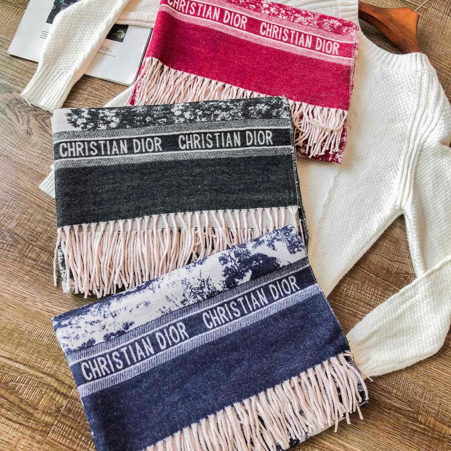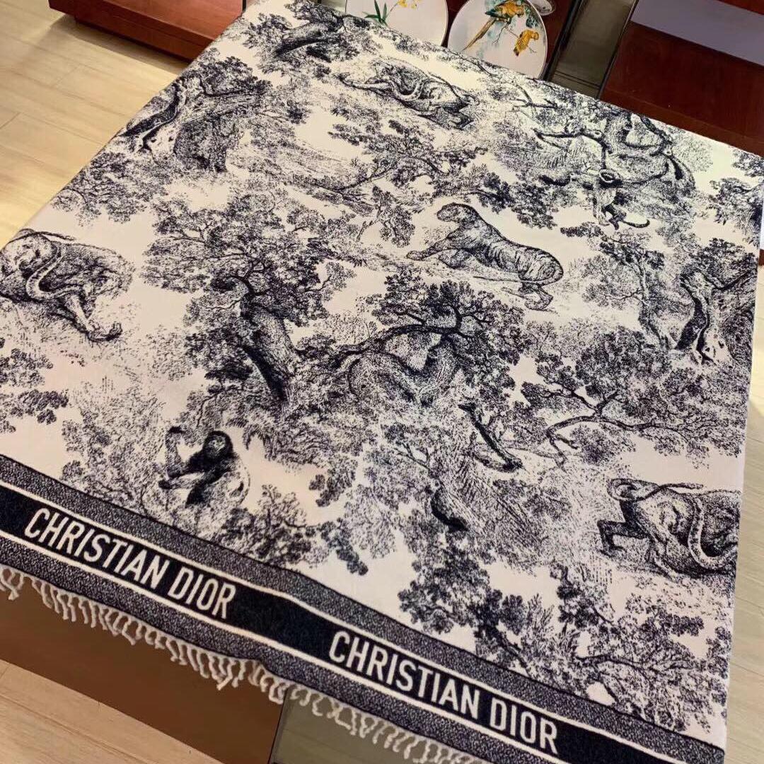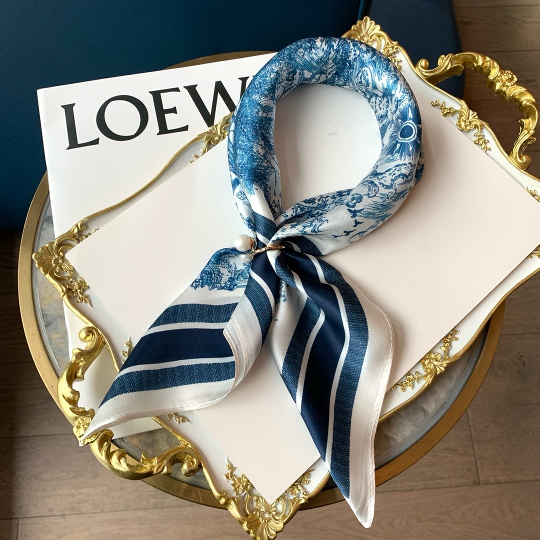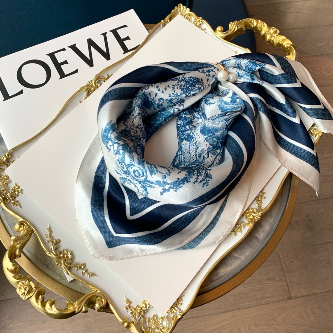 【New】Dior Classic Ink Painting Silk Scarf Blue