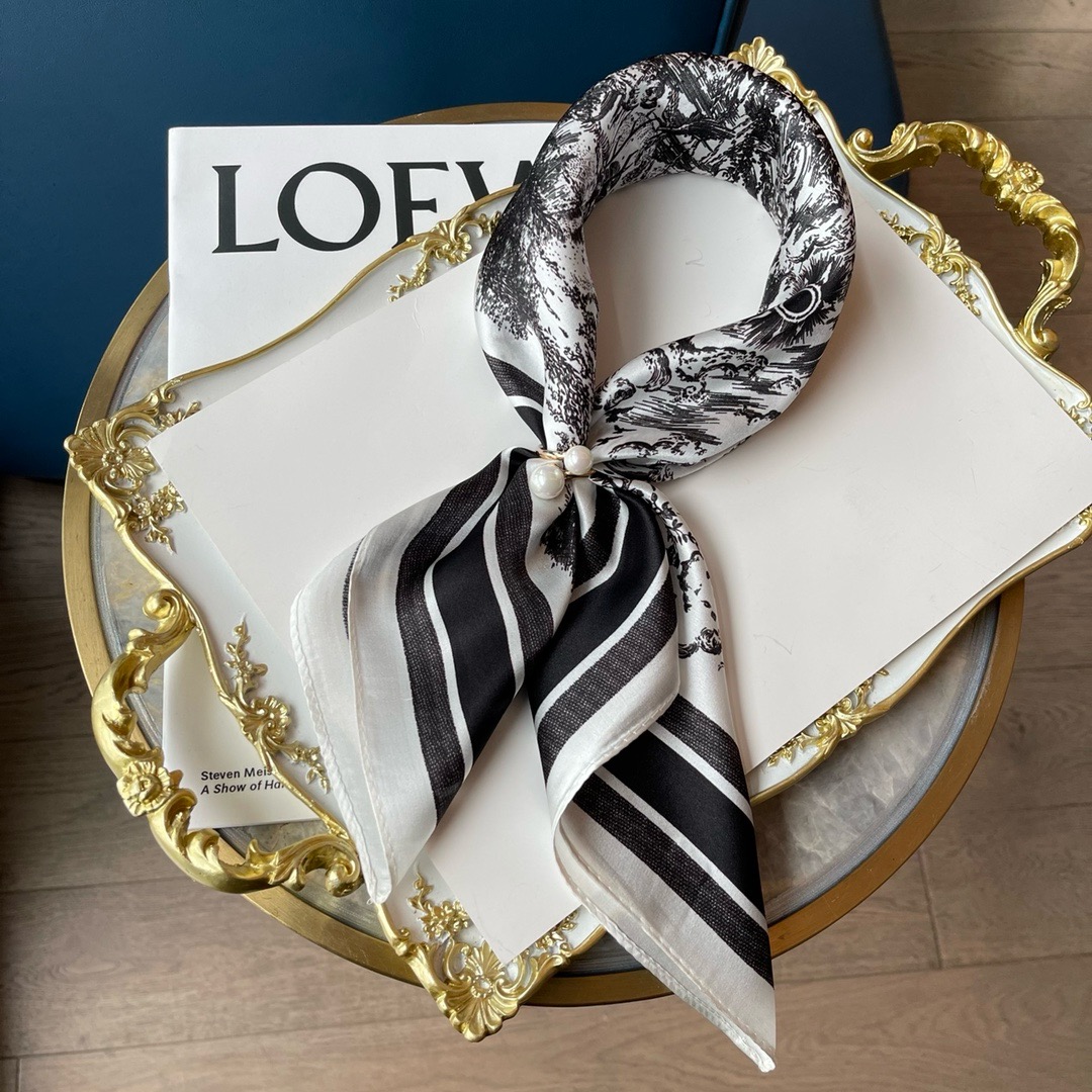 【New】Dior Classic Ink Painting Silk Scarf White