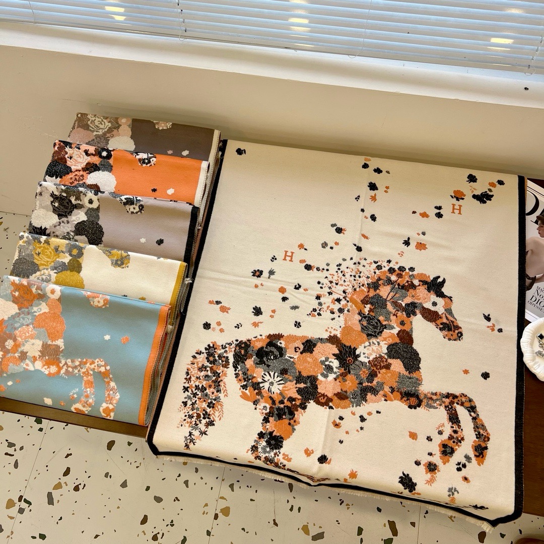 Hermès Reversible Soft Cashmere Feel Scarf Large Shawl Wrap Double-side Art Print Warm Pashmina
