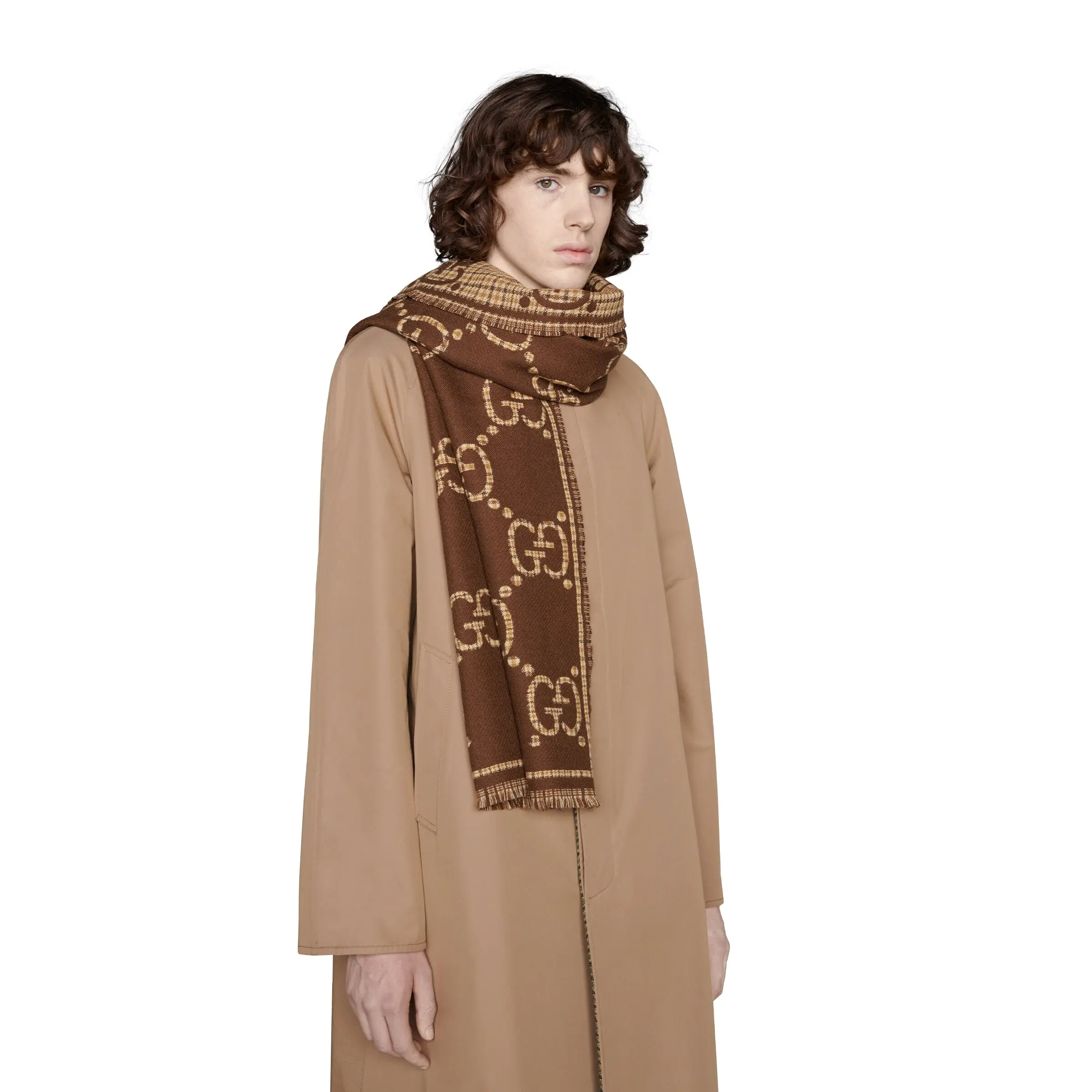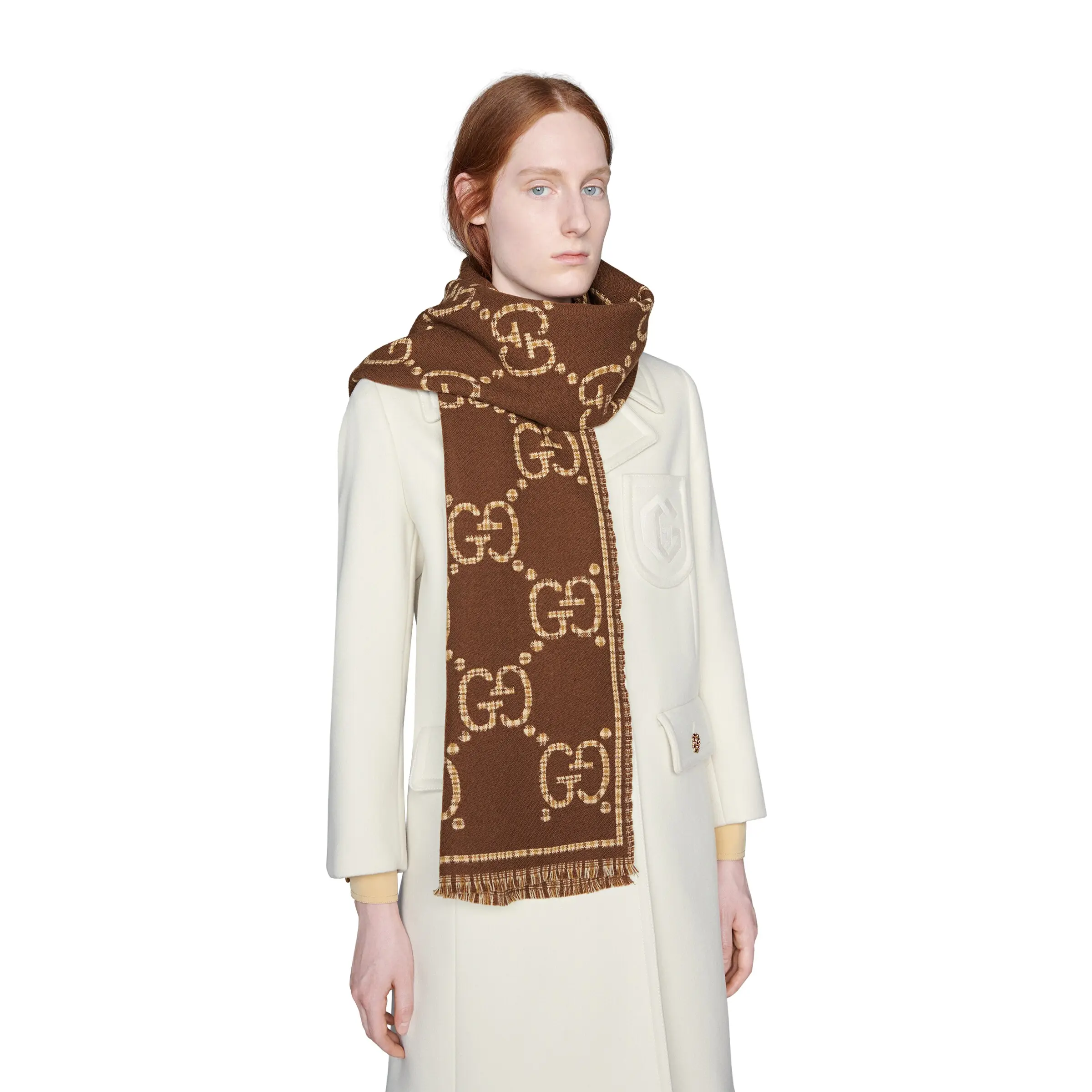【New】GUCCI GG Wool Scarf Brown