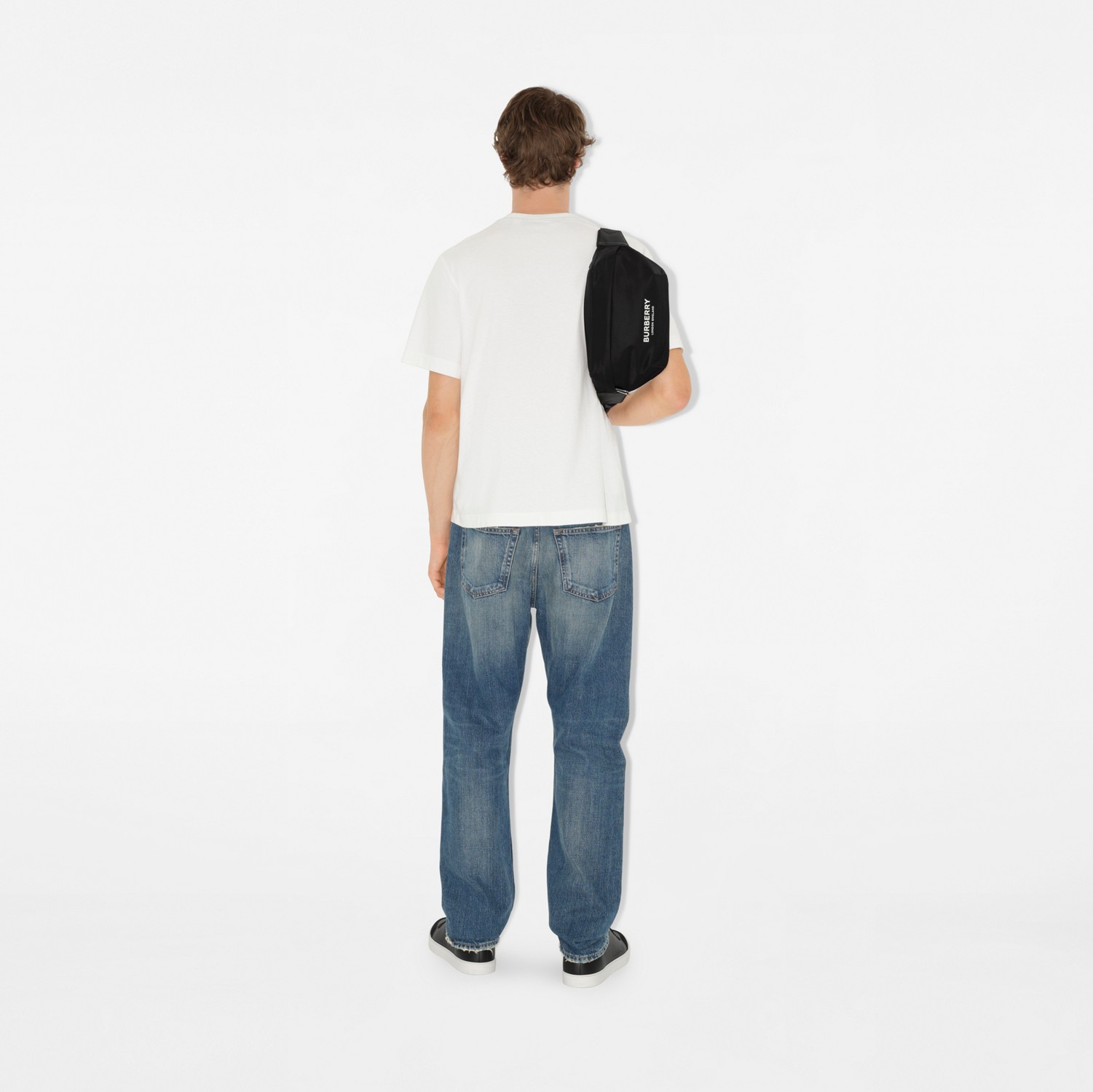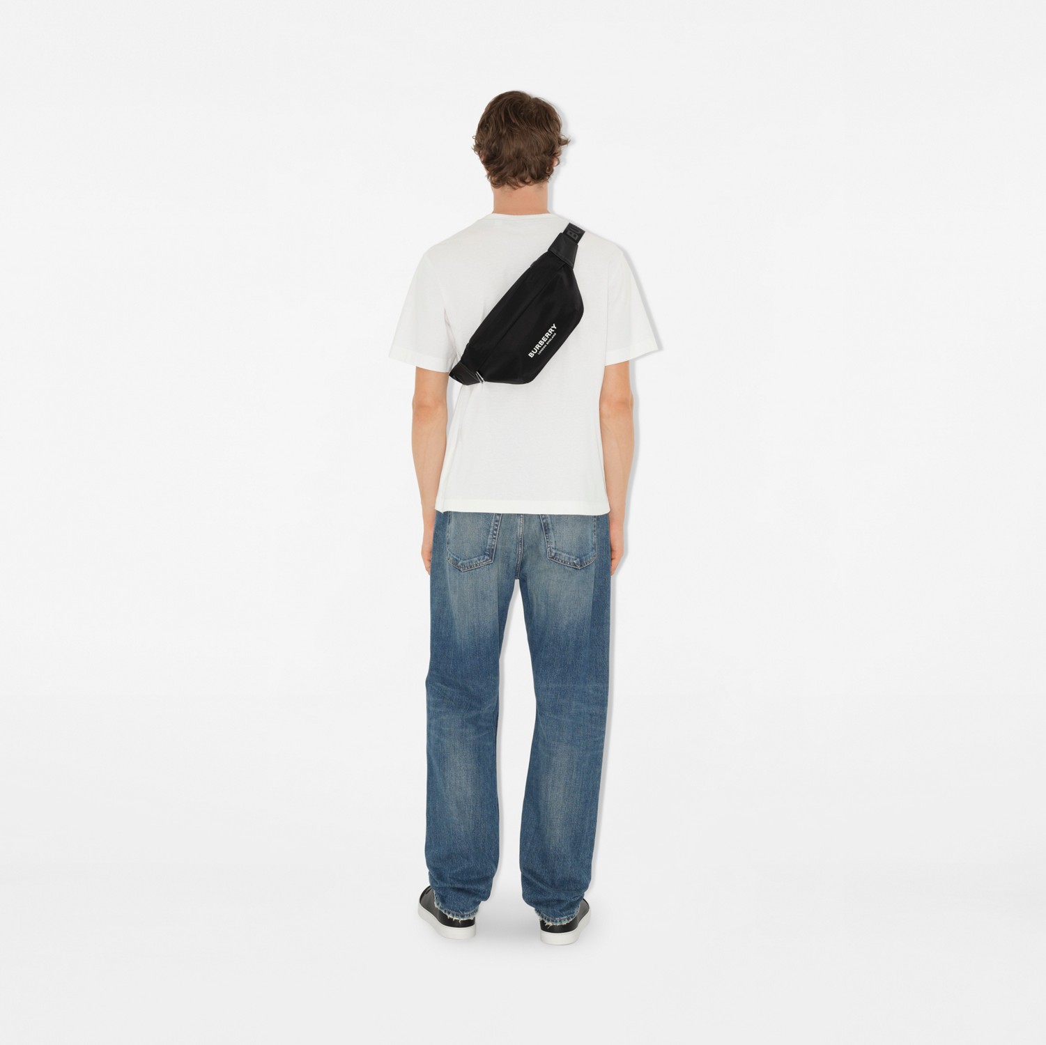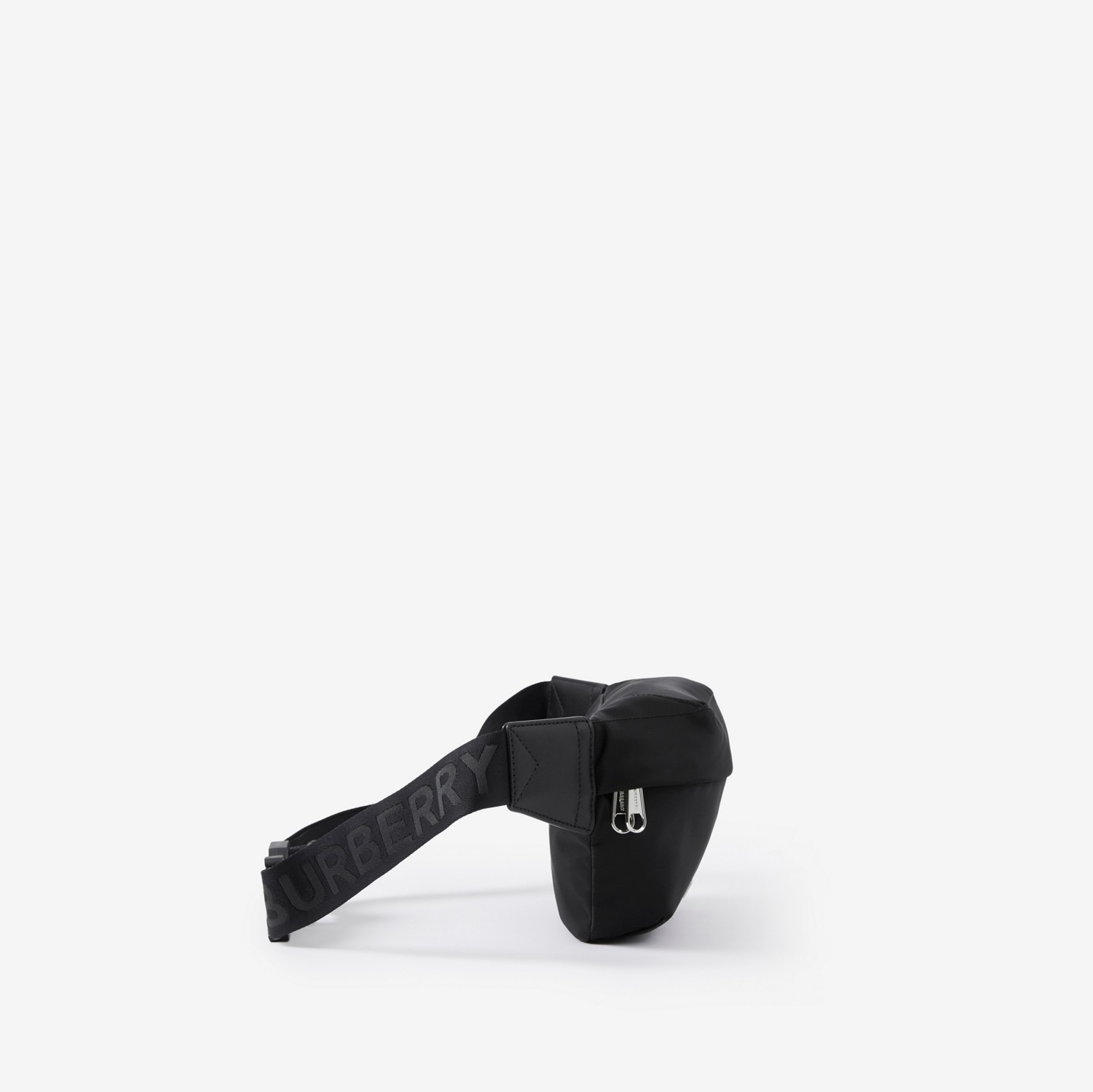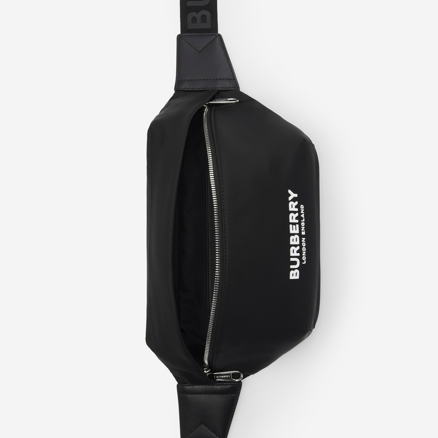Nylon belt bag with Burberry printed 3D lettering and lining in the same fabric. With smooth leather trim, the branded shoulder strap in jacquard fine fabric can be adjusted to switch between crossbody and belt bag styles.