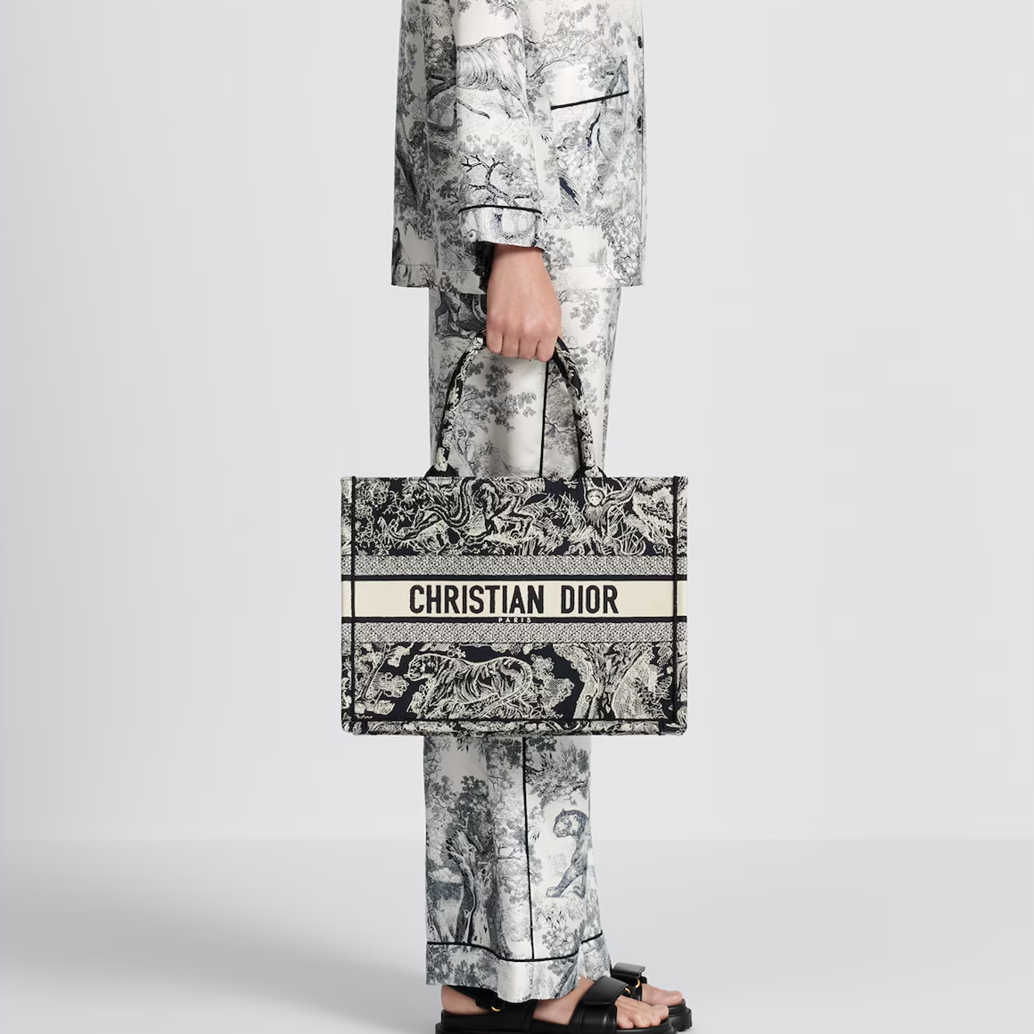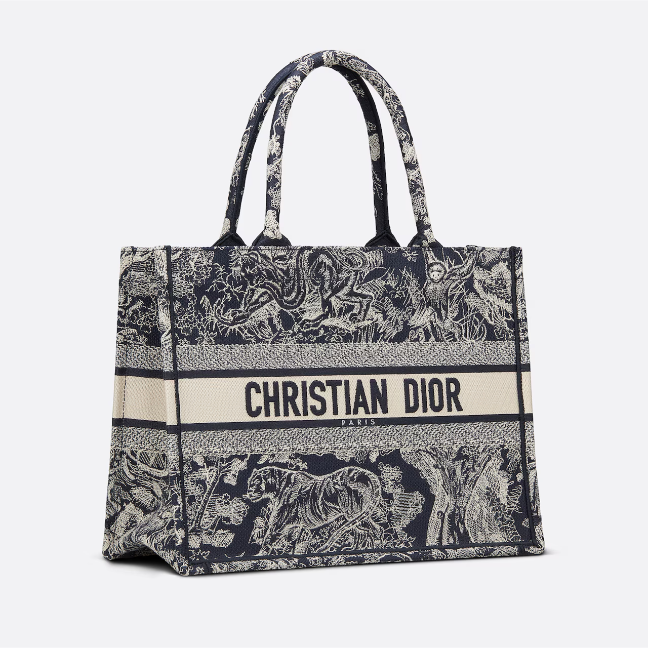 Designed by Maria Grazia Chiuri, Creative Director of Dior Women's Collections, the Book Tote is a staple of the Dior aesthetic. Embroidered with the blue and off-white Reverse Jouy print, a new take on the classic motif with a reversed effect, it can hold all your daily essentials. The medium size features the Christian Dior Paris logo on the front, a tribute to Dior's savoir-faire, and can be carried by hand or on the shoulder.