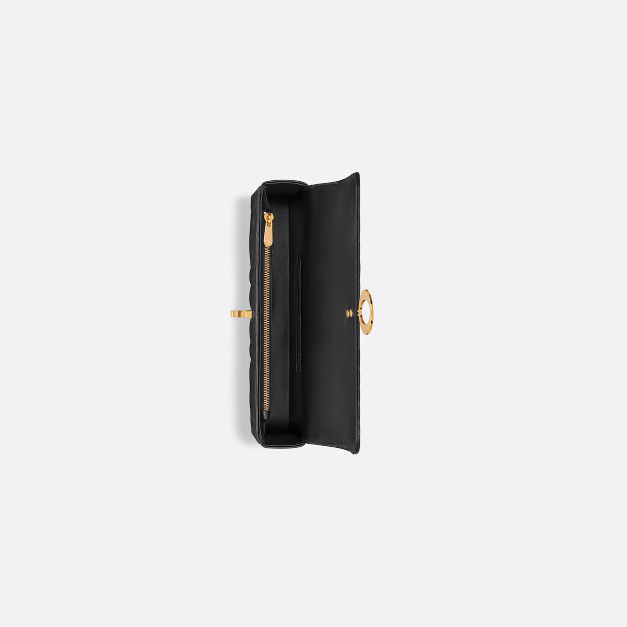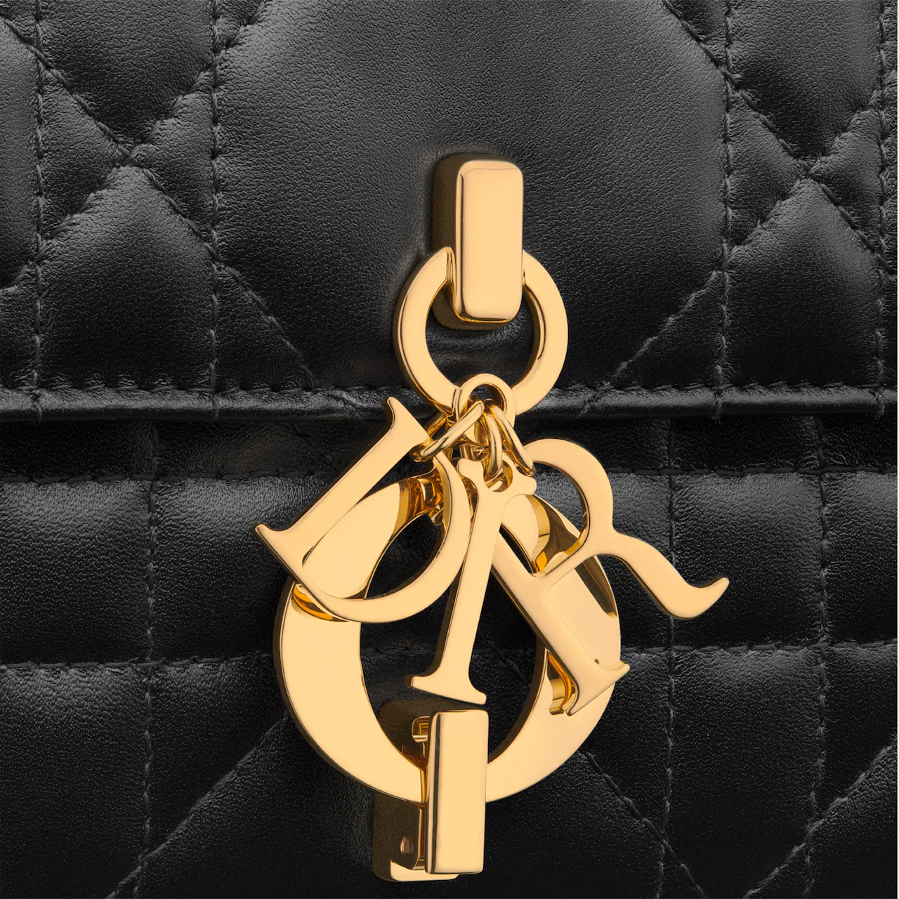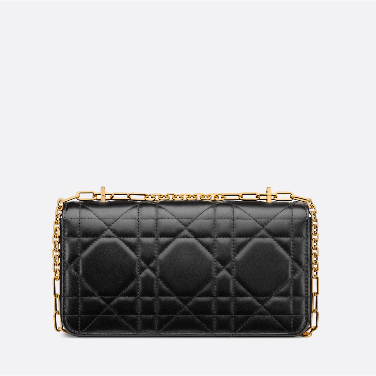 This Miss Daisy Mini Bag combines elegance and practicality. Crafted from black leather, it is decorated with classic oversized cannage stitching to enhance the style. The front flap is decorated with a practical D.I.O.R. charm closure. The practical style features a compartment with an internal zipper pocket and card slots to store a variety of daily necessities, making it an ideal companion for day and evening wear. With a chain decorated with a leather strap, it can be carried by hand, on the shoulder or cross-body.