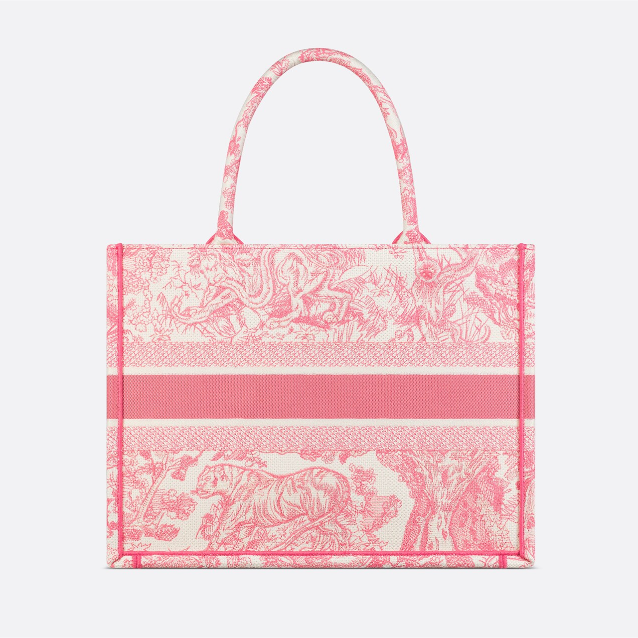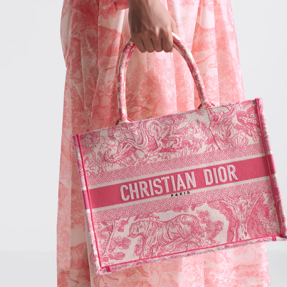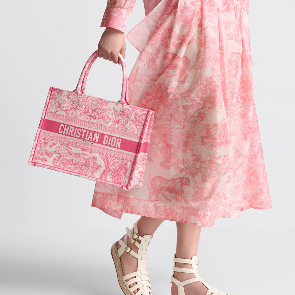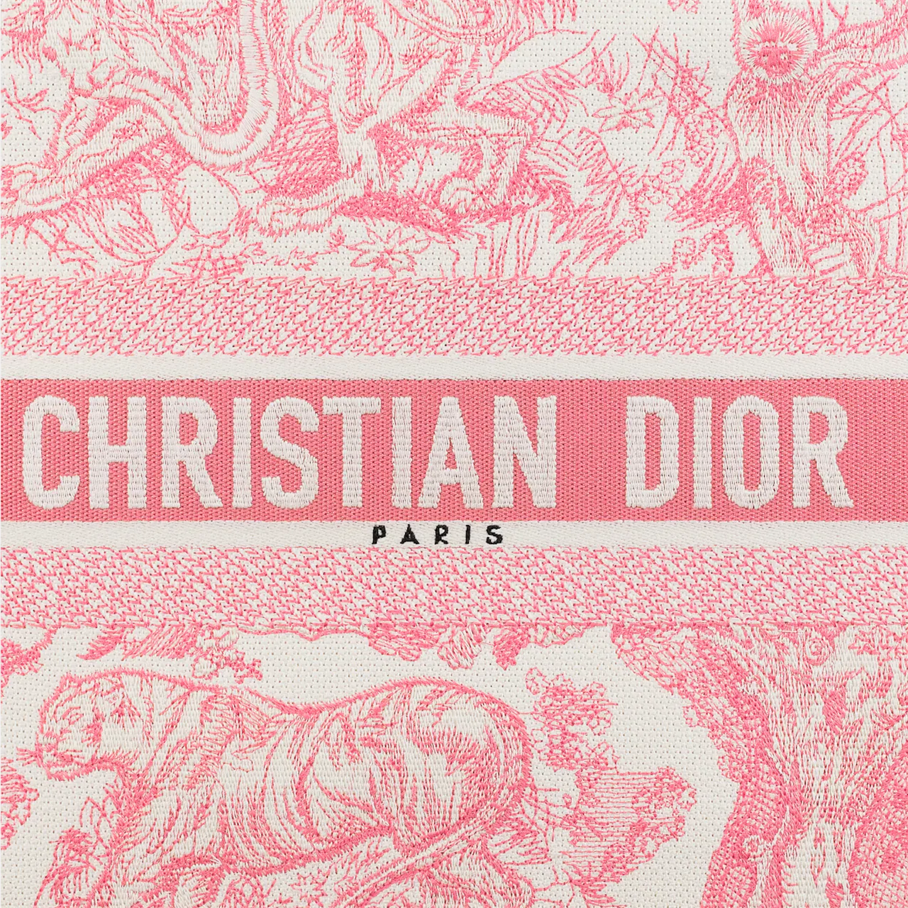 Designed by Maria Grazia Chiuri, Creative Director of Dior Women's Collection, the Dior Book Tote is part of the Dioriviera limited edition collection and is a staple of the Dior aesthetic. Embellished with the candy pink Jouy print throughout, it can hold all your daily essentials. The medium size features the Christian Dior Paris logo on the front, a tribute to Dior's savoir-faire, and can be carried by hand or on the shoulder.