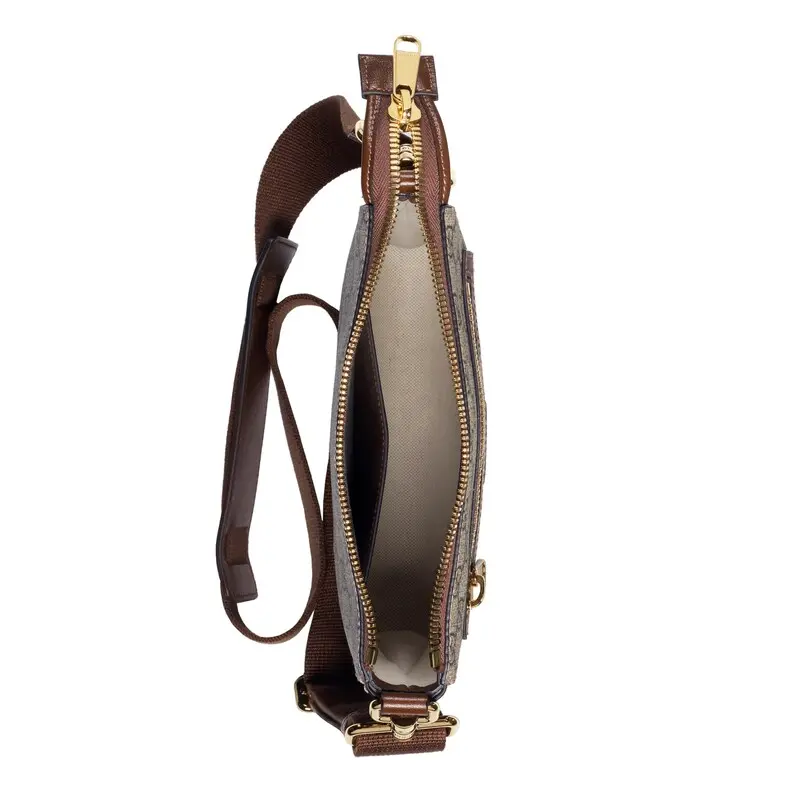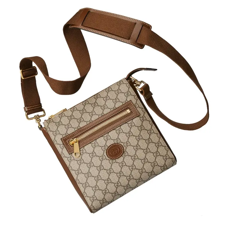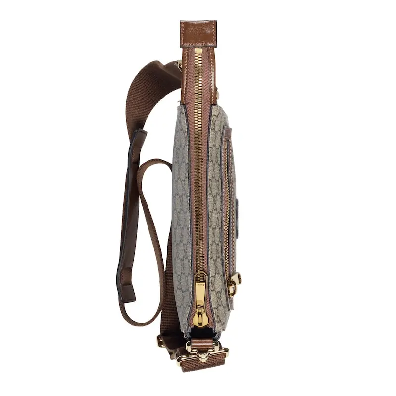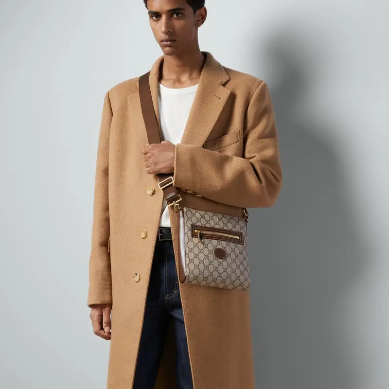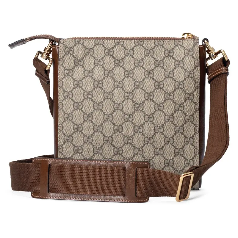 The signature GG Sumpreme canvas is made from coated microfiber, a soft and stretchy material that is a timeless brand staple. This messenger bag is available in beige and ebony with brown leather trim.