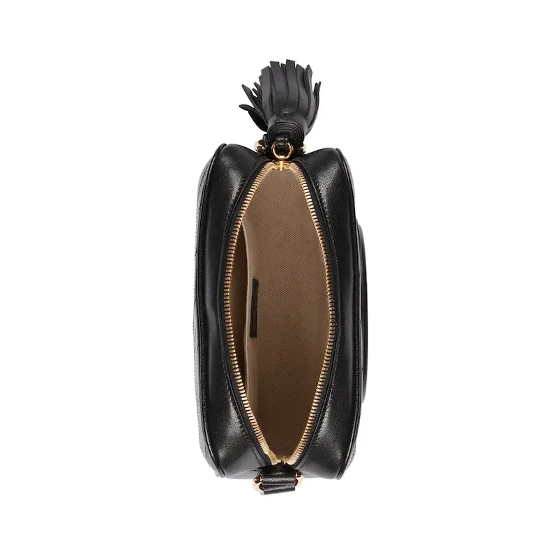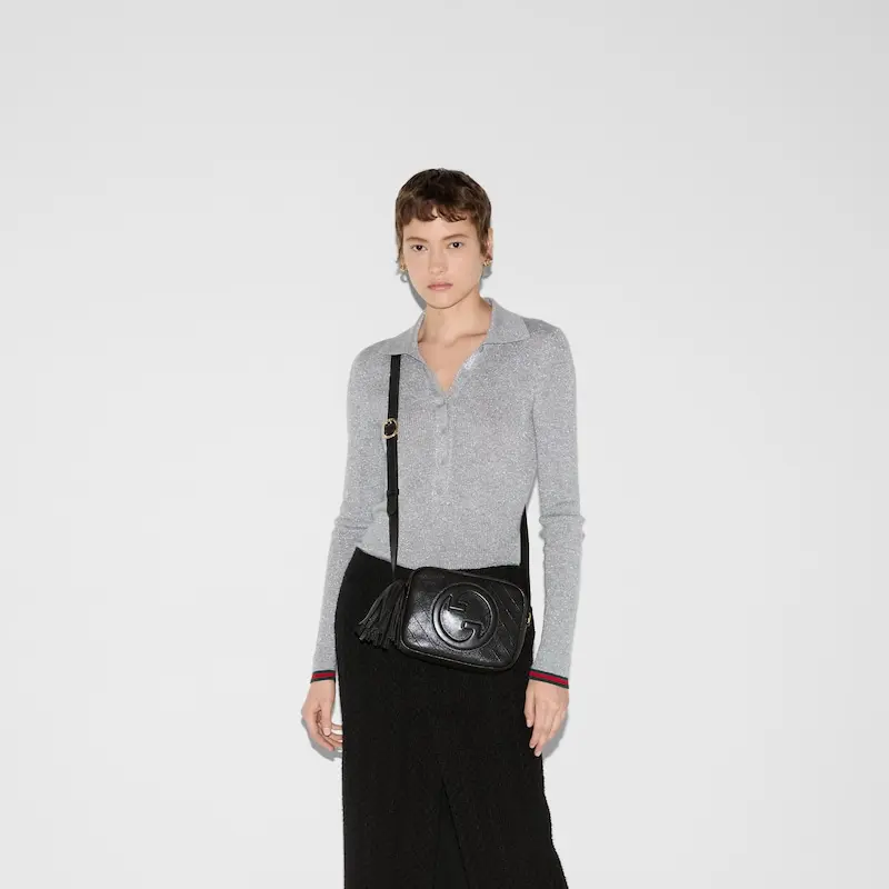 The Gucci Blondie collection is reinterpreted with a circular interlocking G from the brand's archives. This Gucci Blondie collection of classic pieces, such as shoulder bags and crossbody bags, is embellished with exquisite leather patch details, reinterpreting the brand's heritage.