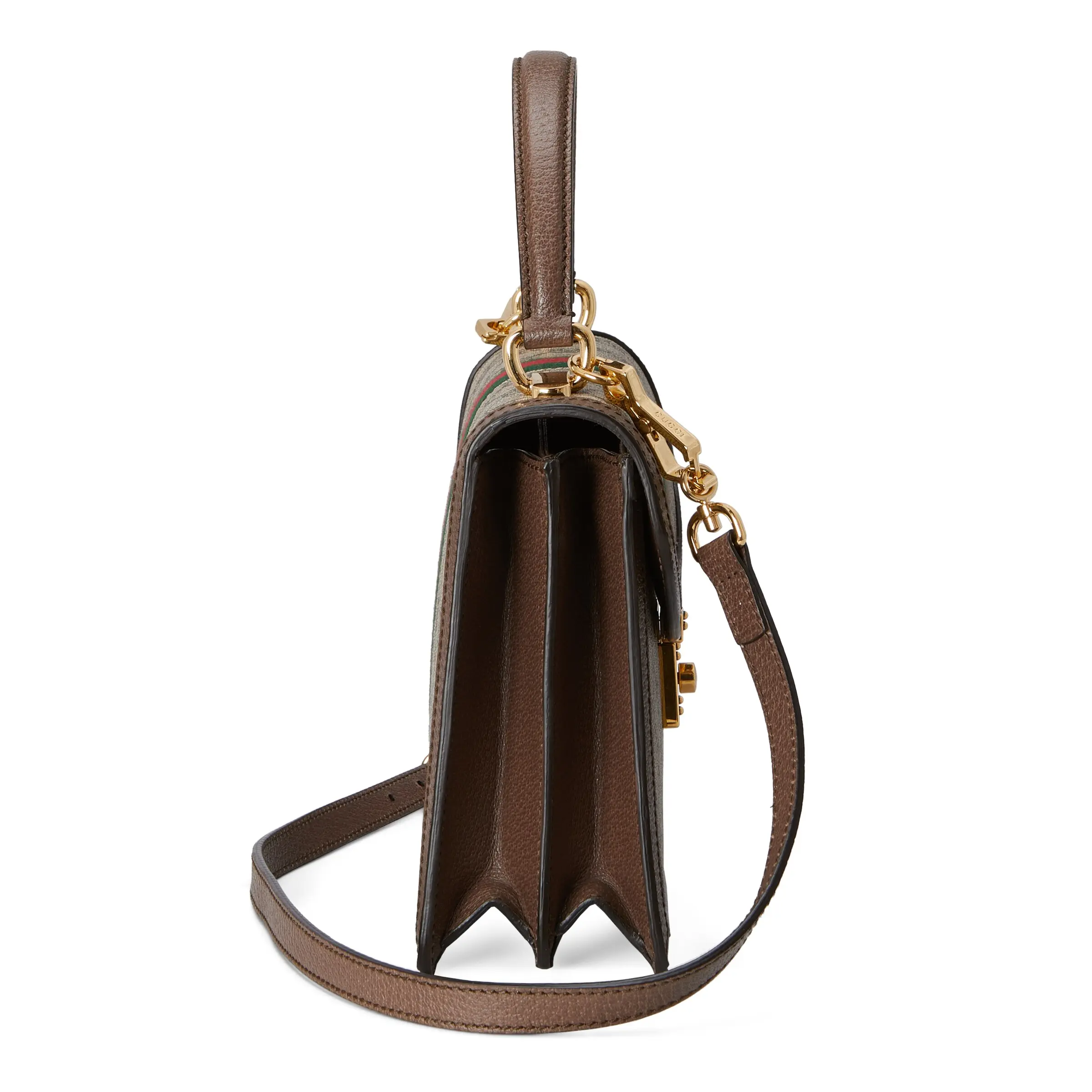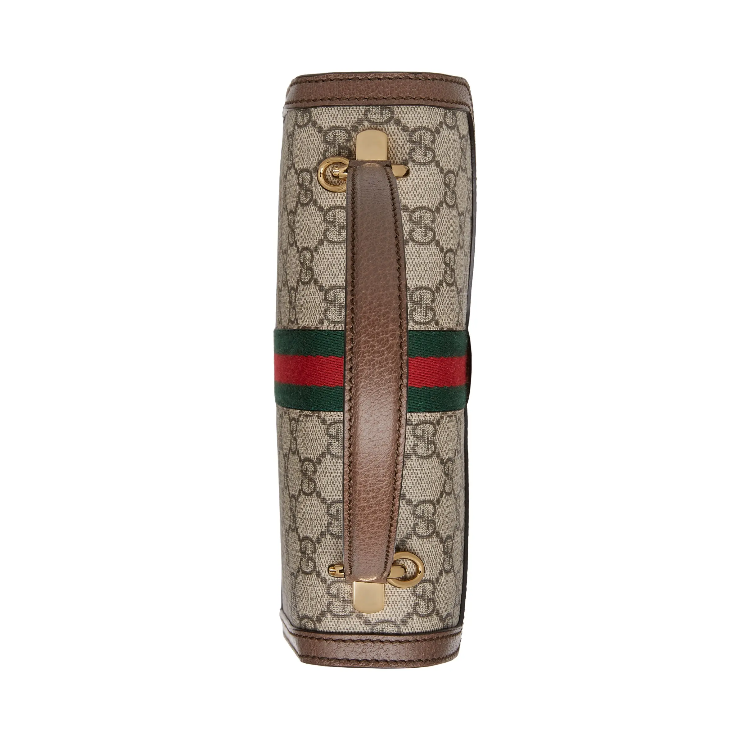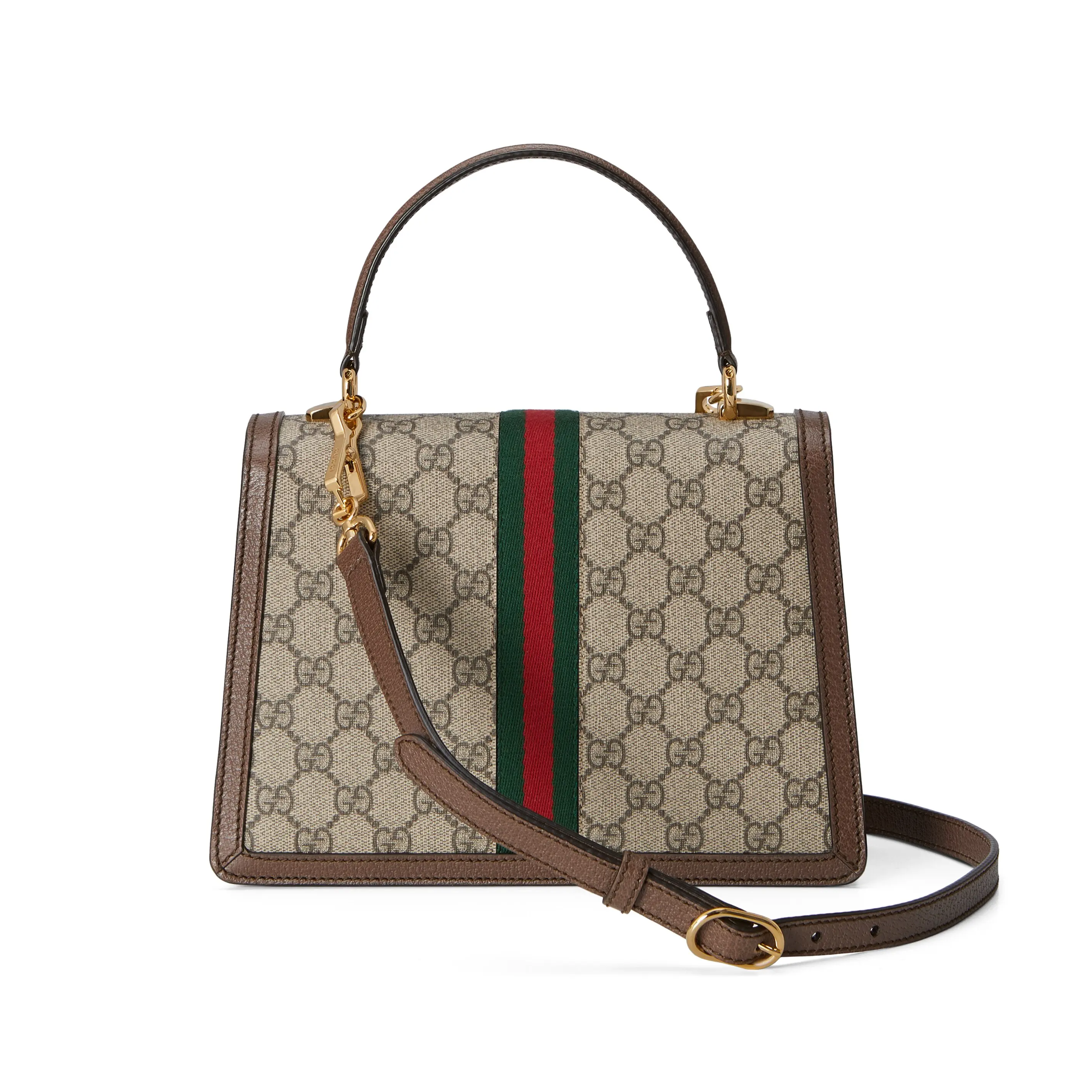 The Ophidia collection continues to grow, bringing new surprises every season. This tote is part of the Epilogue collection and features a removable shoulder strap. The square, vintage shape is combined with the House's signature striped web and a Double G-shaped hardware, inspired by the design of Gucci's archive belt buckles from the 70s, which has become one of the House's symbols after a modern aesthetic interpretation. The bag is made of the House's iconic Double G canvas.
