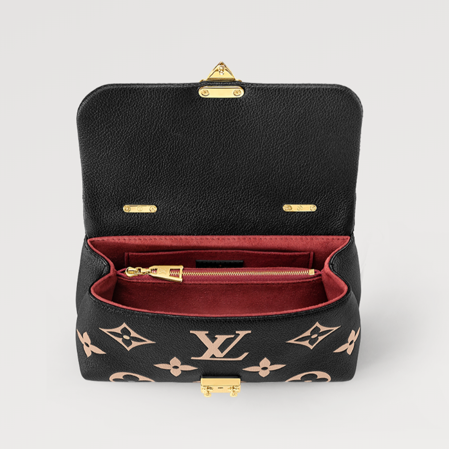 Madeleine BB in Monogram Empreinte leather with large Monogram embossing and print, featuring the S-lock closure also found on the Pochette Métis. Elegantly switch between carrying options with the single top handle and removable shoulder strap.