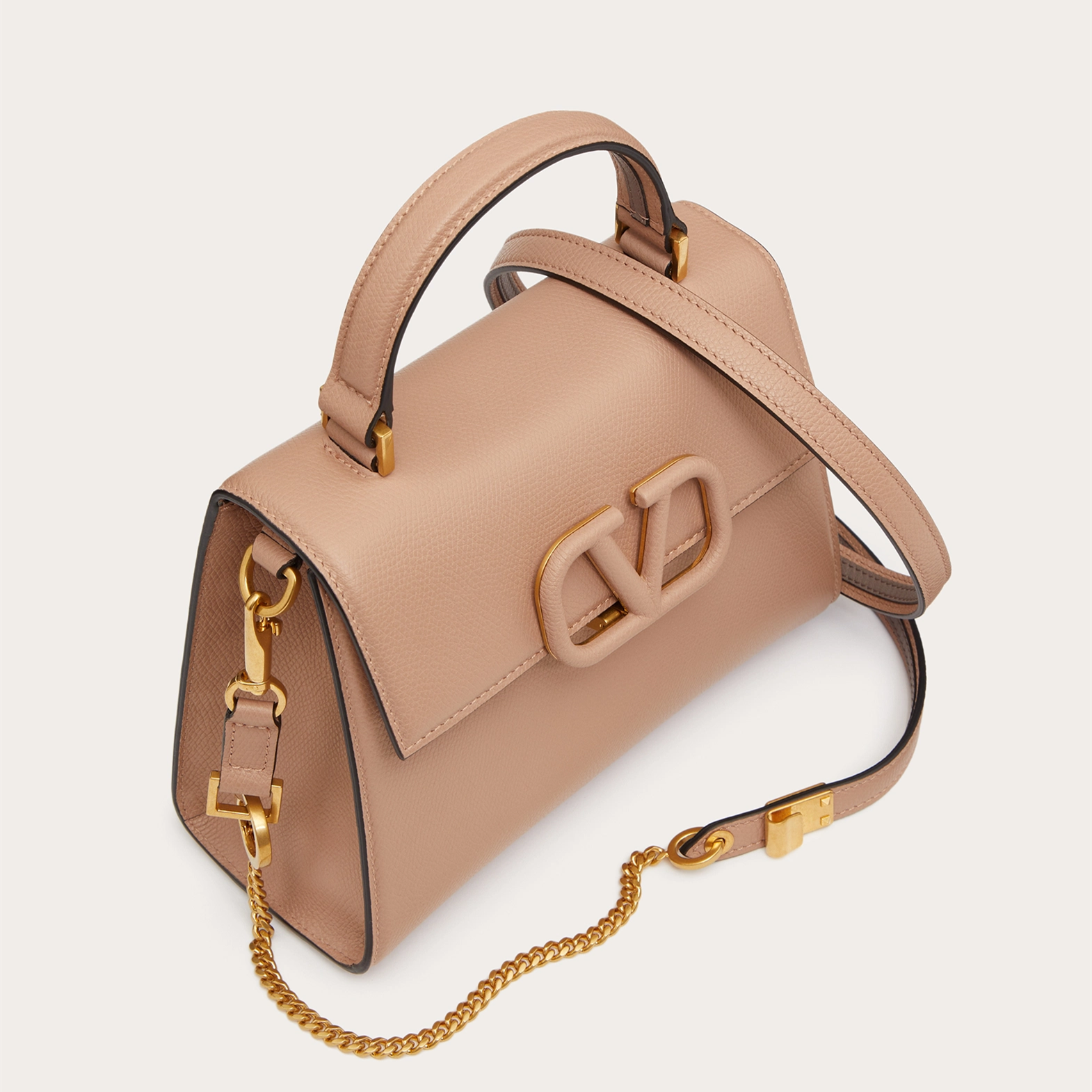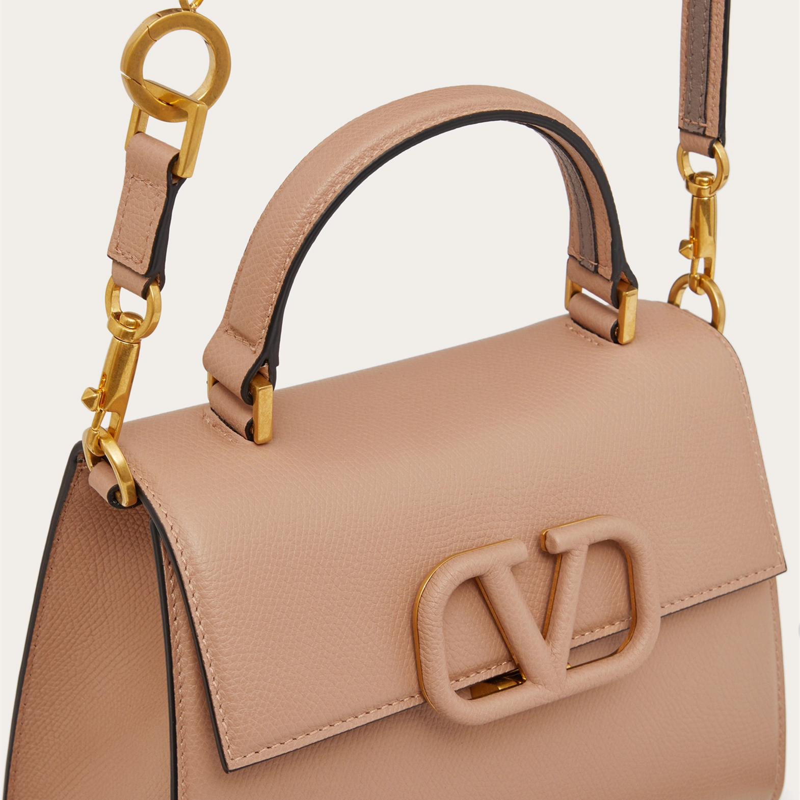VALENTINO GARAVANI VSLING Small Grained Calfskin Handbag, VLOGO SIGNATURE Closure, with an extendable shoulder strap, can be carried crossbody, on the shoulder or by hand