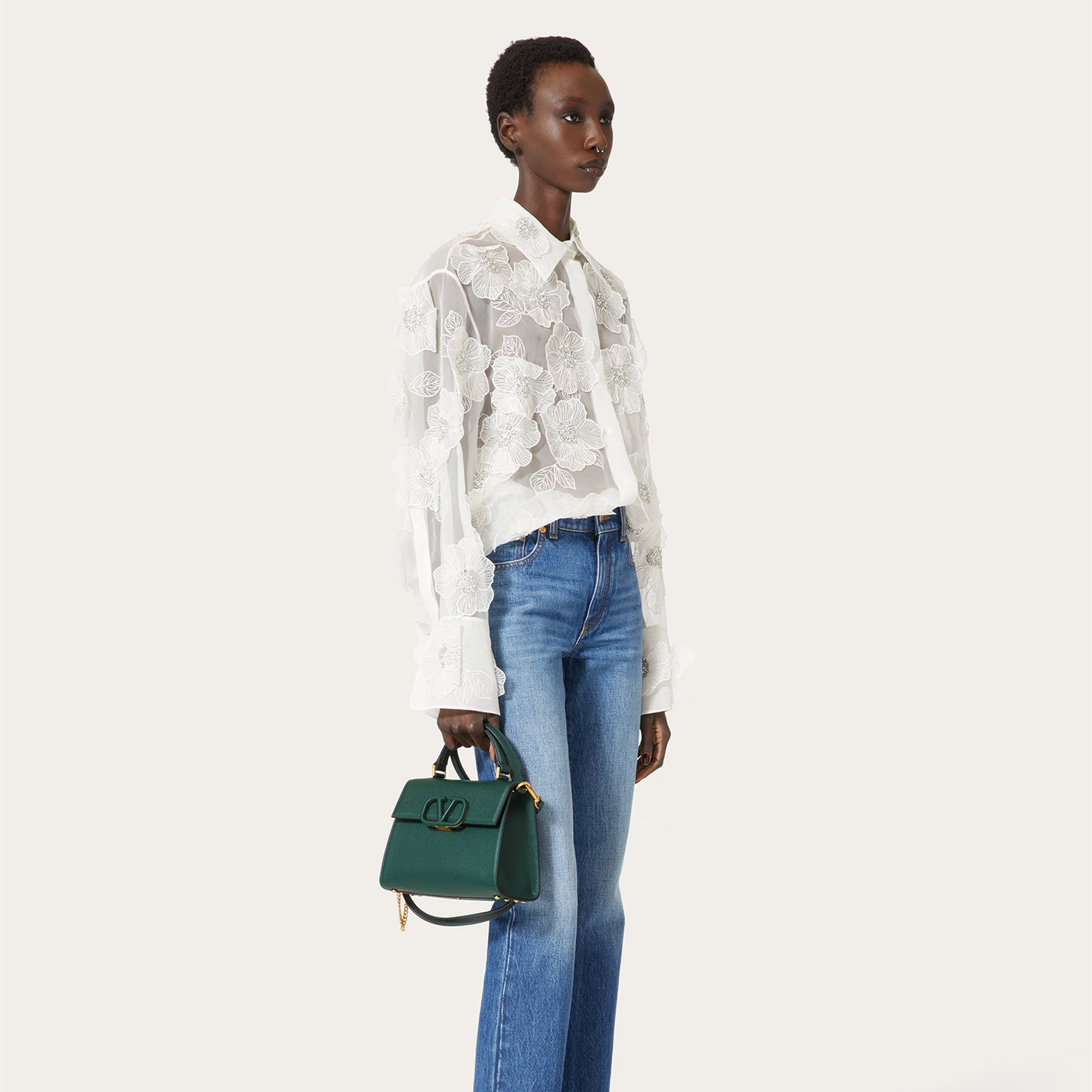 VALENTINO GARAVANI VSLING Small Grained Calfskin Handbag, VLOGO SIGNATURE Closure, with an extendable shoulder strap, can be carried crossbody, on the shoulder or by hand