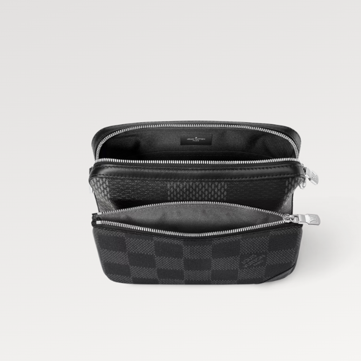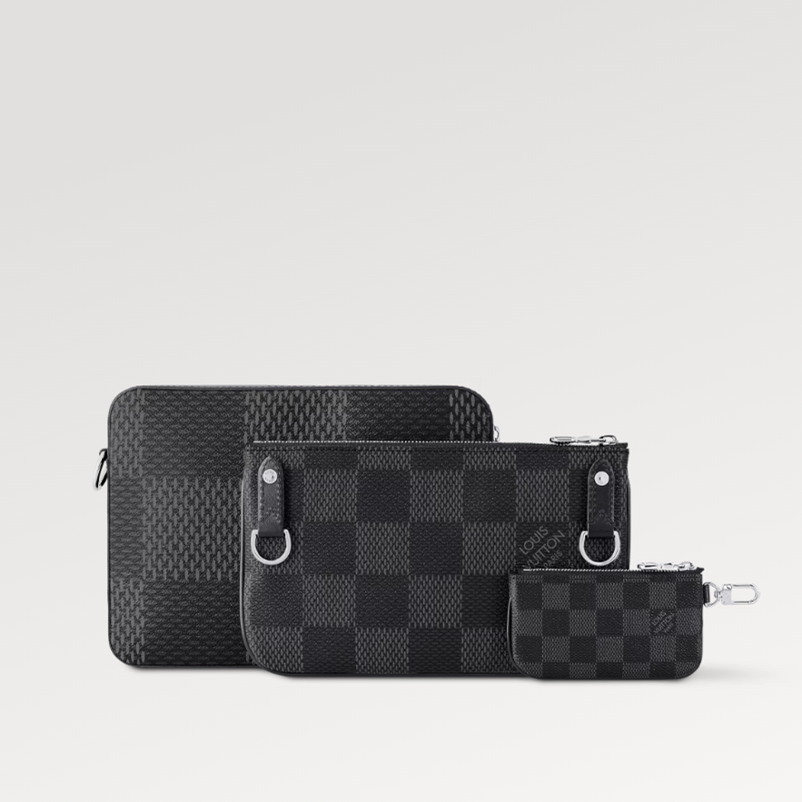 This new version of the Trio Messenger combines the versatility of a modular bag with the eye-catching elegance of Damier Graphite 3D canvas in subtle shades of gray. The removable zipped front pouch and coin purse make it a practical carrier for everyday necessities, and the adjustable strap guarantees comfortable cross-body wear.
