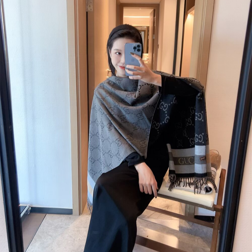 【Celebrity Favorite】Loved by many celebrities and trending on social media, this scarf has become a must-have fashion accessory. Its chic design and luxurious texture make it one of Gucci’s most enduring and iconic styles.