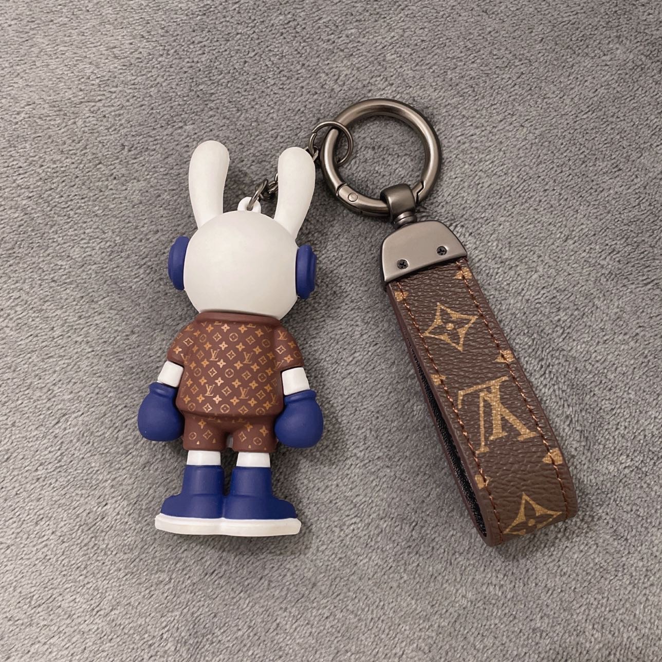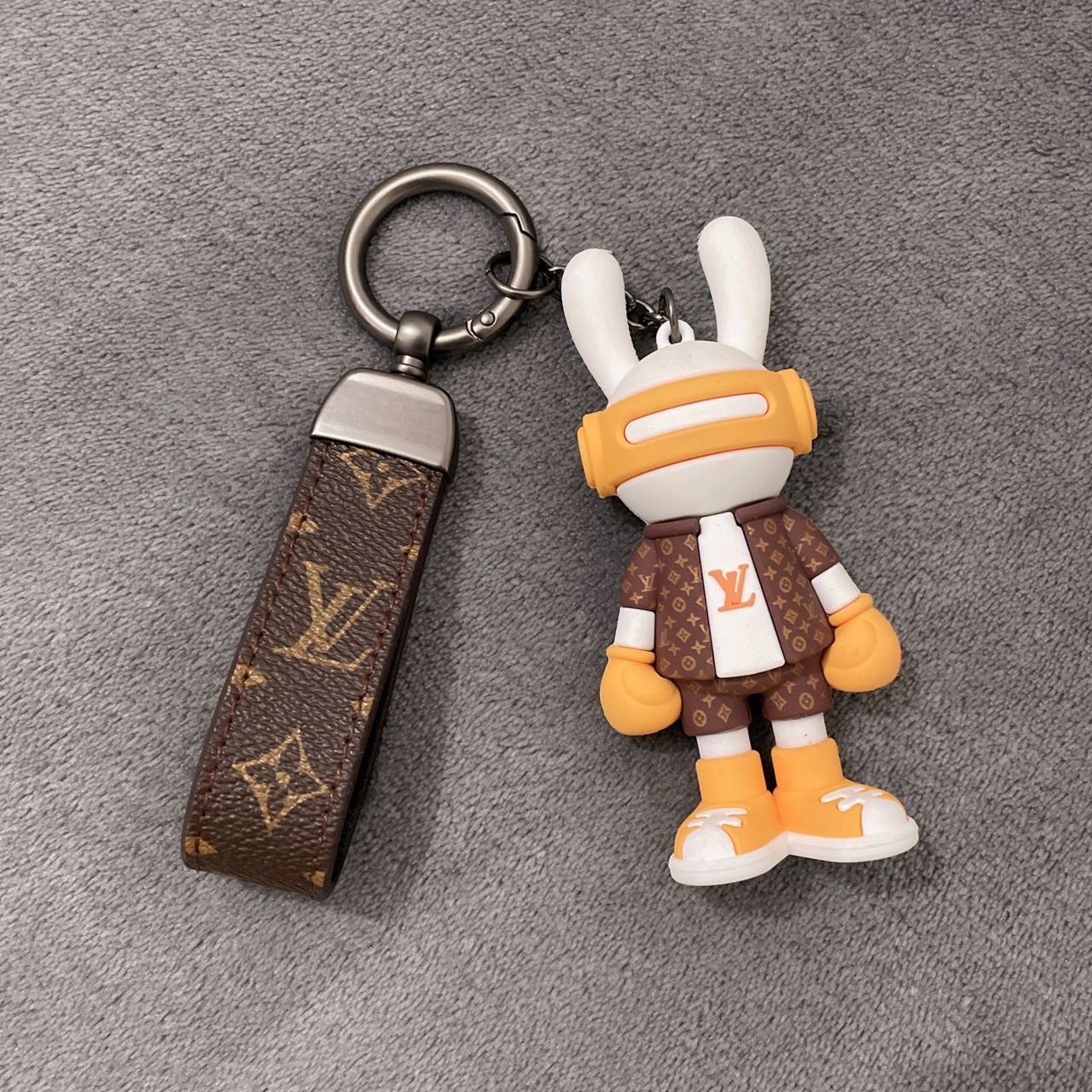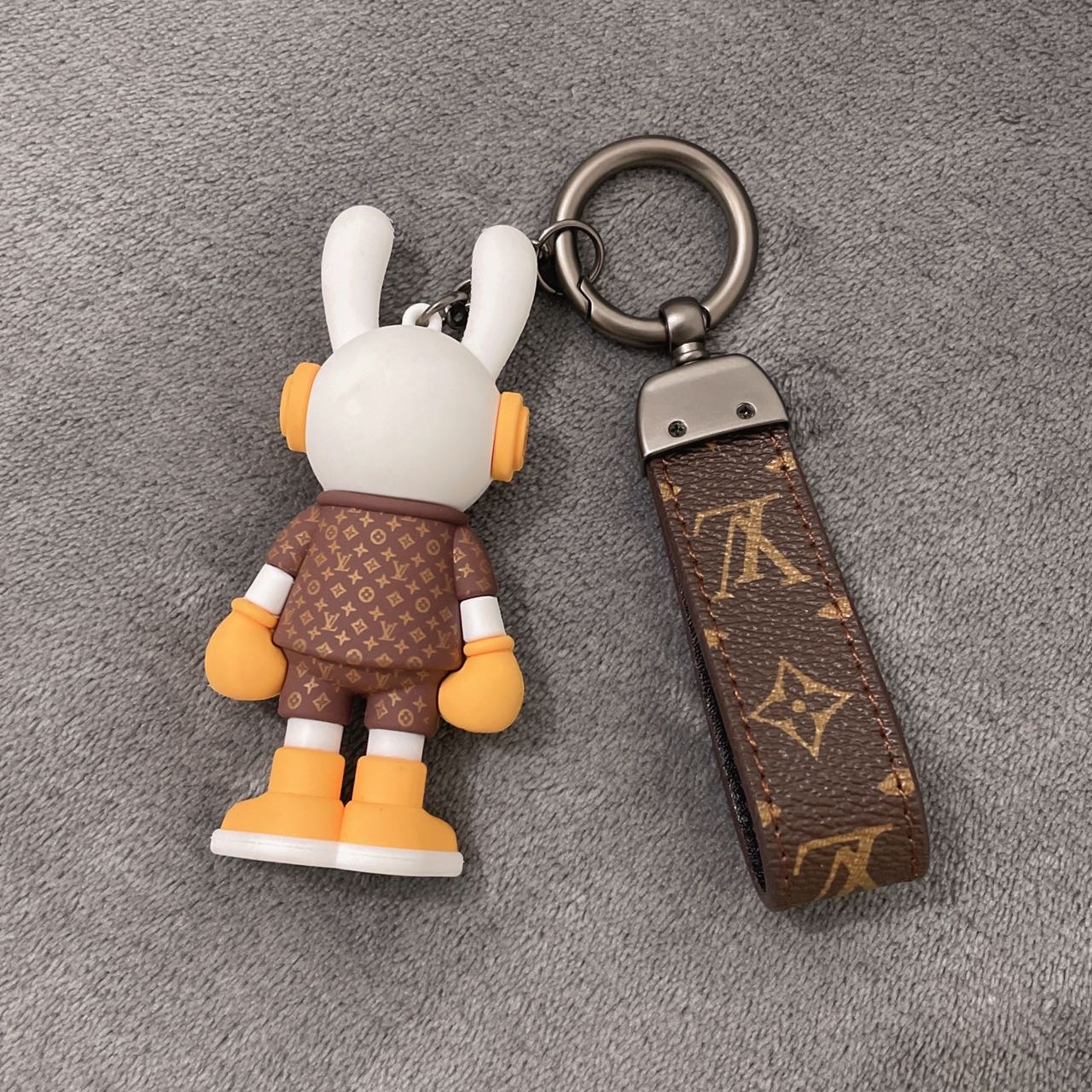 【Playful Design】This LV bunny keychain features an adorable bunny shape dressed in the iconic LV monogram outfit, adding a fun and stylish vibe to your accessories.