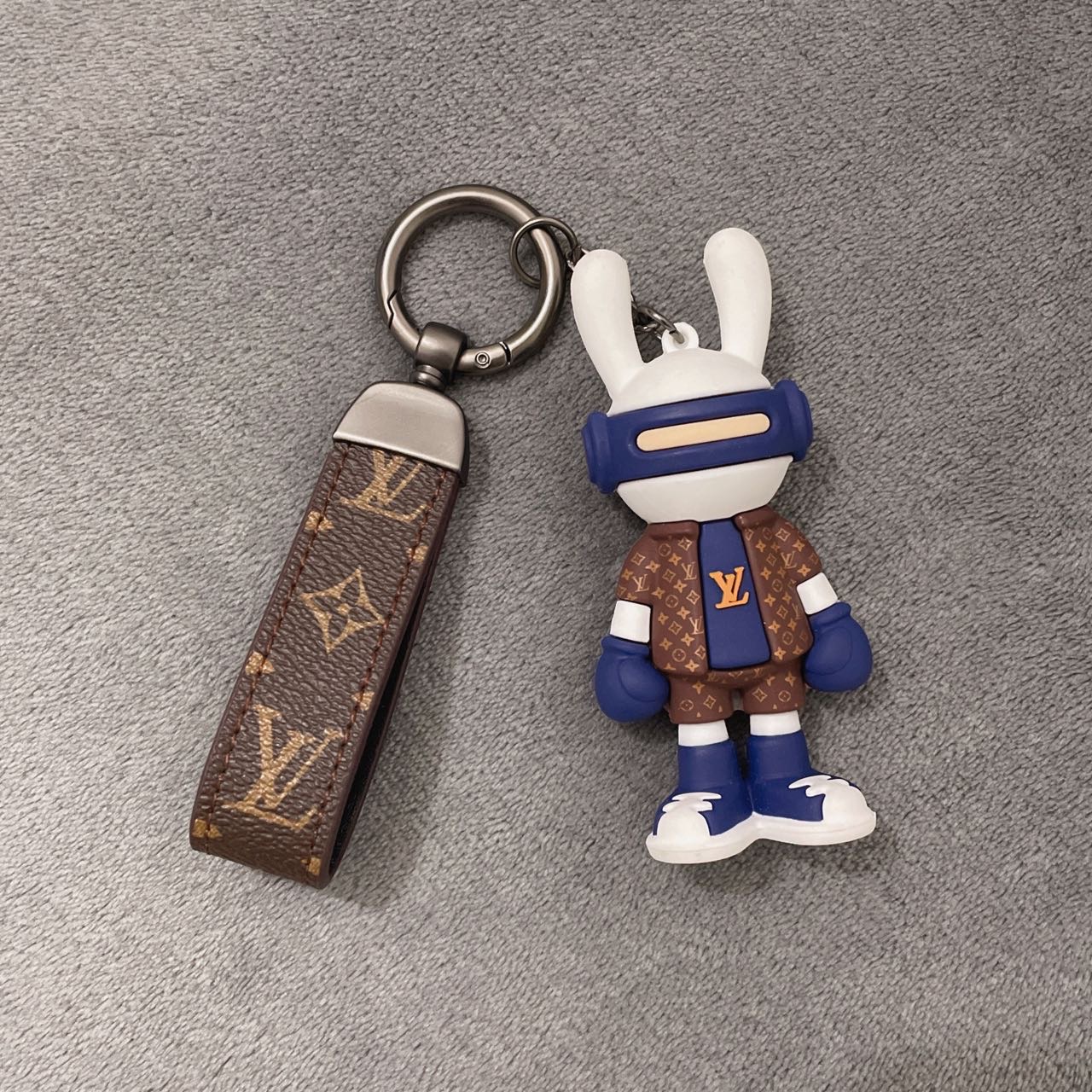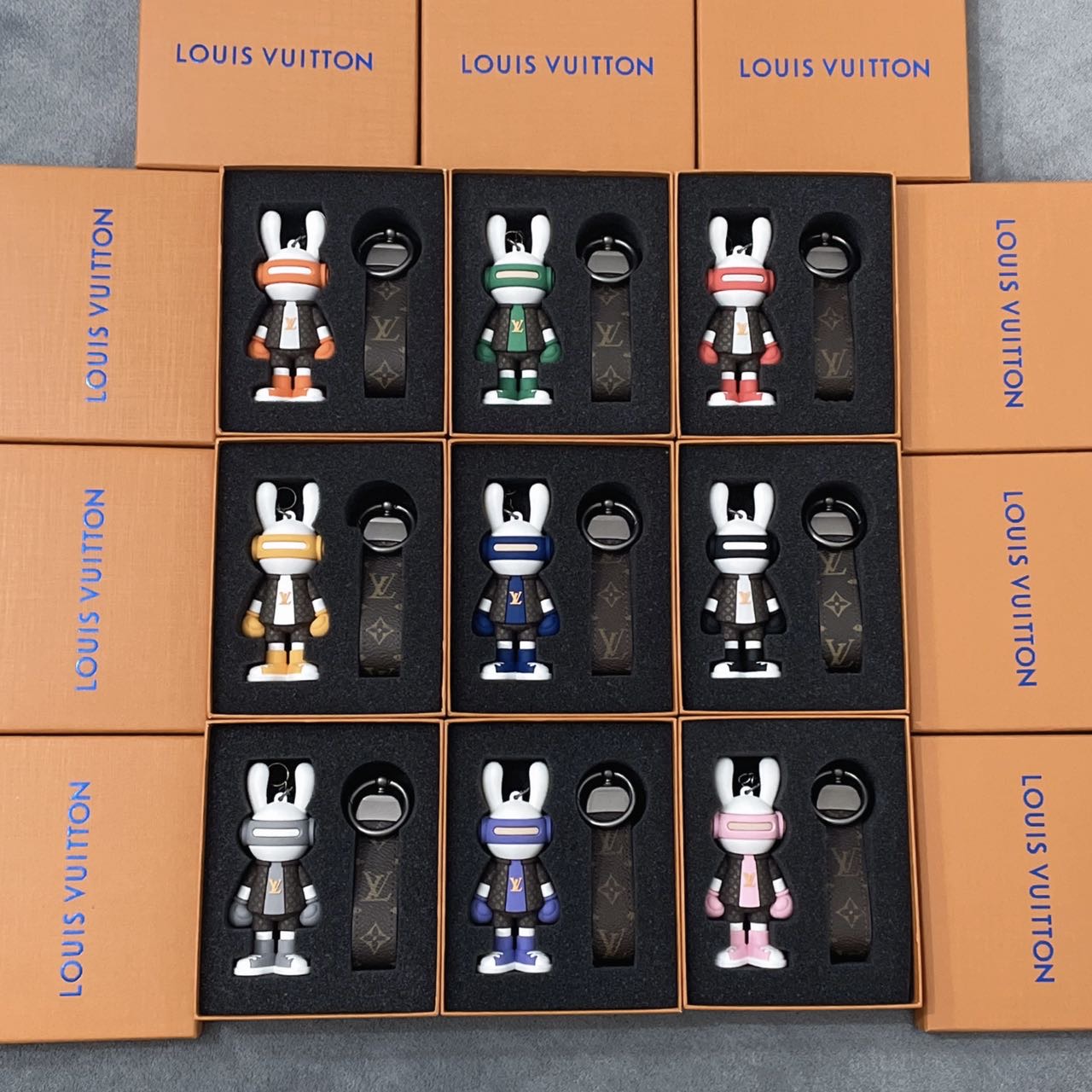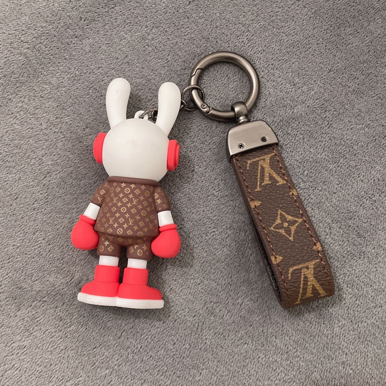 【Playful Design】This LV bunny keychain features an adorable bunny shape dressed in the iconic LV monogram outfit, adding a fun and stylish vibe to your accessories.