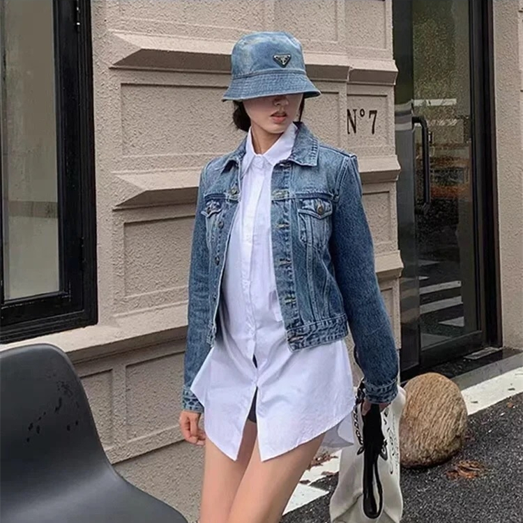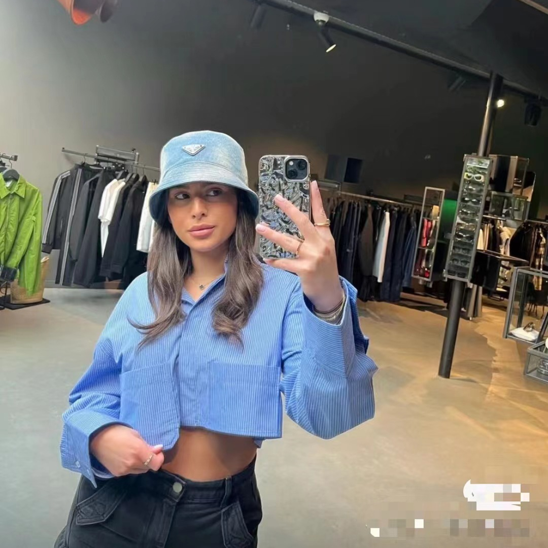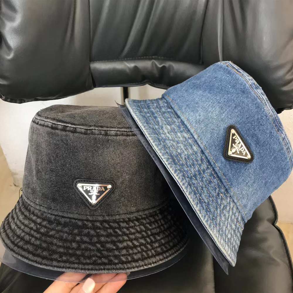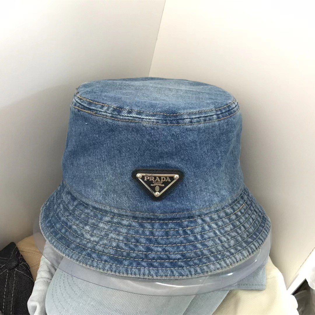 【Trendy Design】 This hat features the iconic Prada triangle logo and a washed denim fabric that adds a vintage yet modern touch to your outfit.