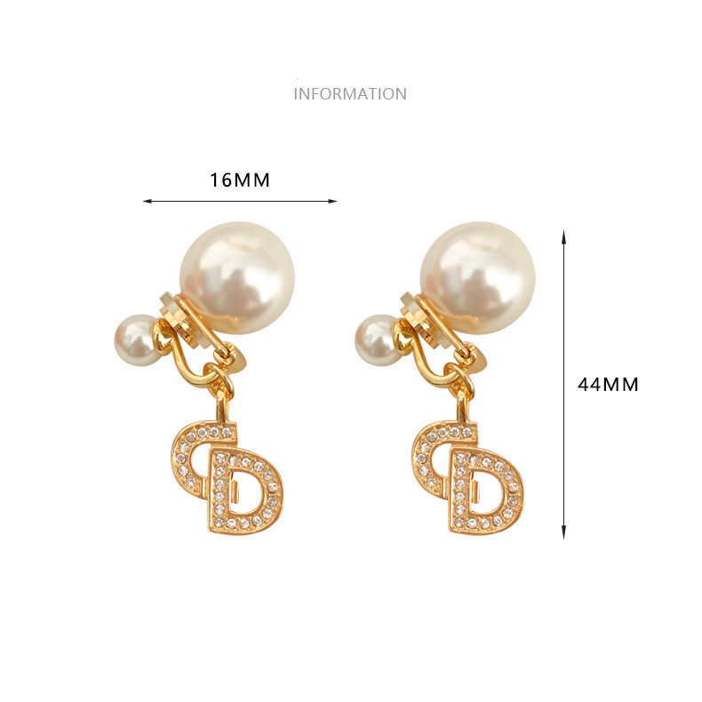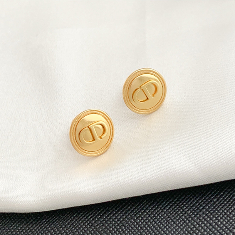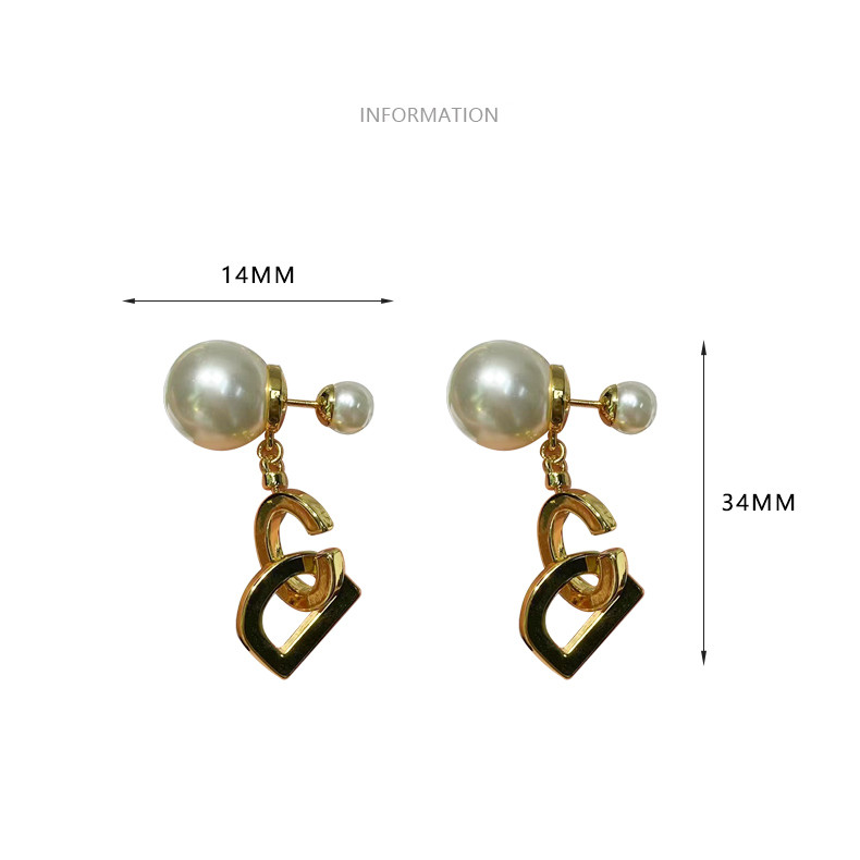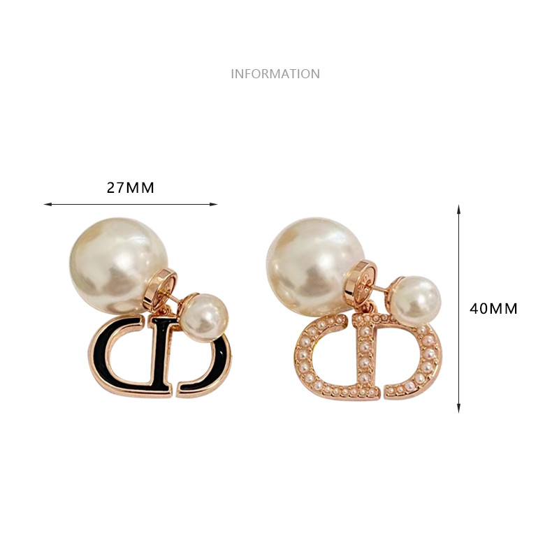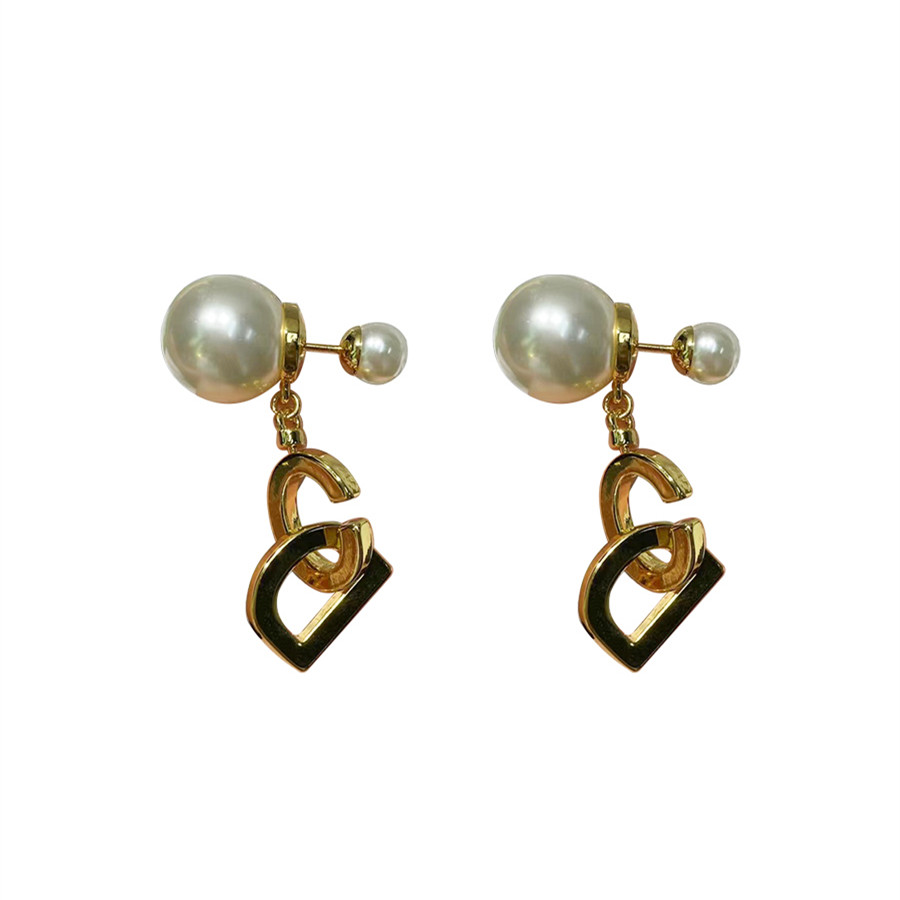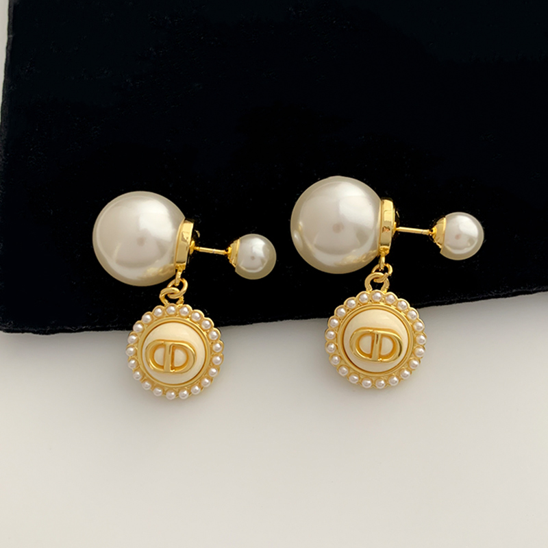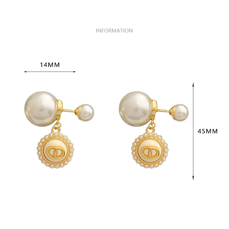 Round Button Letter CD Pendant Pearl Stud Earrings