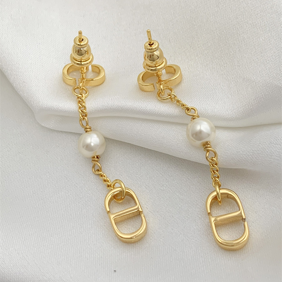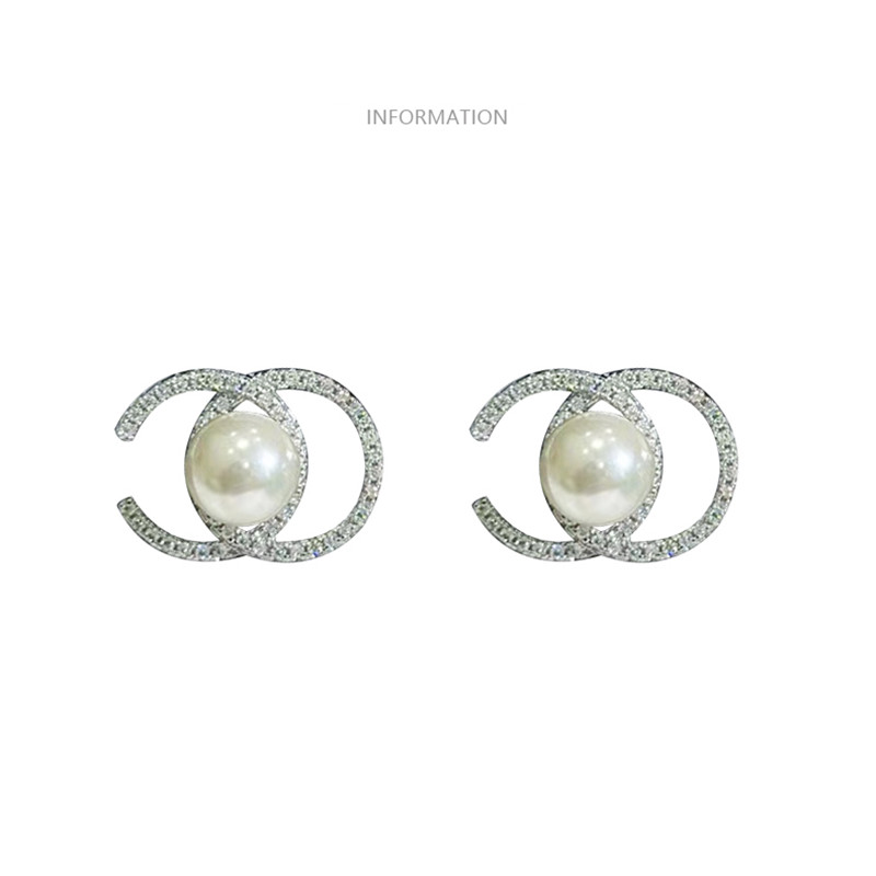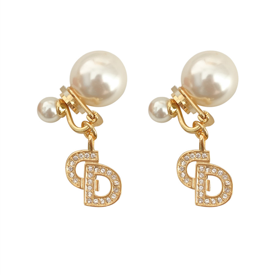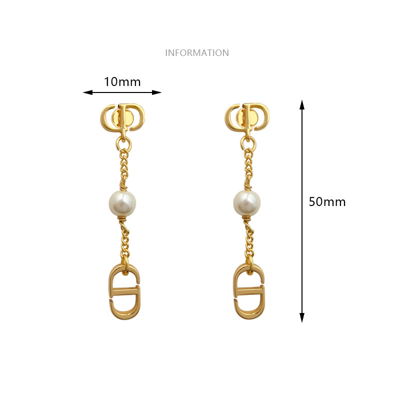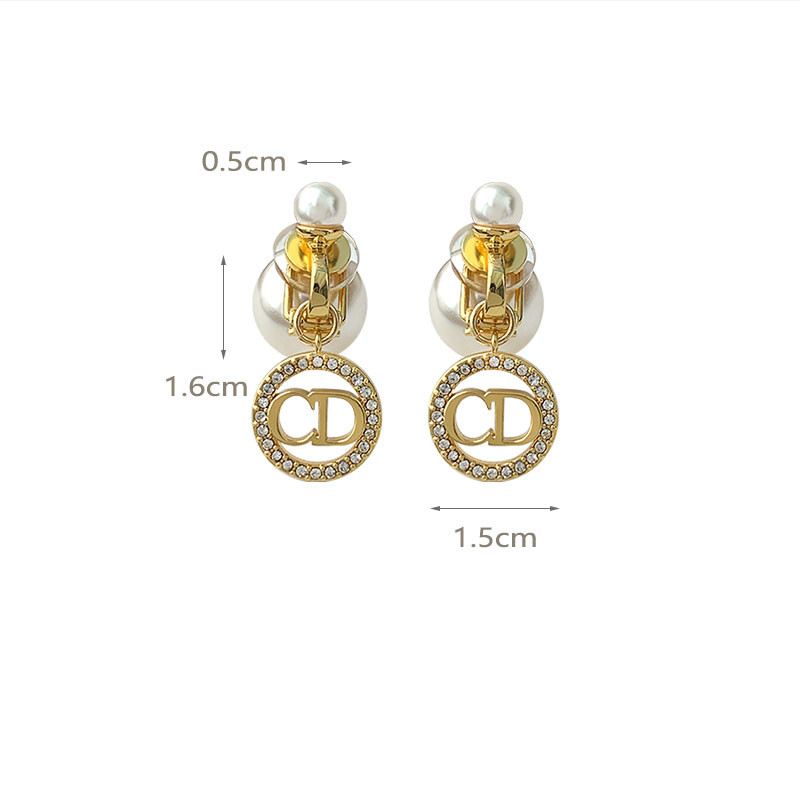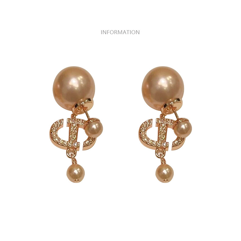 Round Button Letter CD Pendant Pearl Stud Earrings