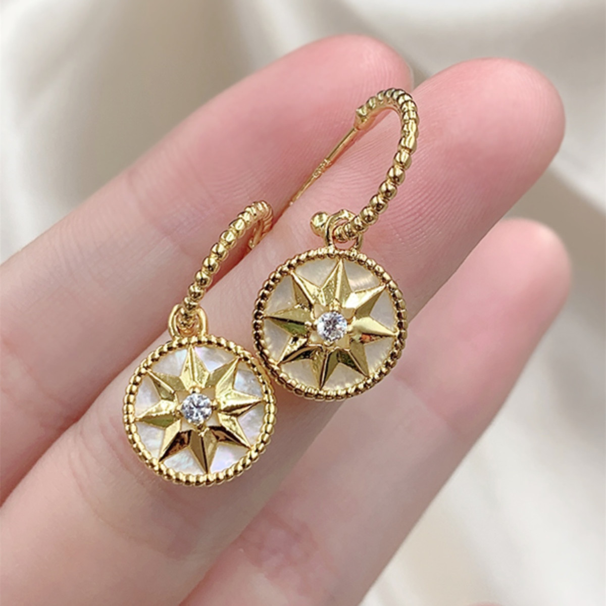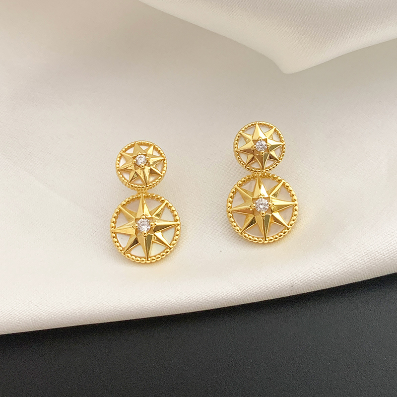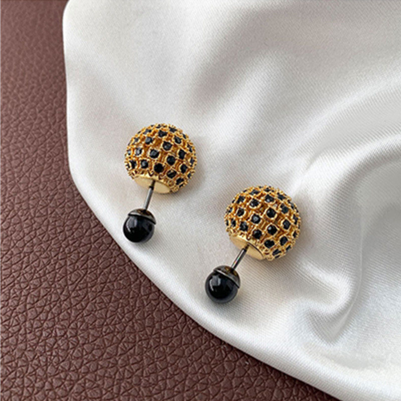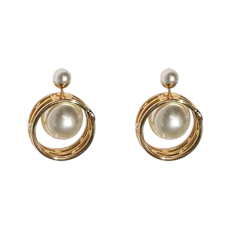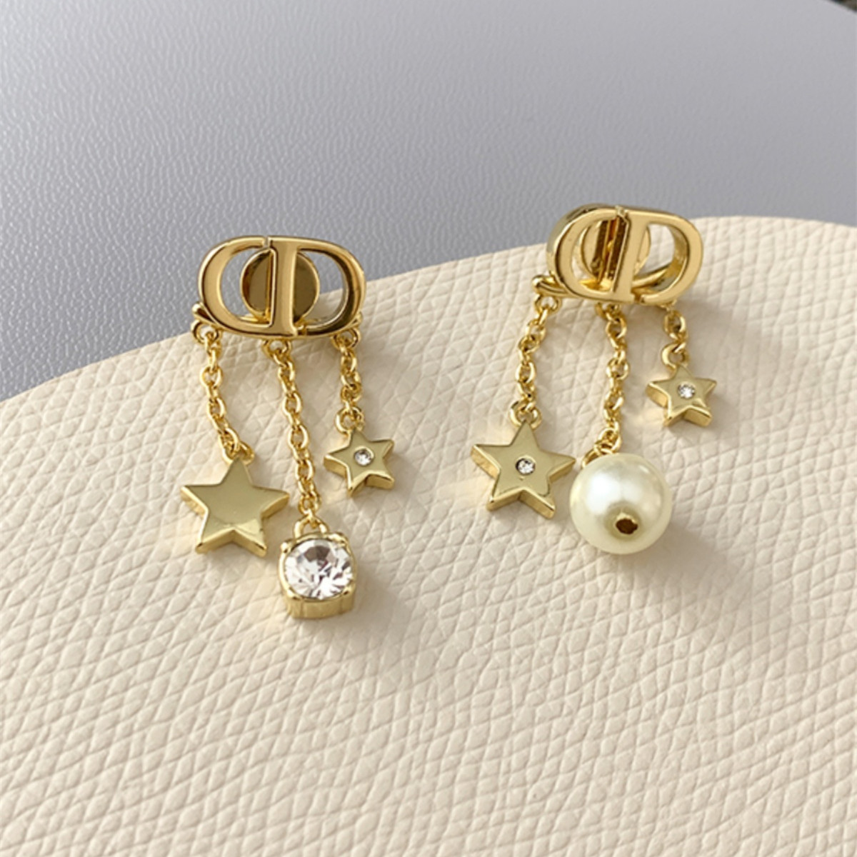 Round Button Letter CD Pendant Pearl Stud Earrings