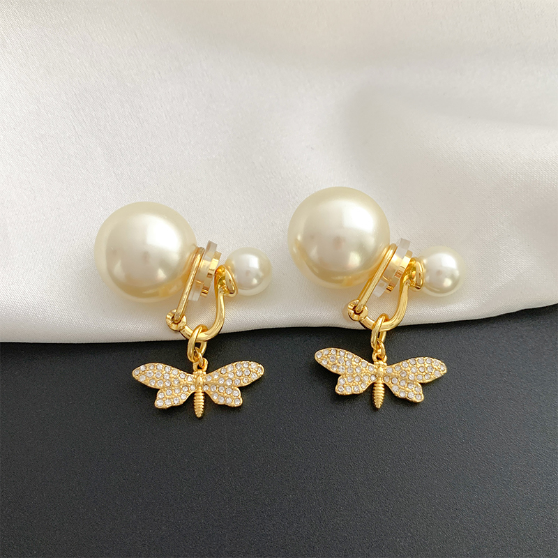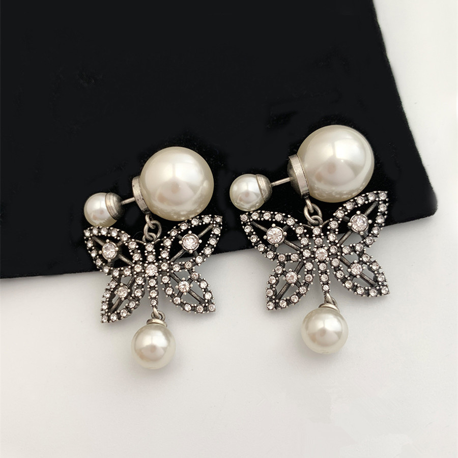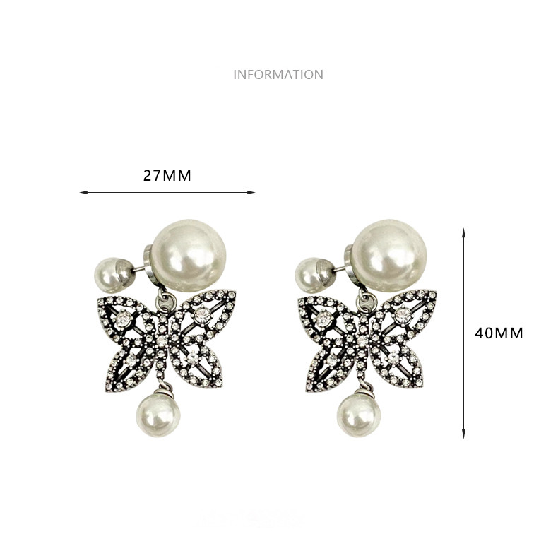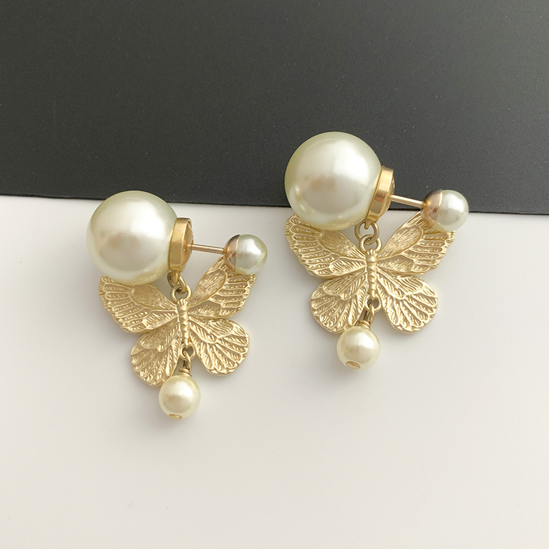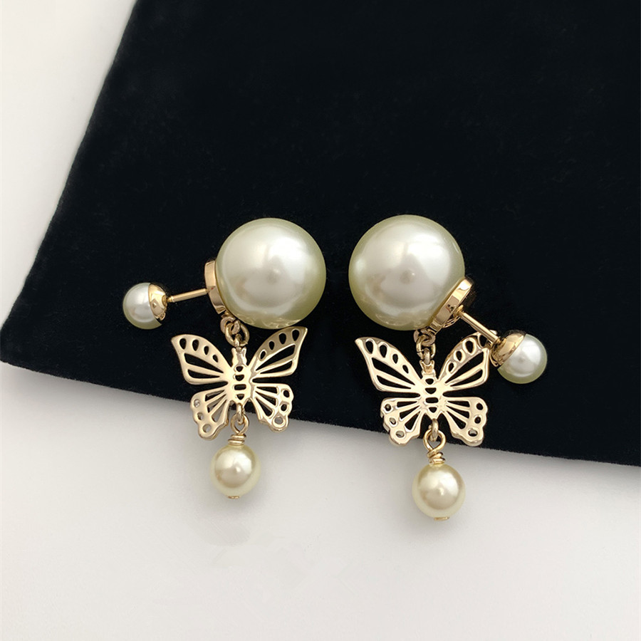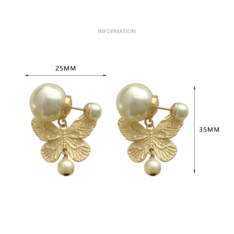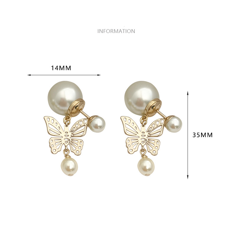 Hollow Butterfly Tassel Pearl Stud Earrings