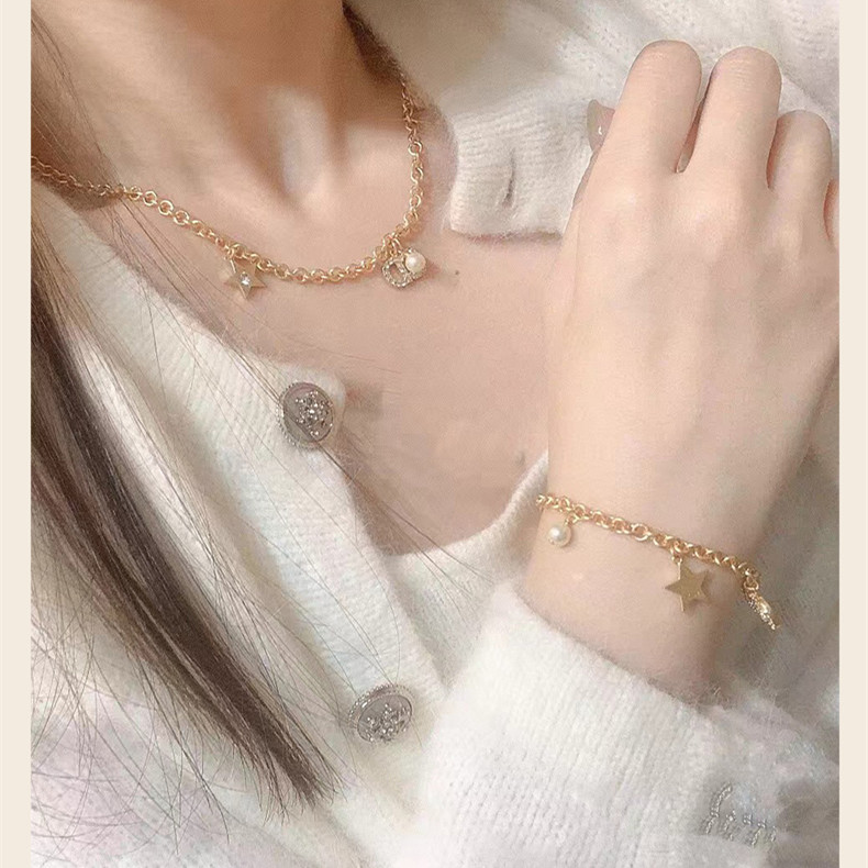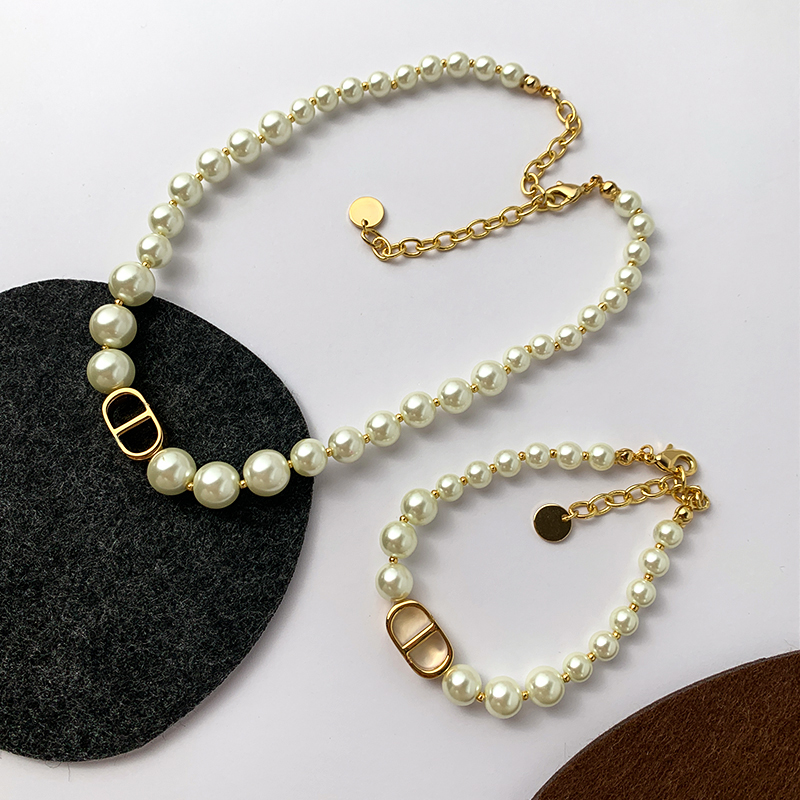 CD Pearl Bag Necklace Bracelet Brooch Earrings