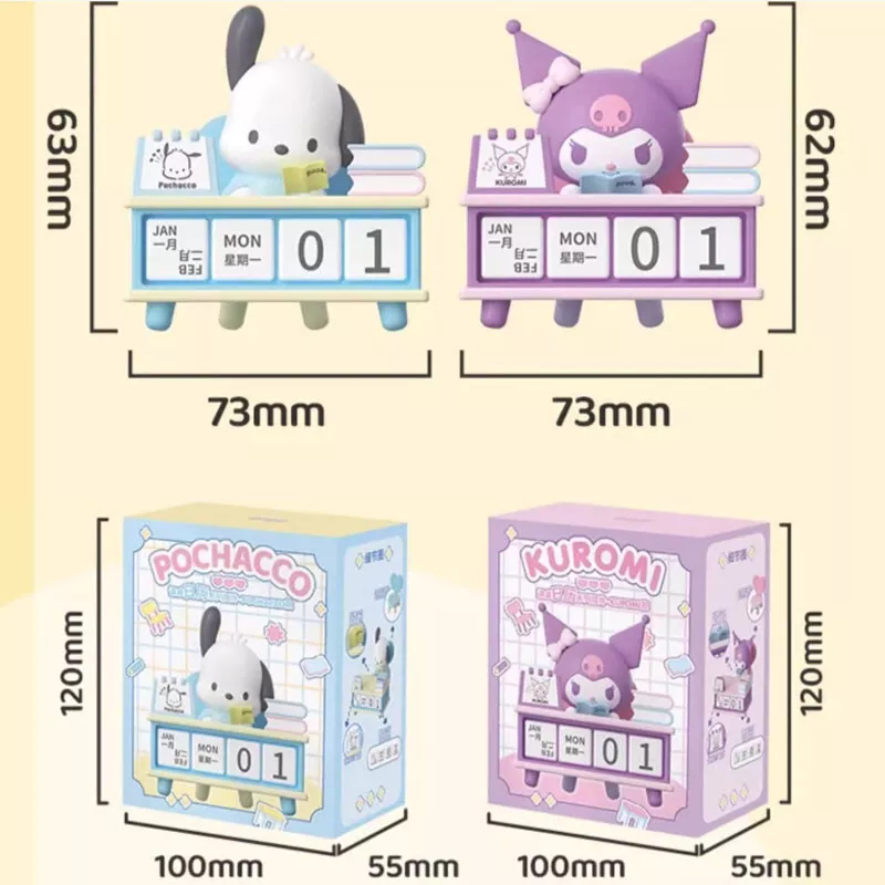 Bring charm to your desk with these adorable Sanrio tabletop ornaments featuring Kuromi and Pochacco. The cute figures double as a desk calendar, adding both function and whimsy to any workspace. Perfect for Sanrio fans and those who appreciate collectible, character-themed decor.Product Description