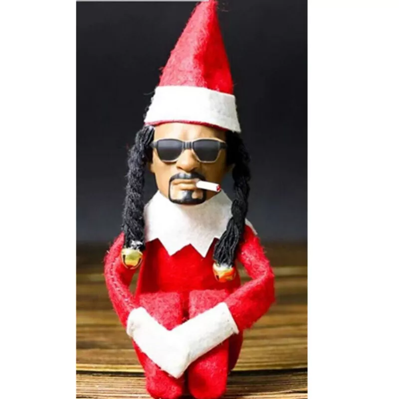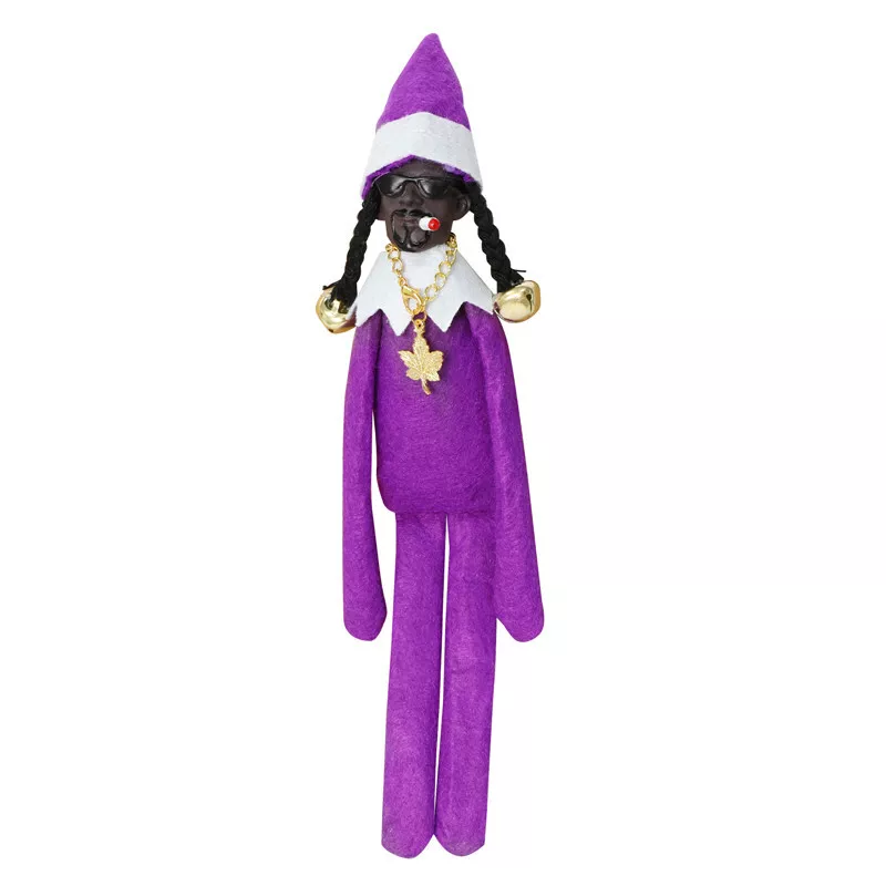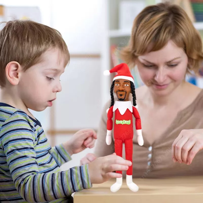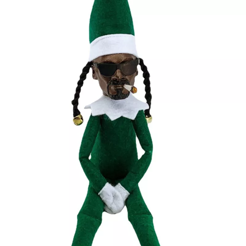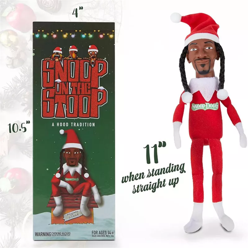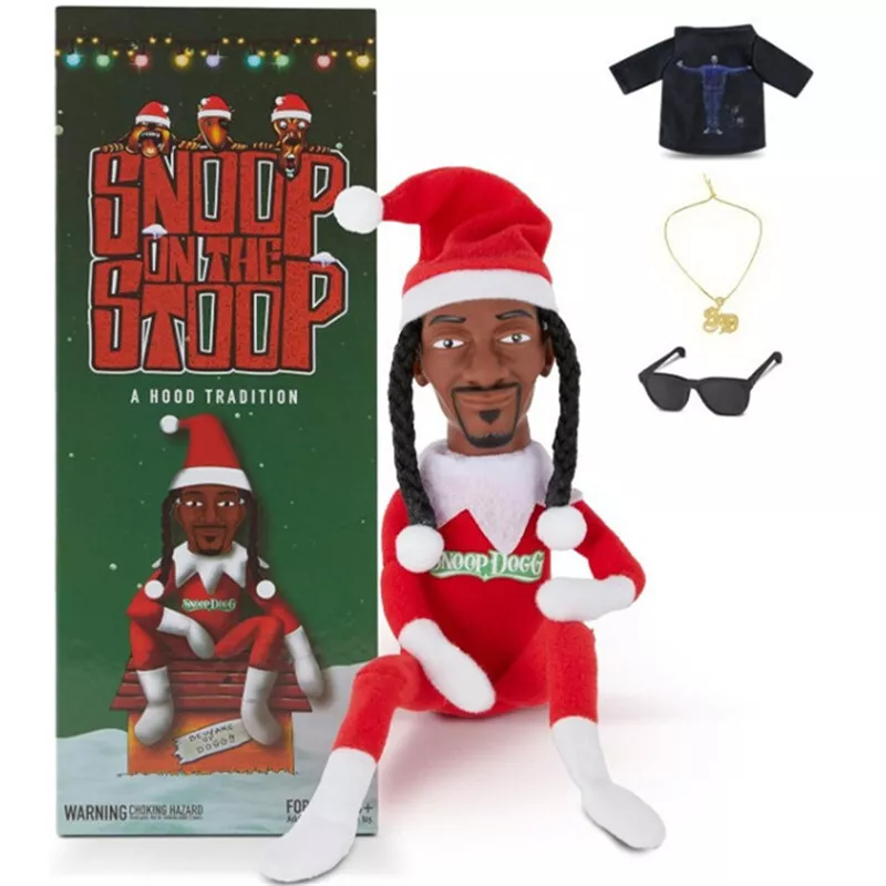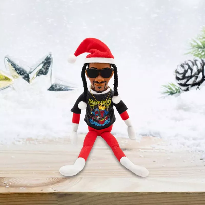 rendition of the classic holiday tradition. Bring home the mini Snoop Dogg holiday plush toy, complete with an elf hat, chain,