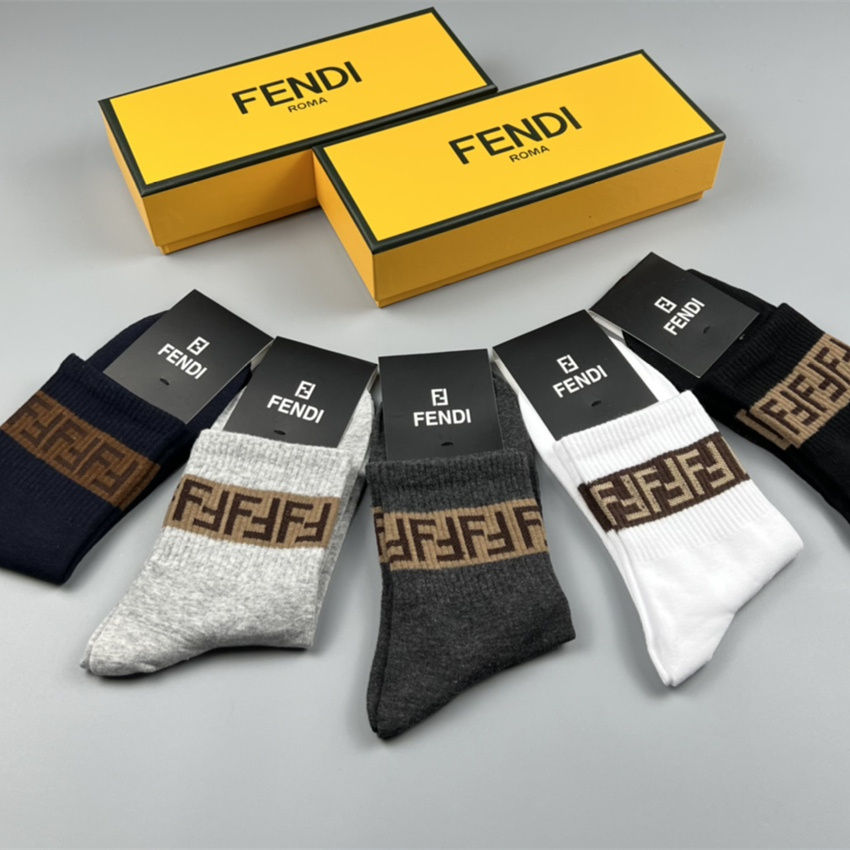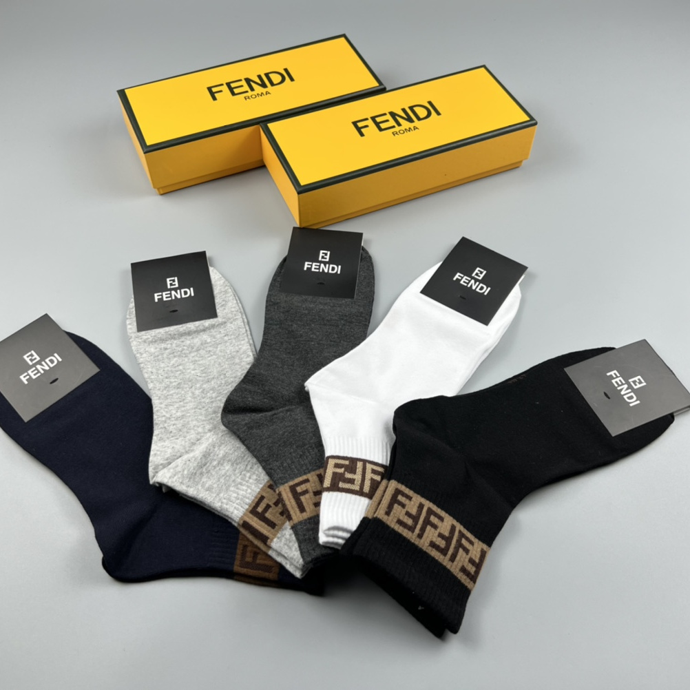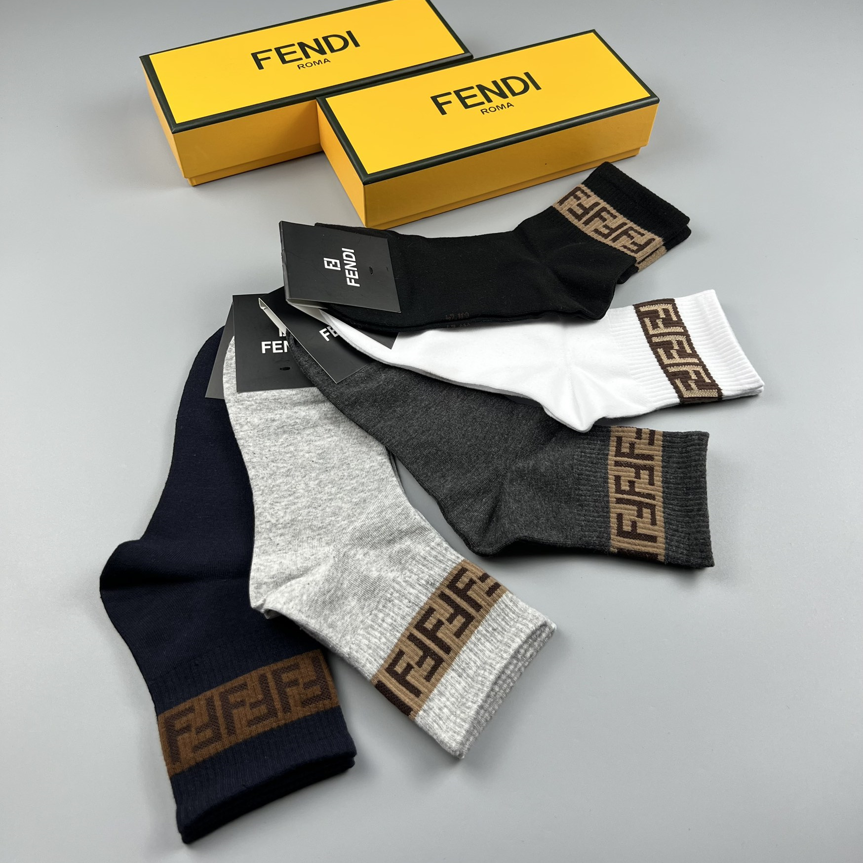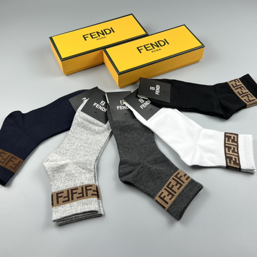 FENDI New Sweat-Absorbent Cotton Socks Comfortable (5PC)