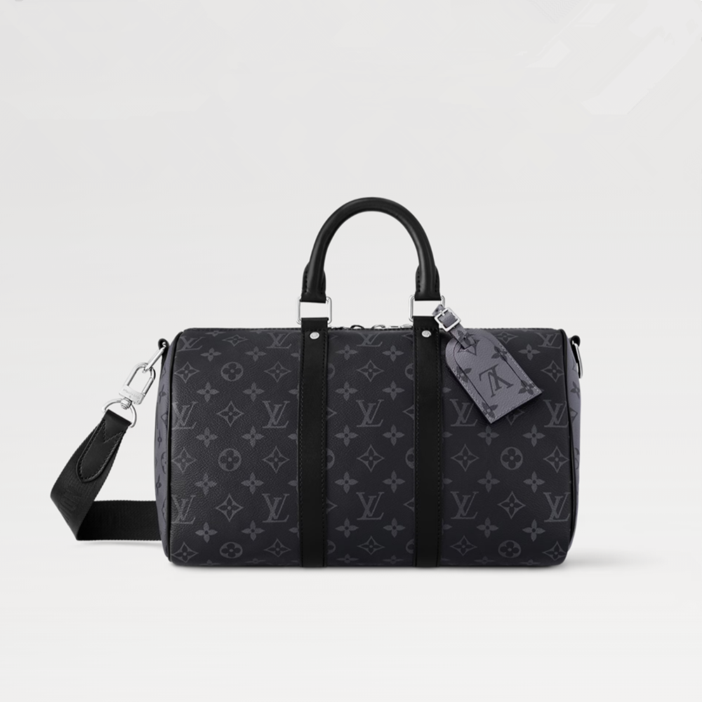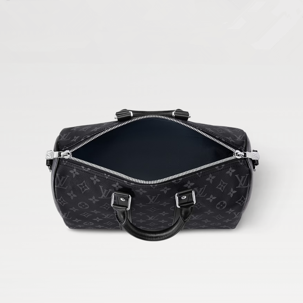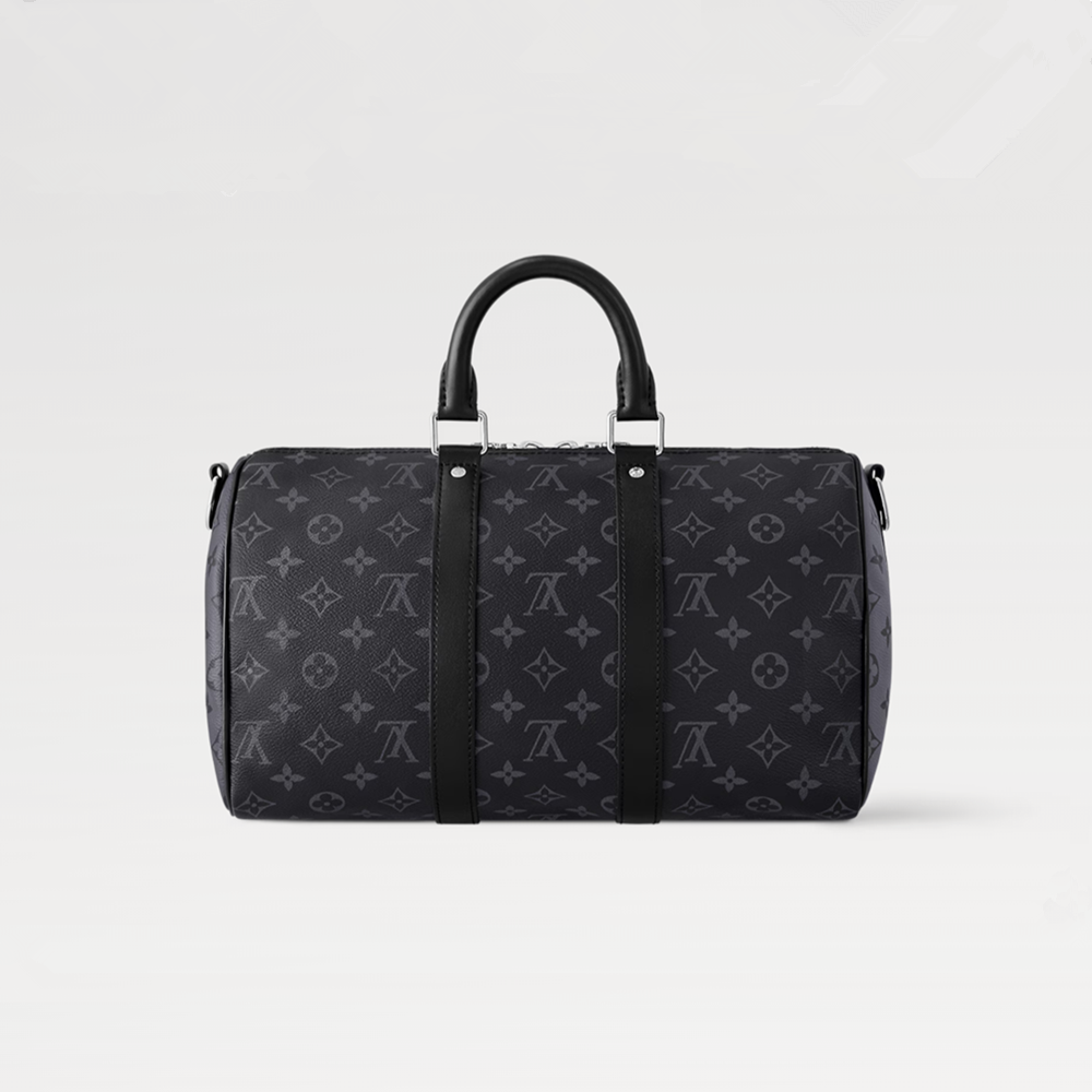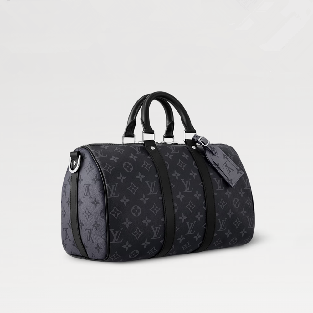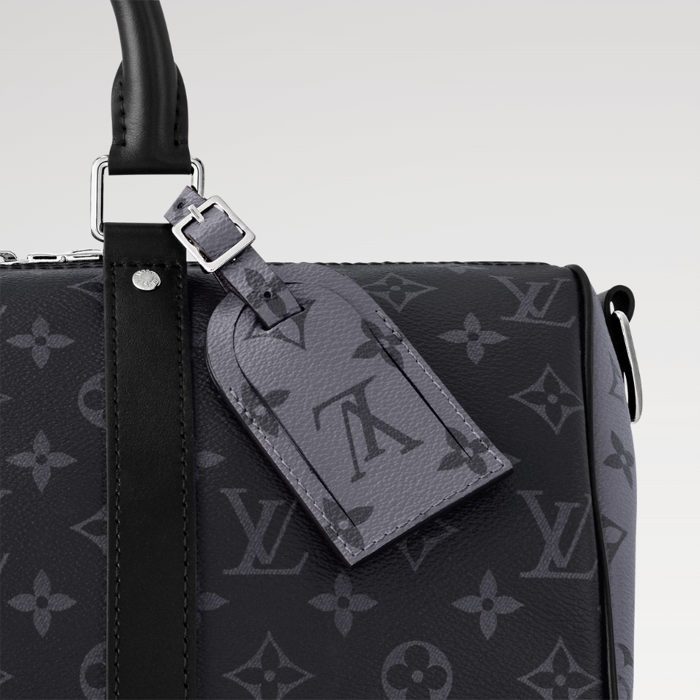 The Keepall Bandoulière 35 bag exudes restrained elegance in Monogram Eclipse coated canvas. The leather top handle, side straps and hardware highlight its classic heritage, while the removable and adjustable shoulder strap allows for comfortable shoulder carry.