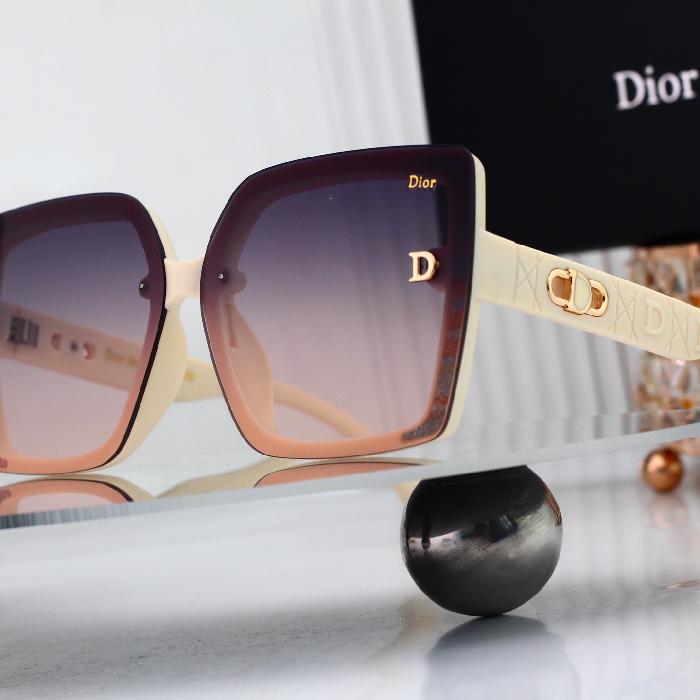 【Elegant Full-Frame Design】 These Dior-inspired sunglasses feature a structured full-frame design that delivers both stability and timeless style. The bold frame adds a touch of sophistication to your outfits, making them perfect for daily wear or special occasions.