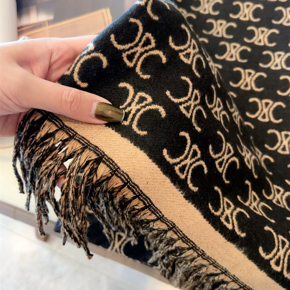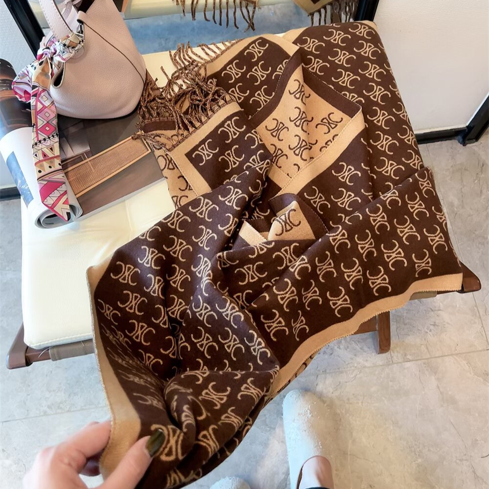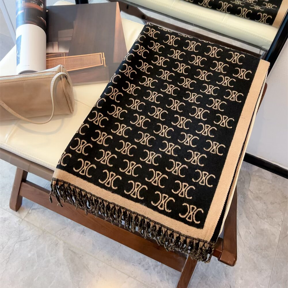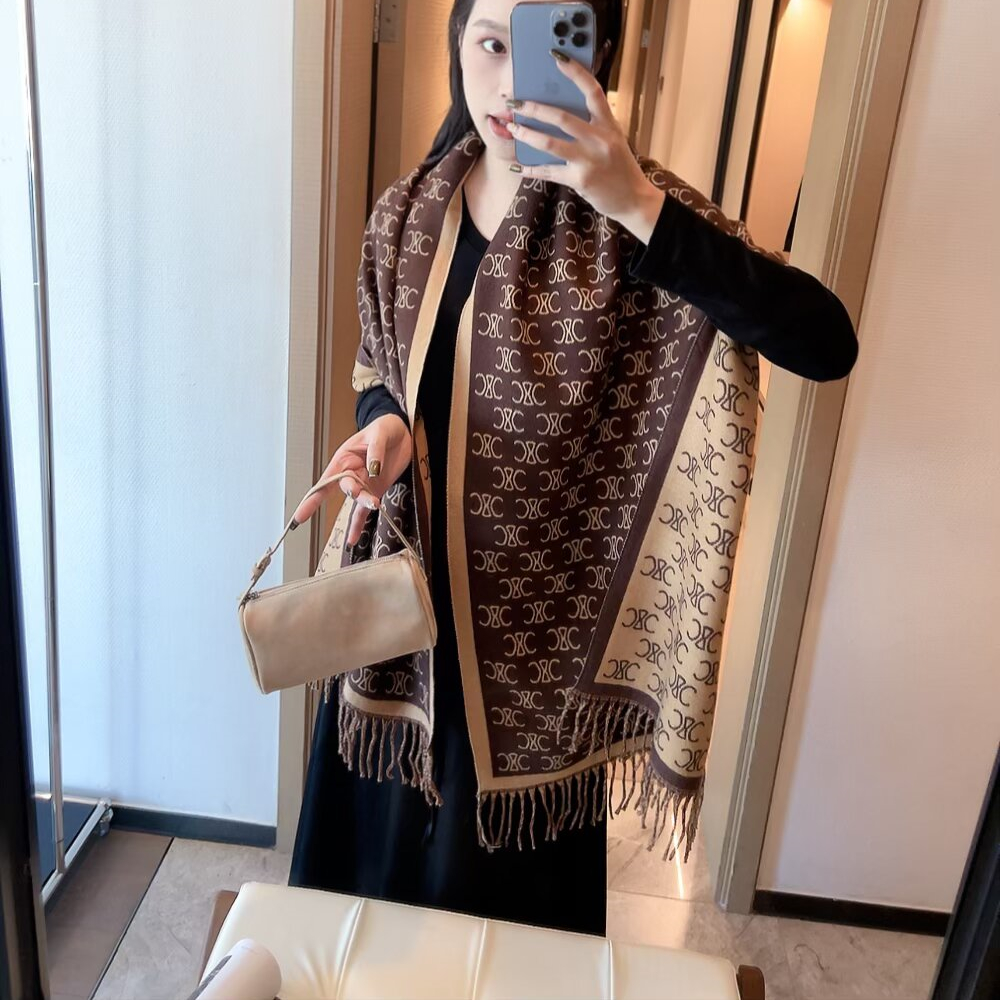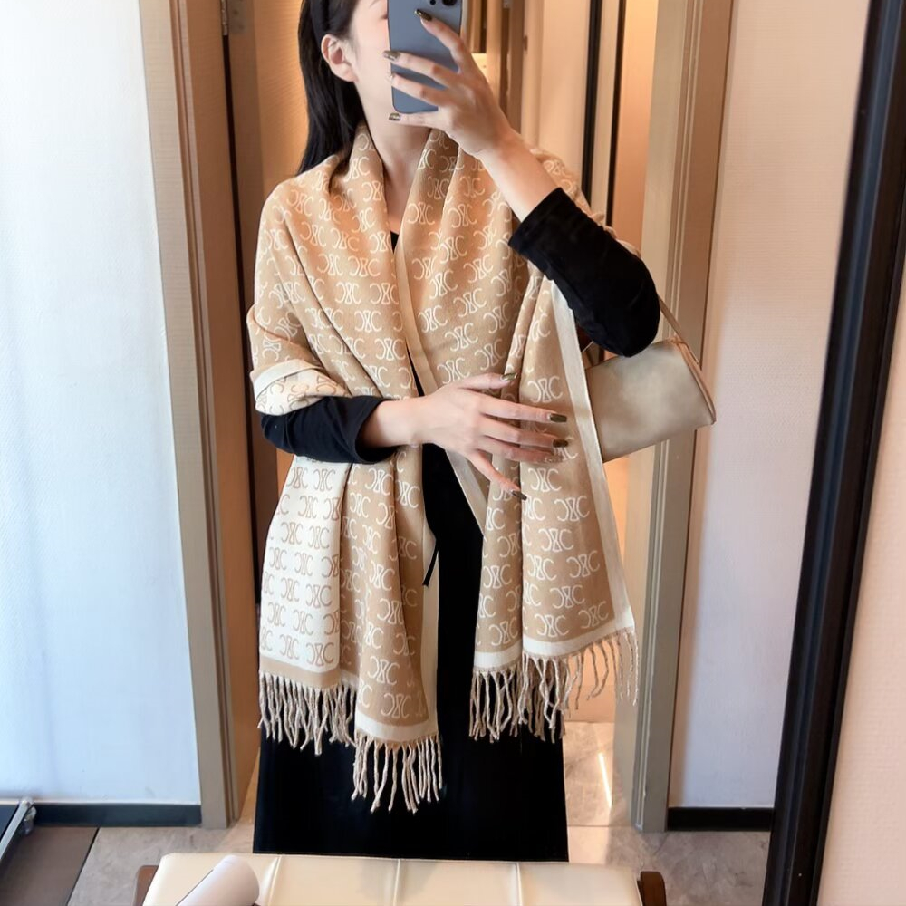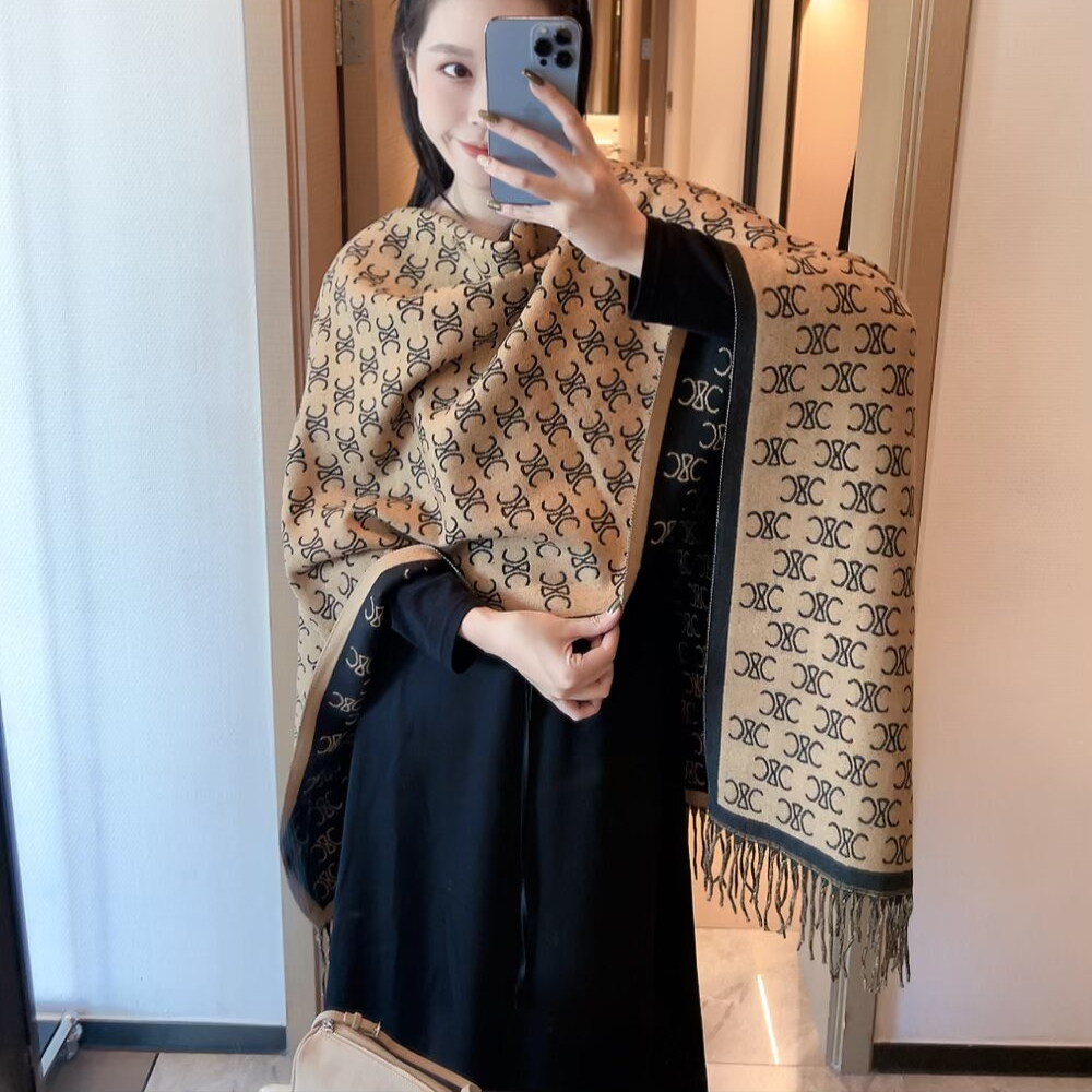 【Design & Style】This Celine reversible scarf features the iconic Arc de Triomphe motif paired with classic CELINE lettering. The elegant double-sided jacquard design offers versatile styling while the contrasting tones—especially the chic black-and-white combination—bring timeless sophistication. Made with imported wool and cashmere yarns, it provides a soft, fluffy texture that feels lightweight yet warm.【Occasion & Matching】Perfect for winter styling, this oversized scarf can be wrapped multiple times or draped as a statement accessory. Its minimalist luxury design makes it easy to pair with coats, knitwear, and dresses. Available in 5 elegant colors, it’s an essential winter piece that enhances both casual and formal looks with effortless Parisian chic.