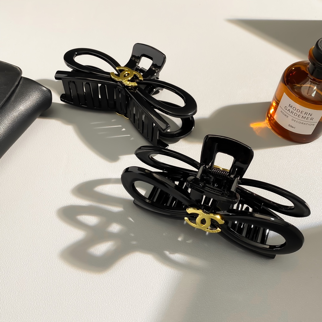 【Chic 3D Bow Design】This Chanel claw clip features a dimensional bow design that adds elegance and depth, transforming a simple hairstyle into a refined statement.
