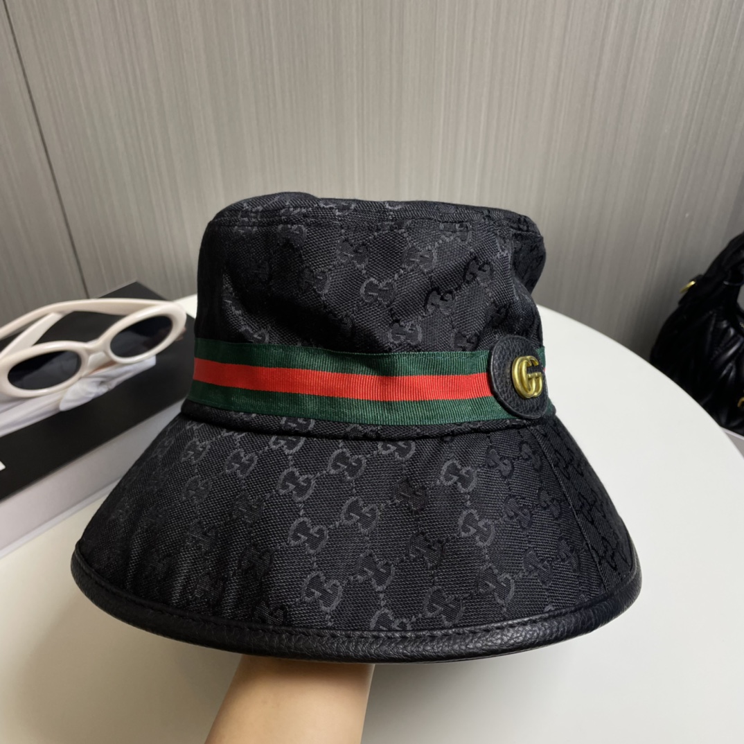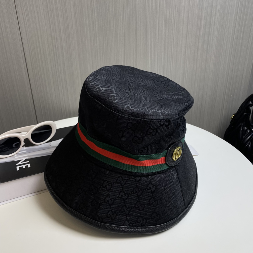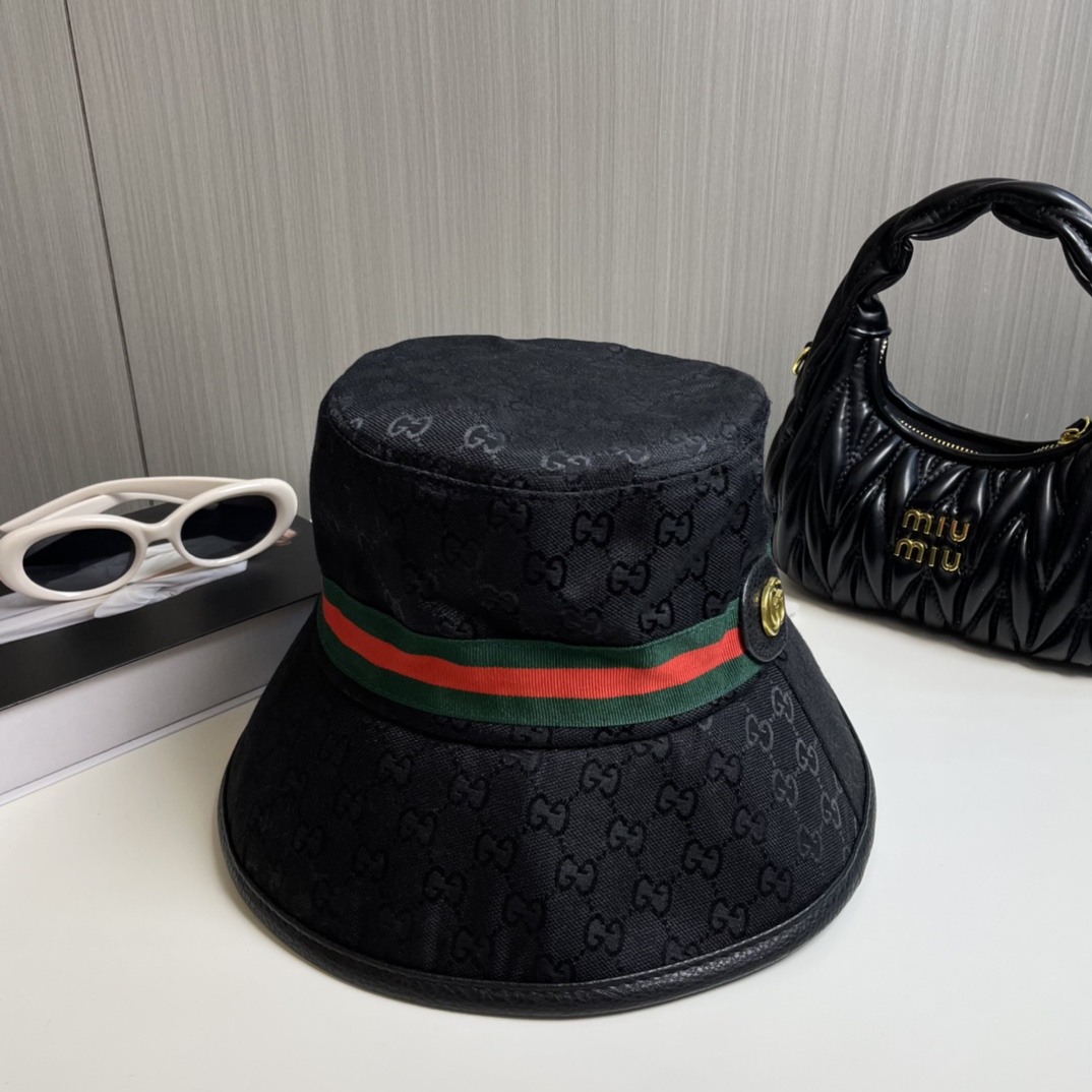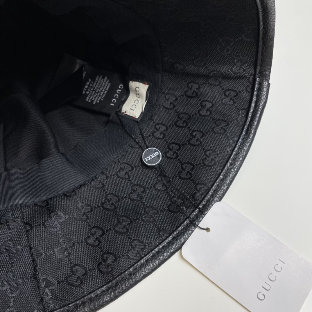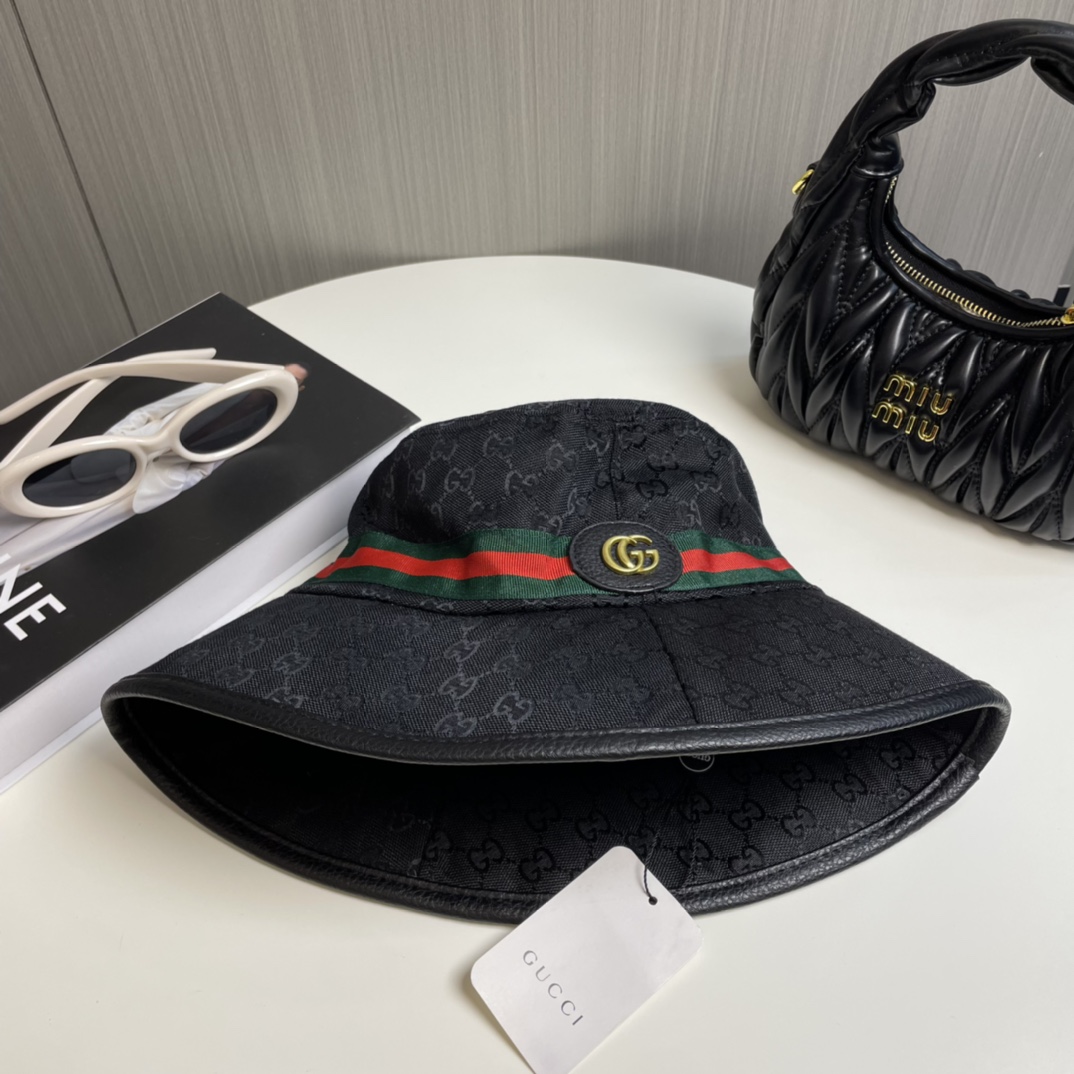 【Elegant Gucci Aesthetic】This bucket hat features the iconic Gucci monogram canvas paired with a refined metal logo detail—exuding luxury and timeless fashion.