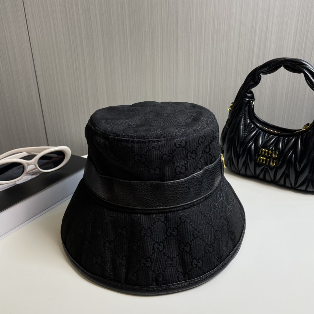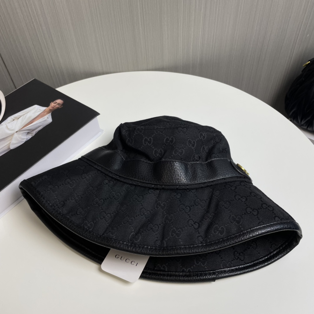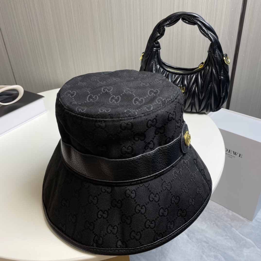 【Elegant Gucci Aesthetic】This bucket hat features the iconic Gucci monogram canvas paired with a refined metal logo detail—exuding luxury and timeless fashion.