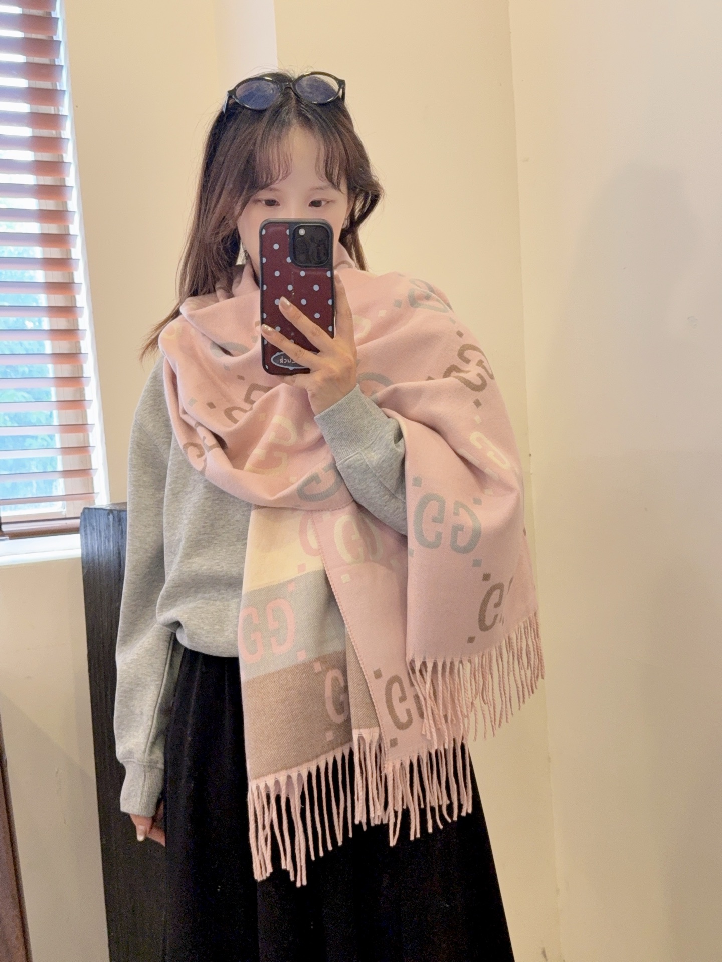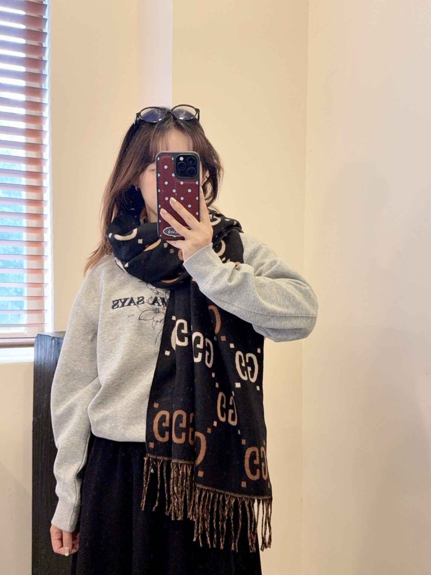 【Timeless Gucci Styling】Featuring the iconic double-logo design, this GUCCI scarf blends classic luxury with modern simplicity, making it a staple for cold-season fashion.