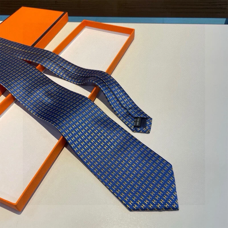 • 【New】Hermès Men's Blue H Letter Silk Necktie