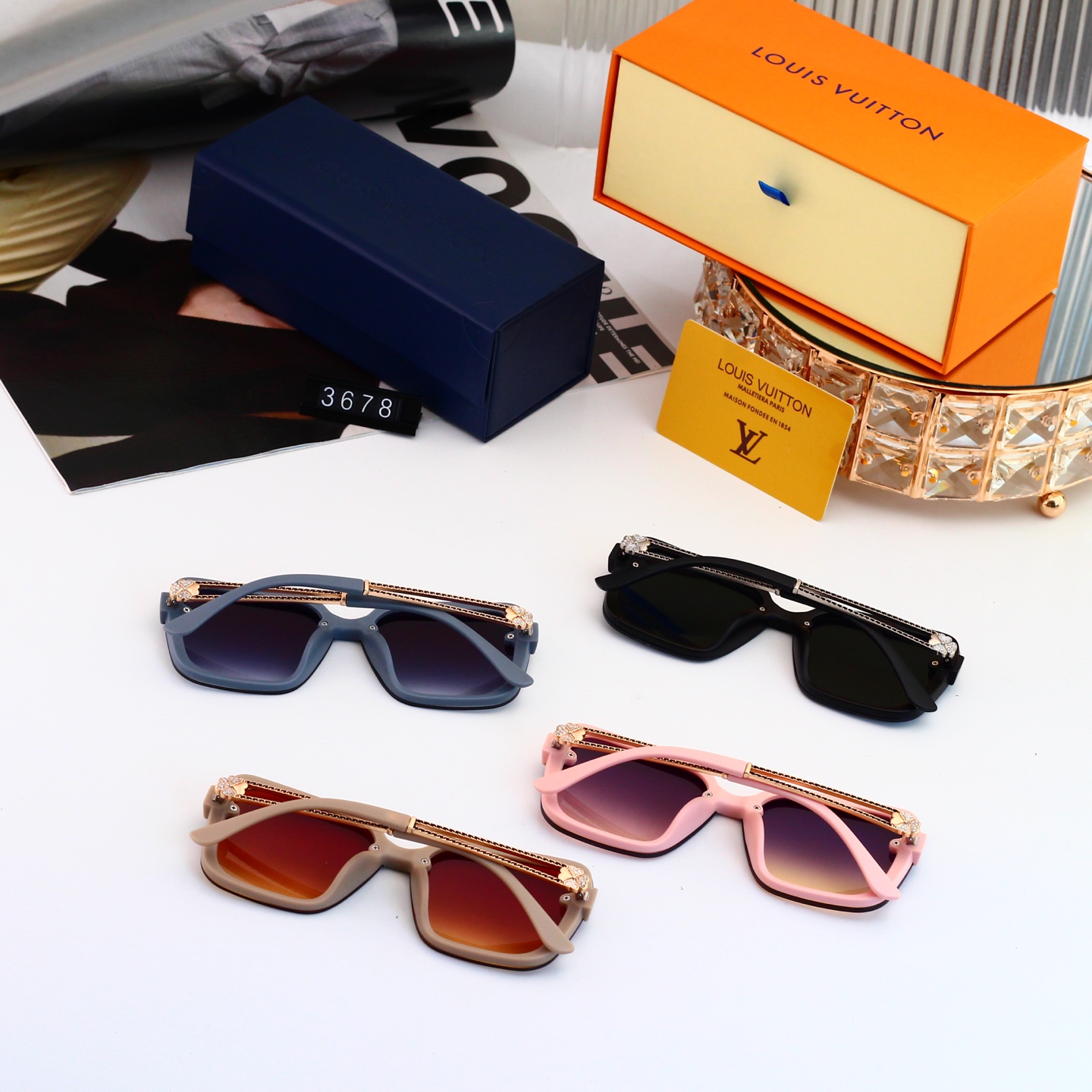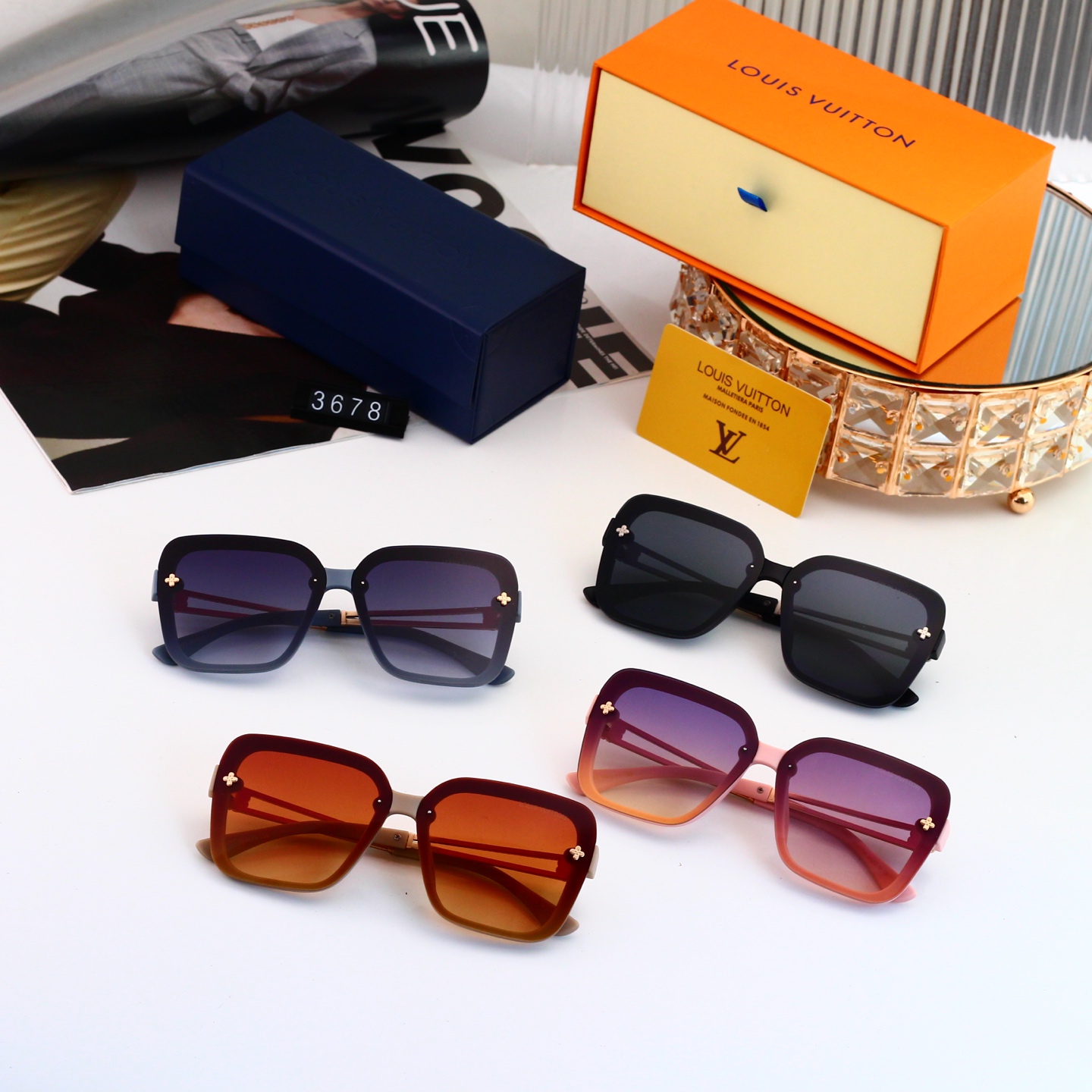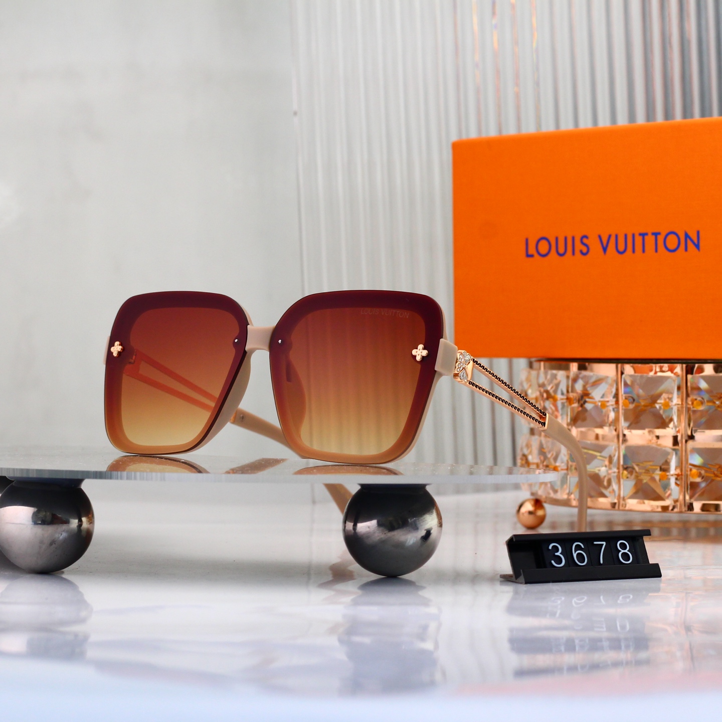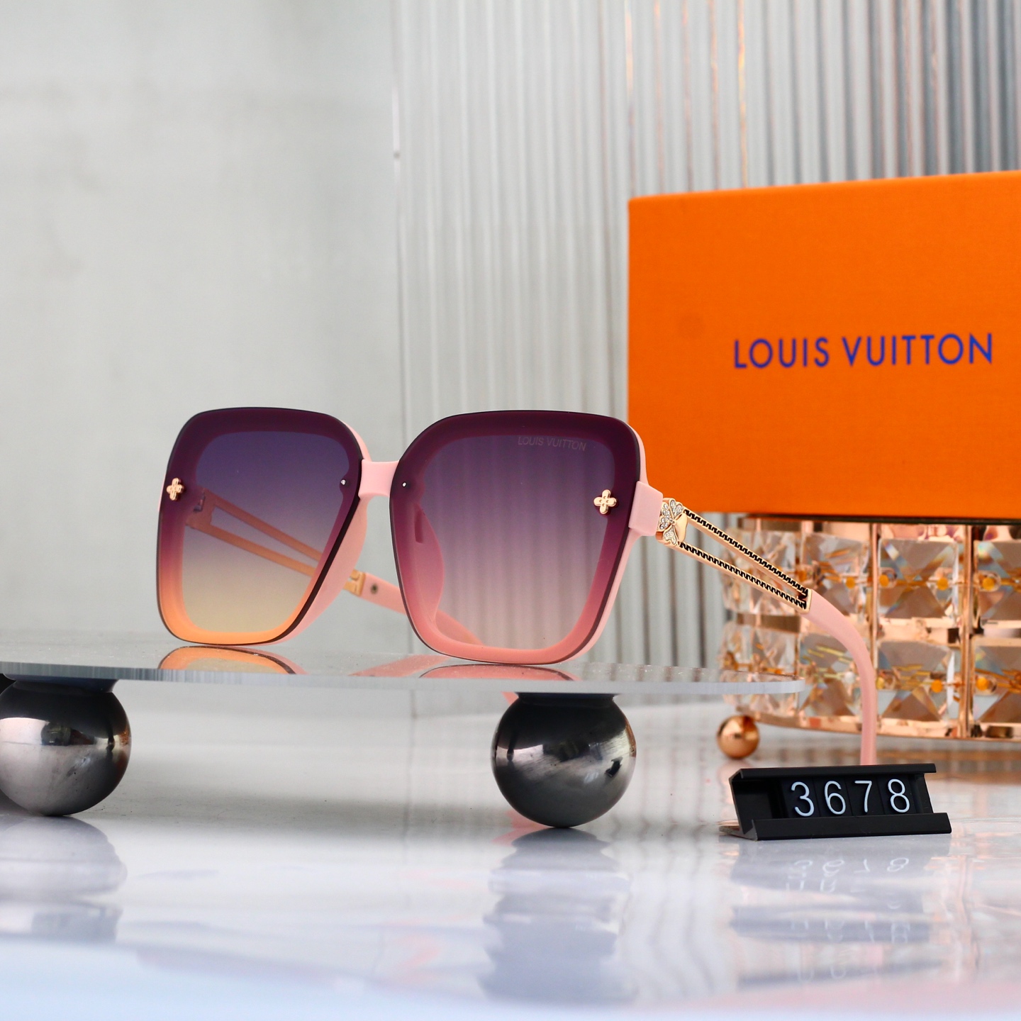 【Stylish Luxury Design】Crafted with rimless frames and signature LV floral hollowed metal temples, these sunglasses blend classic elegance with modern flair, suitable for both men and women.