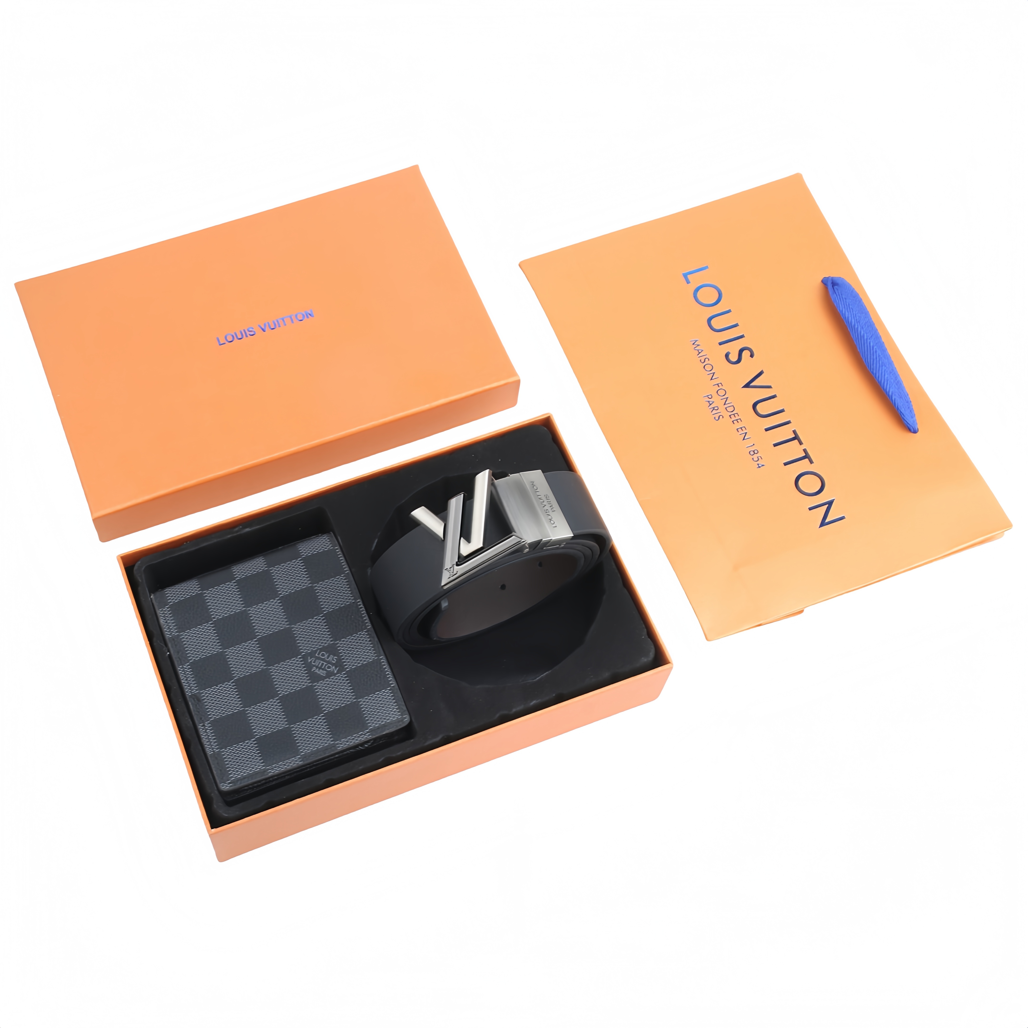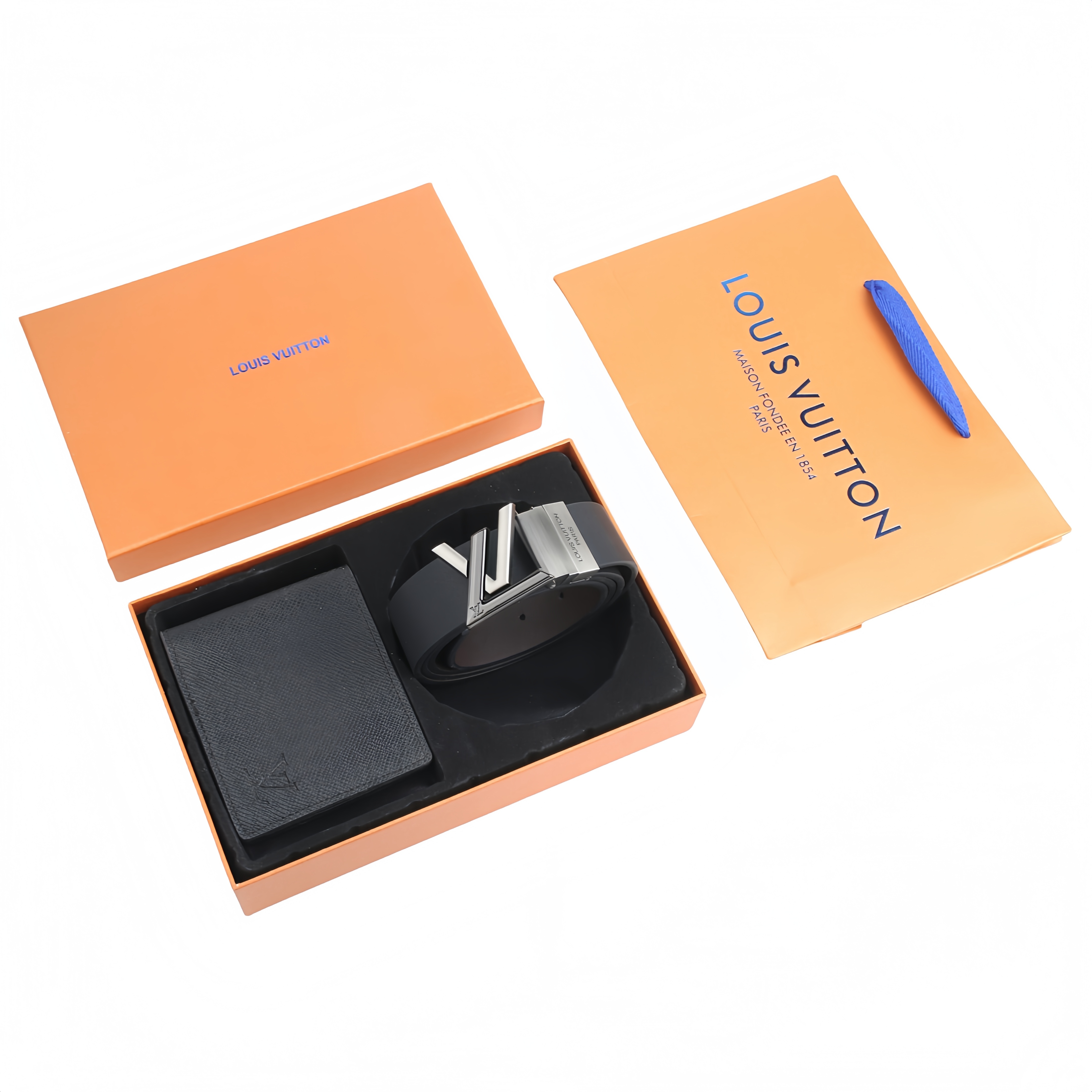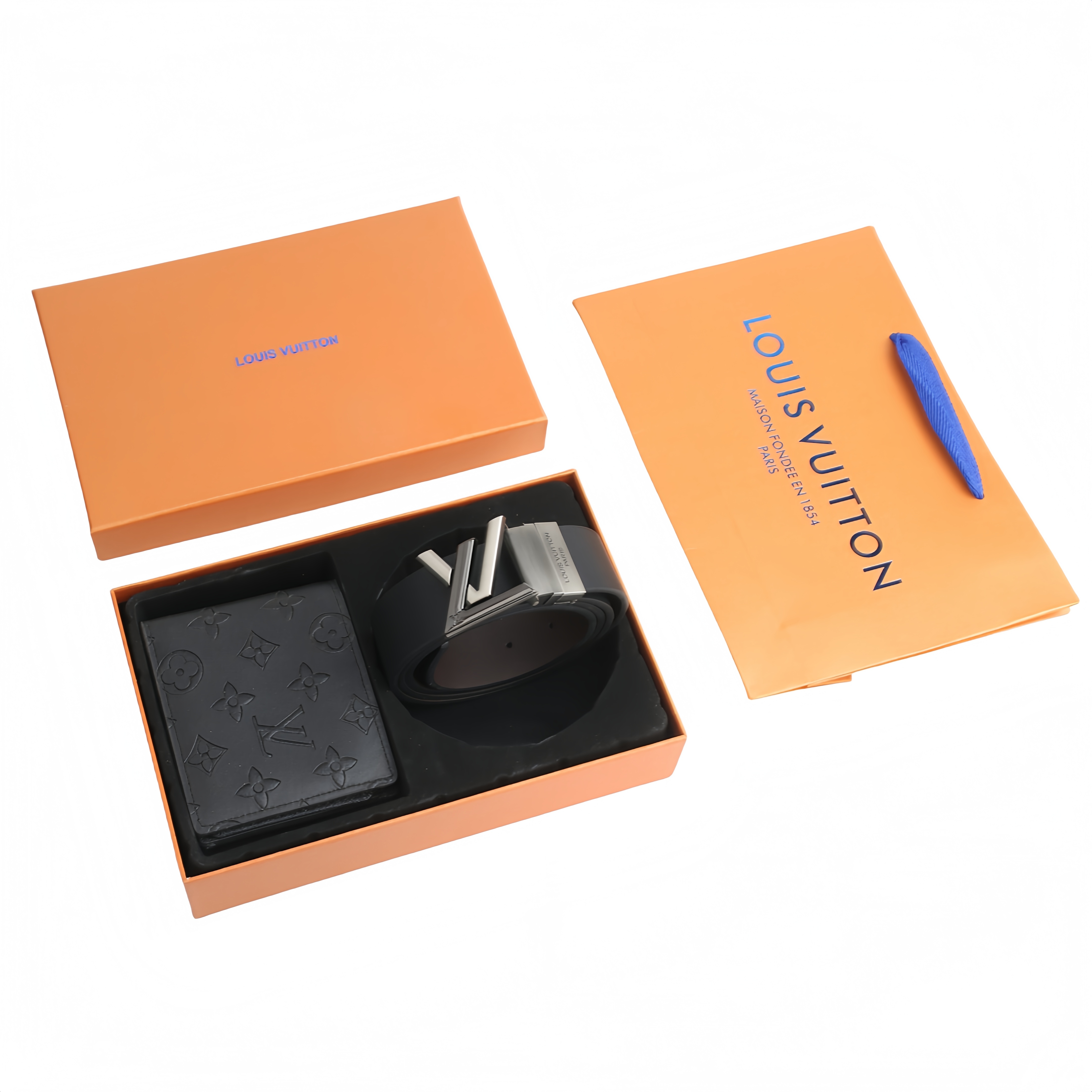 【Refined Gentleman’s Set】This LV gift set includes a reversible leather belt and a matching wallet, featuring a sleek black & grey rotating buckle for a modern, elevated style.