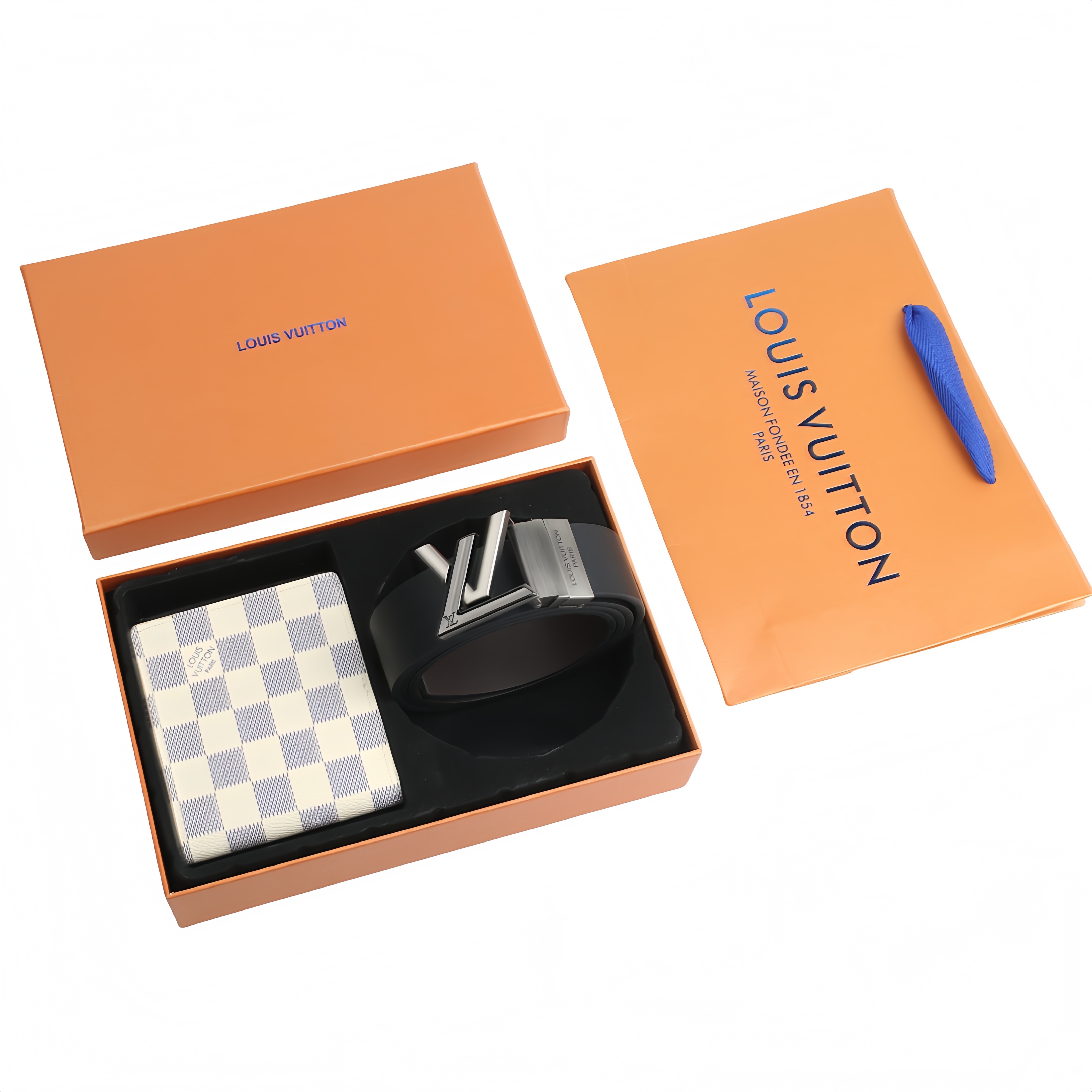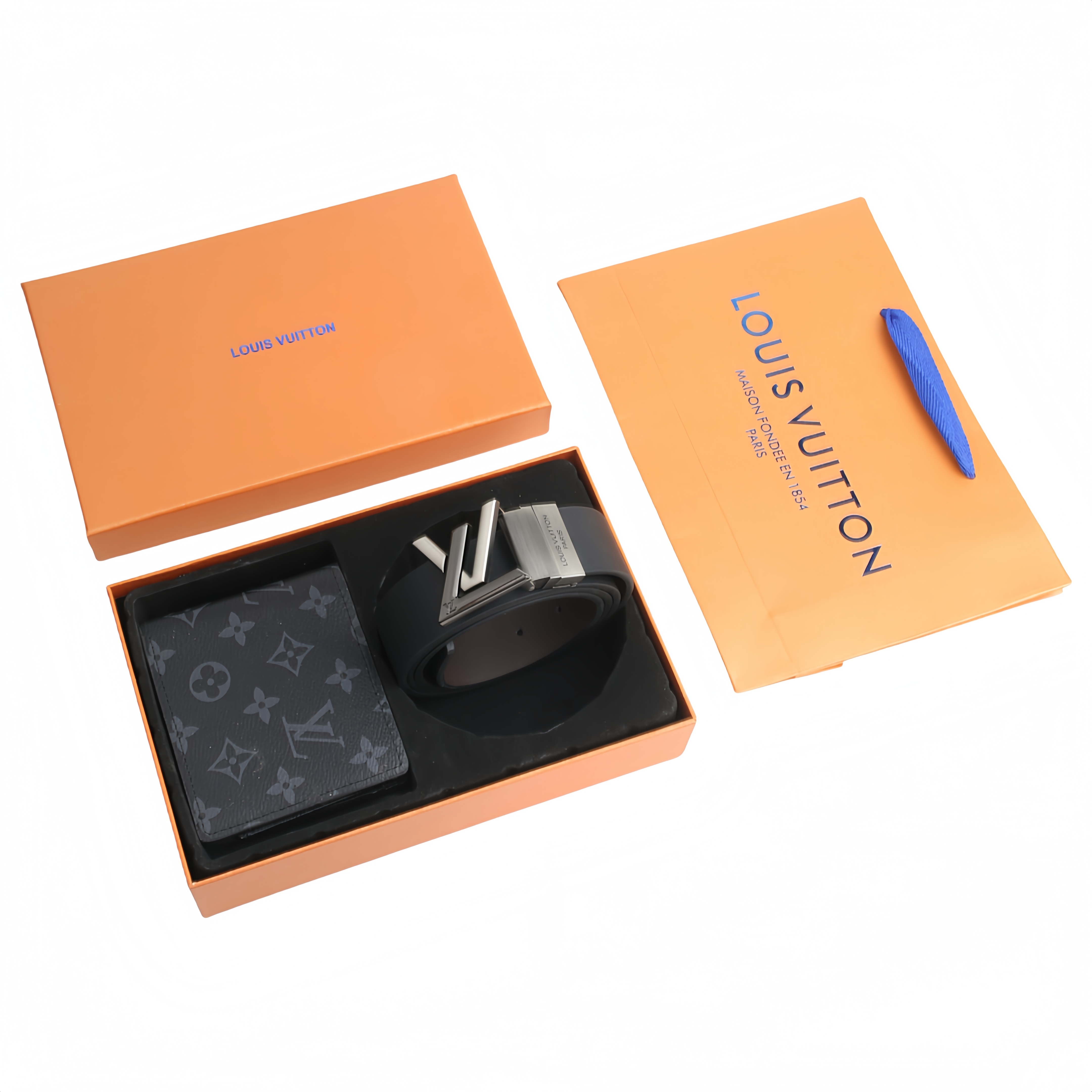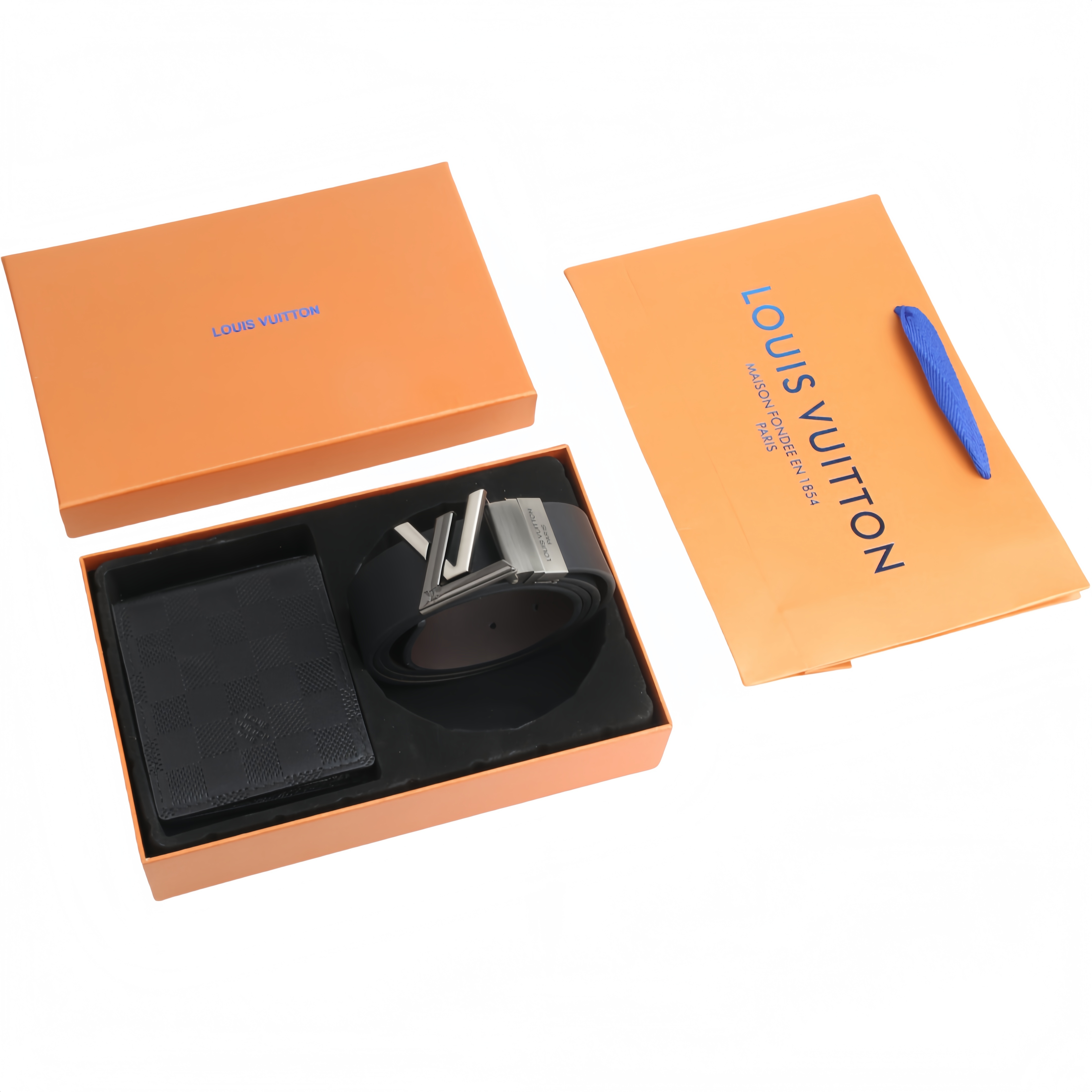 【Refined Gentleman’s Set】This LV gift set includes a reversible leather belt and a matching wallet, featuring a sleek black & grey rotating buckle for a modern, elevated style.