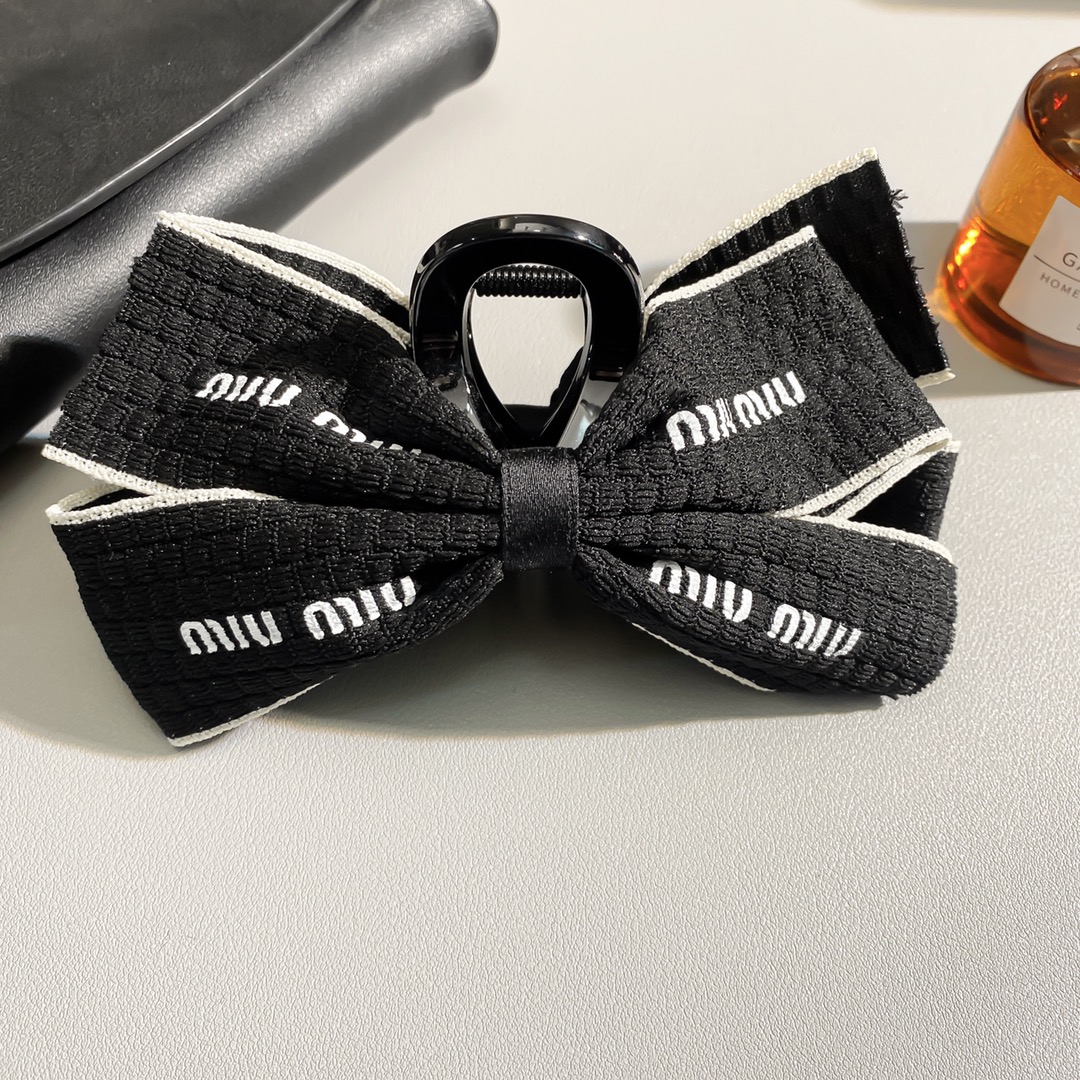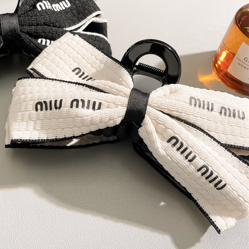 【Stylish Logo Design】This Miu Miu claw clip features a sleek webbing band with the iconic minimalist letter logo, adding a refined branding touch to everyday hairstyles.