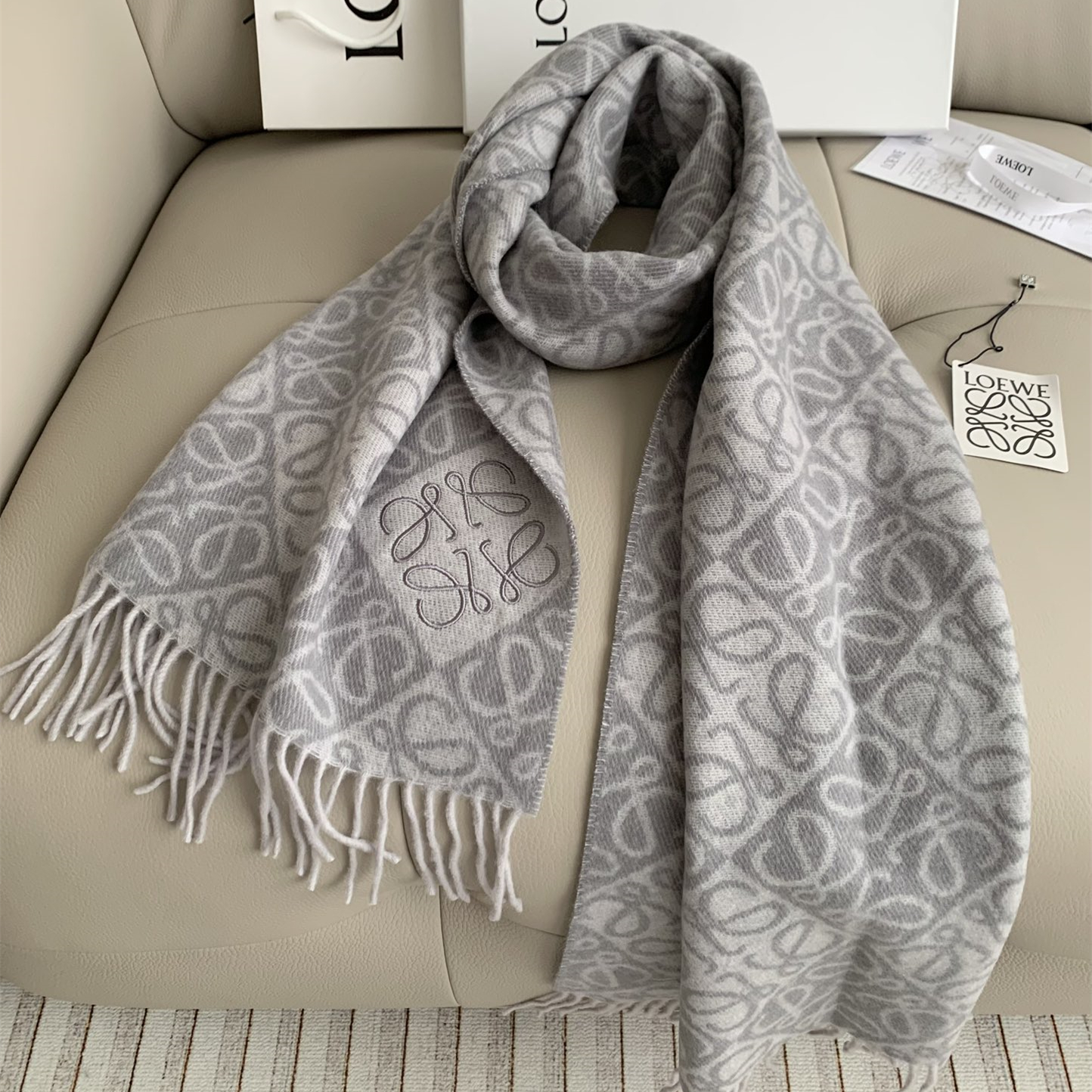 【New】LOEWE Anagram Embossed Checkered Scarf