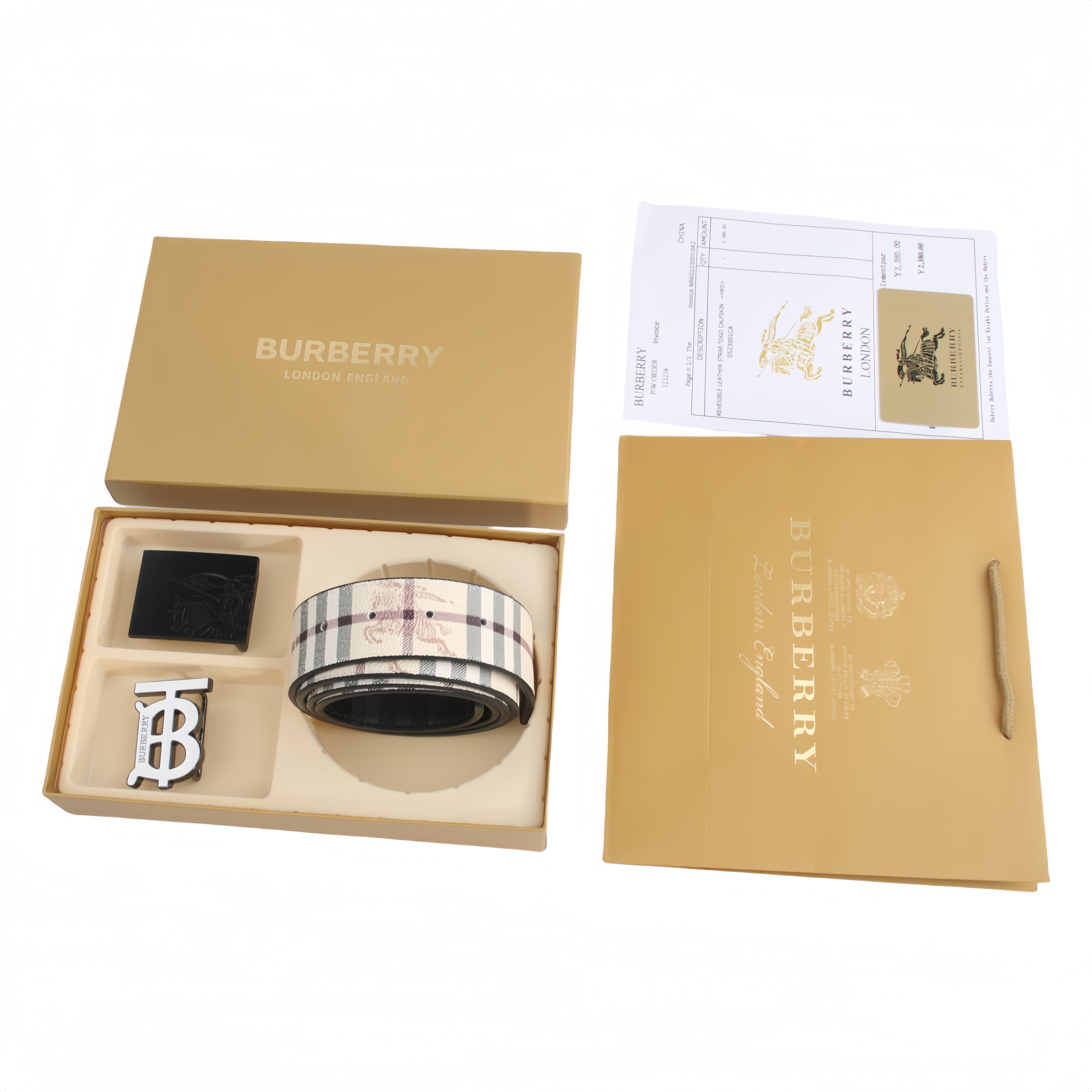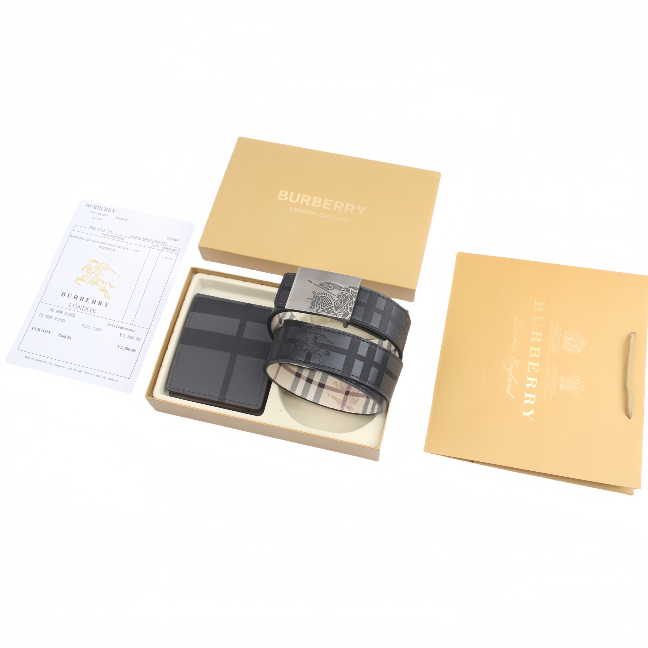 【New】Burberry Knight Stripe Belt & Wallet Gift Set