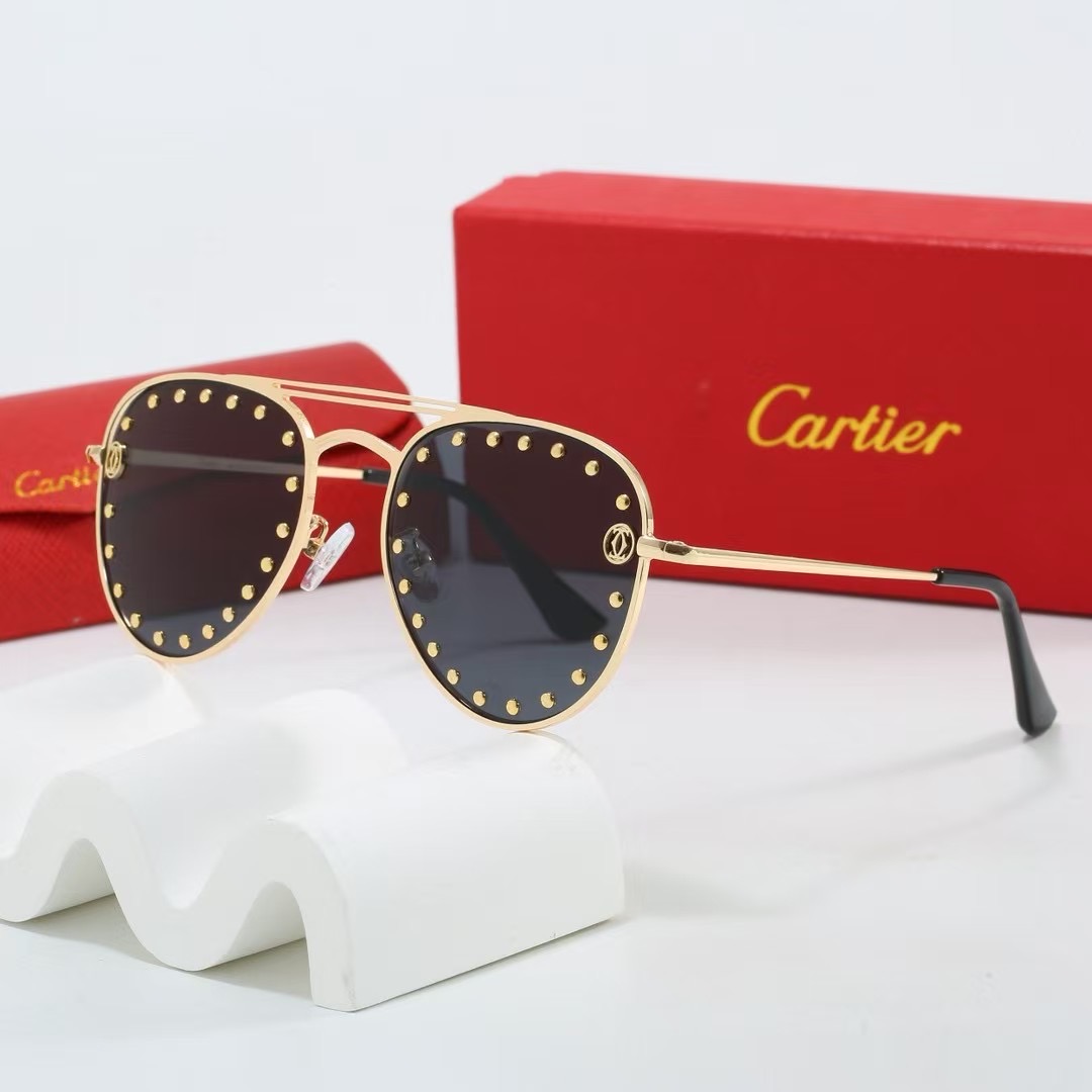 【New】Cartier Metal Studded Full-Frame Sunglasses
